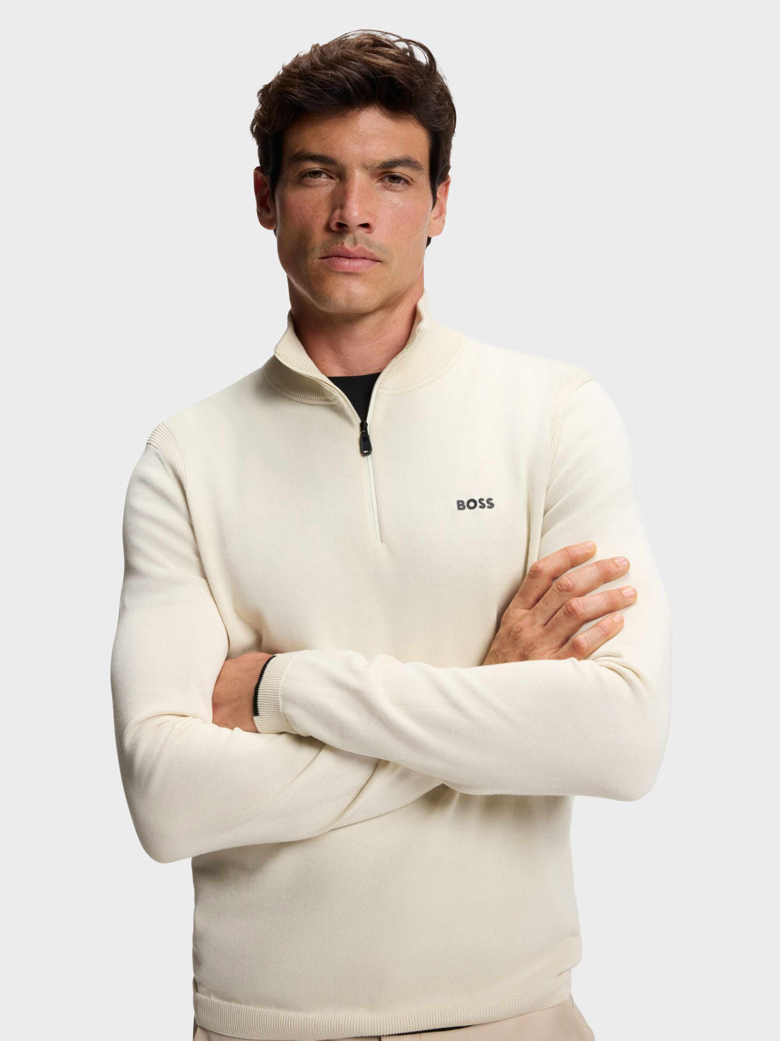 BOSS - Men's Zip-Neck Cotton Sweater With Logo Print