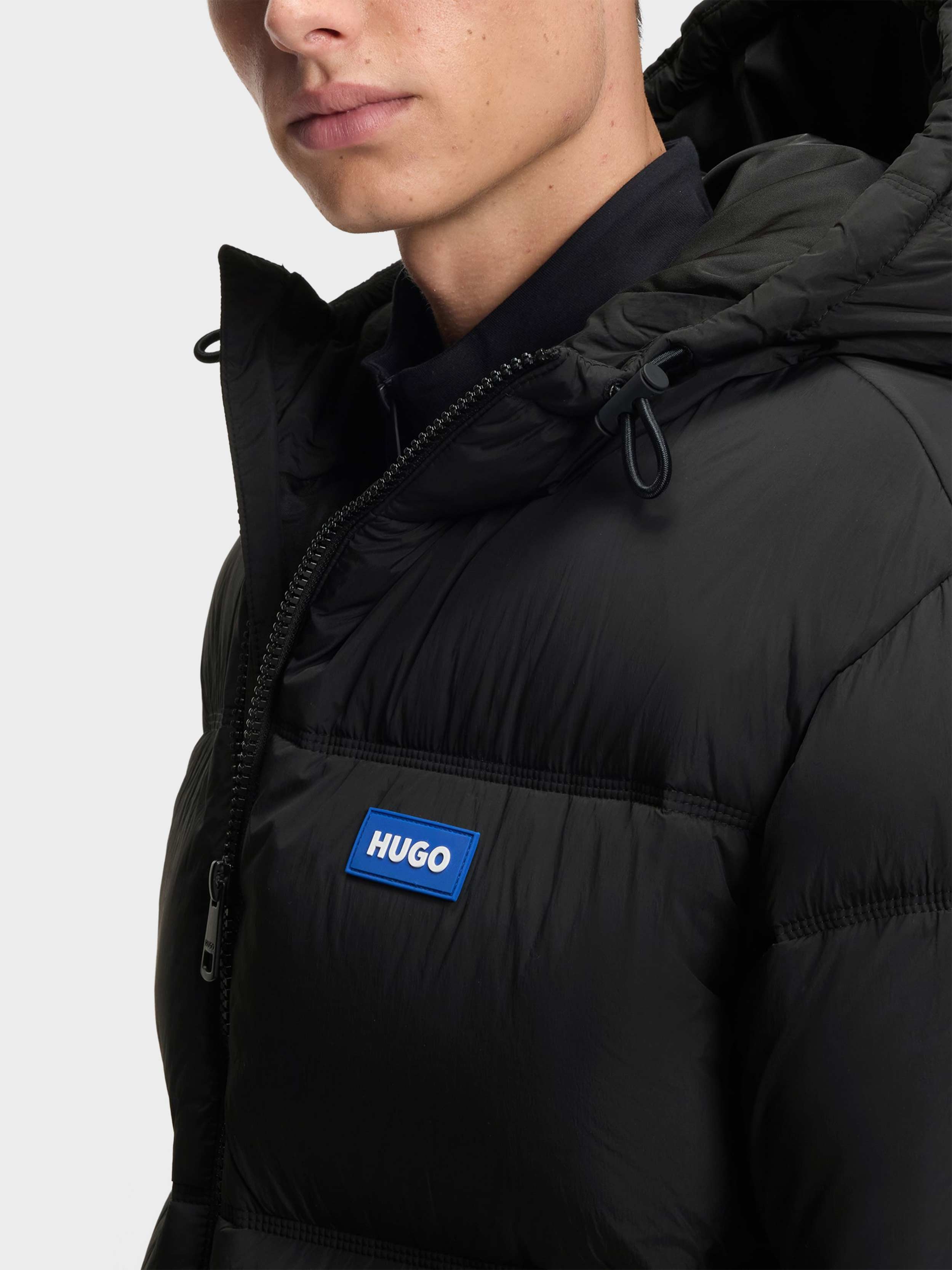 HUGO - Men's Water-Repellent Padded Jacket With Blue Logo Label