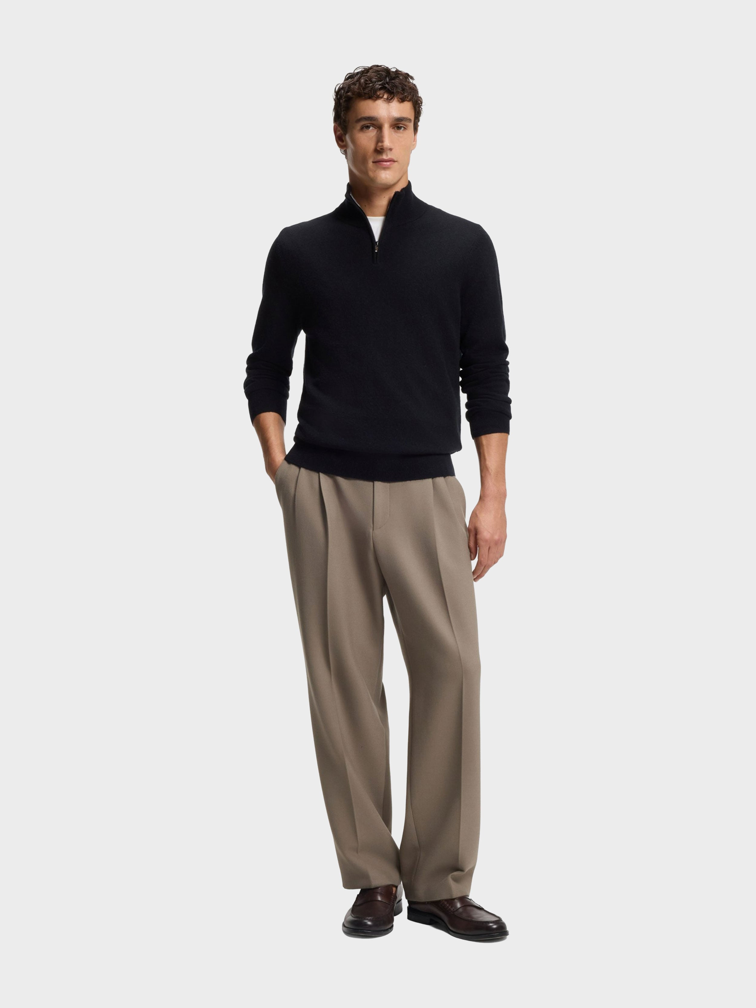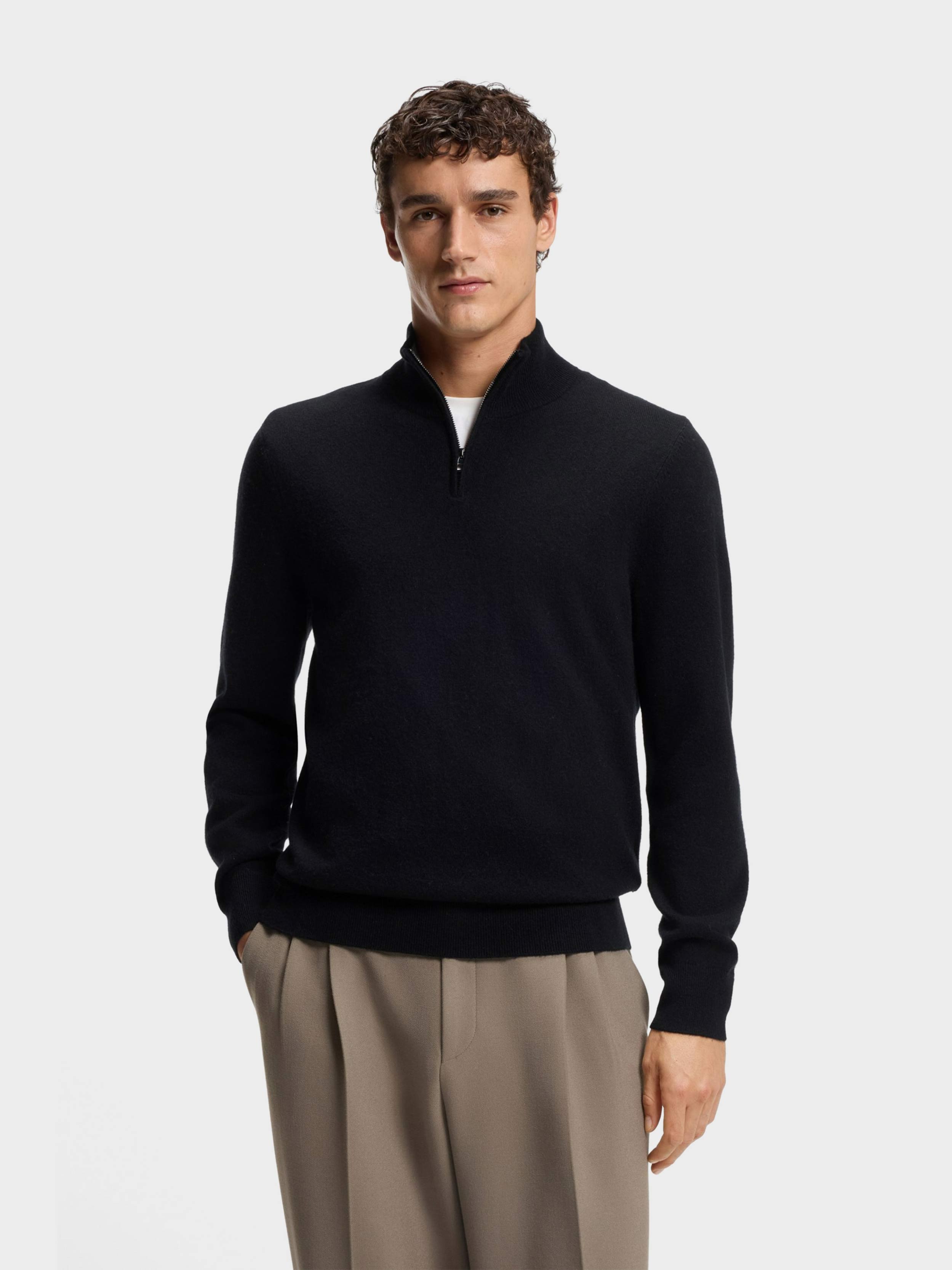BOSS - Men's Wool-Cashmere Sweater With Zip Neck