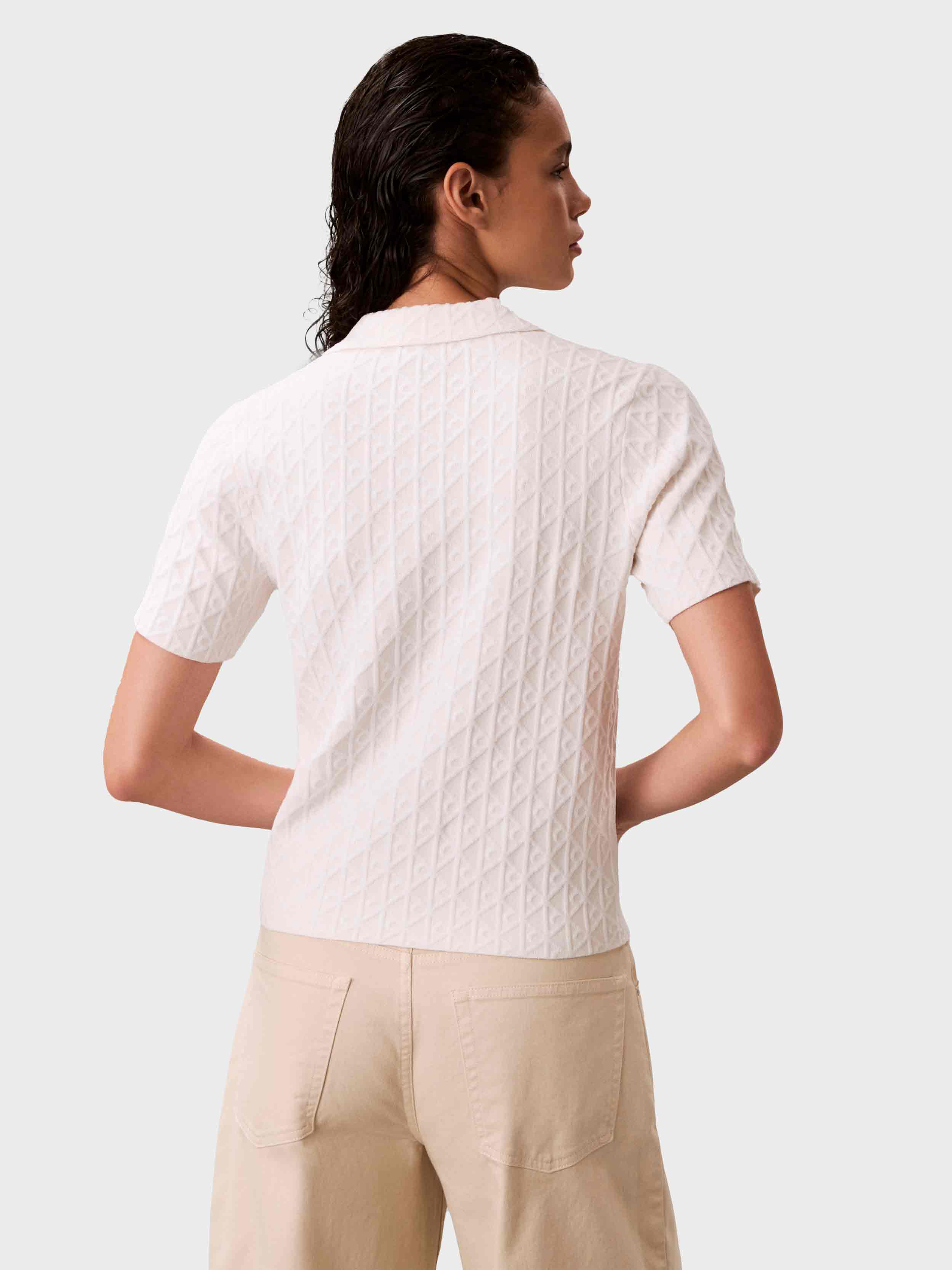 Calvin Klein - AOP Textured SS Top , M , White Greige Combo , Style LV044E325G