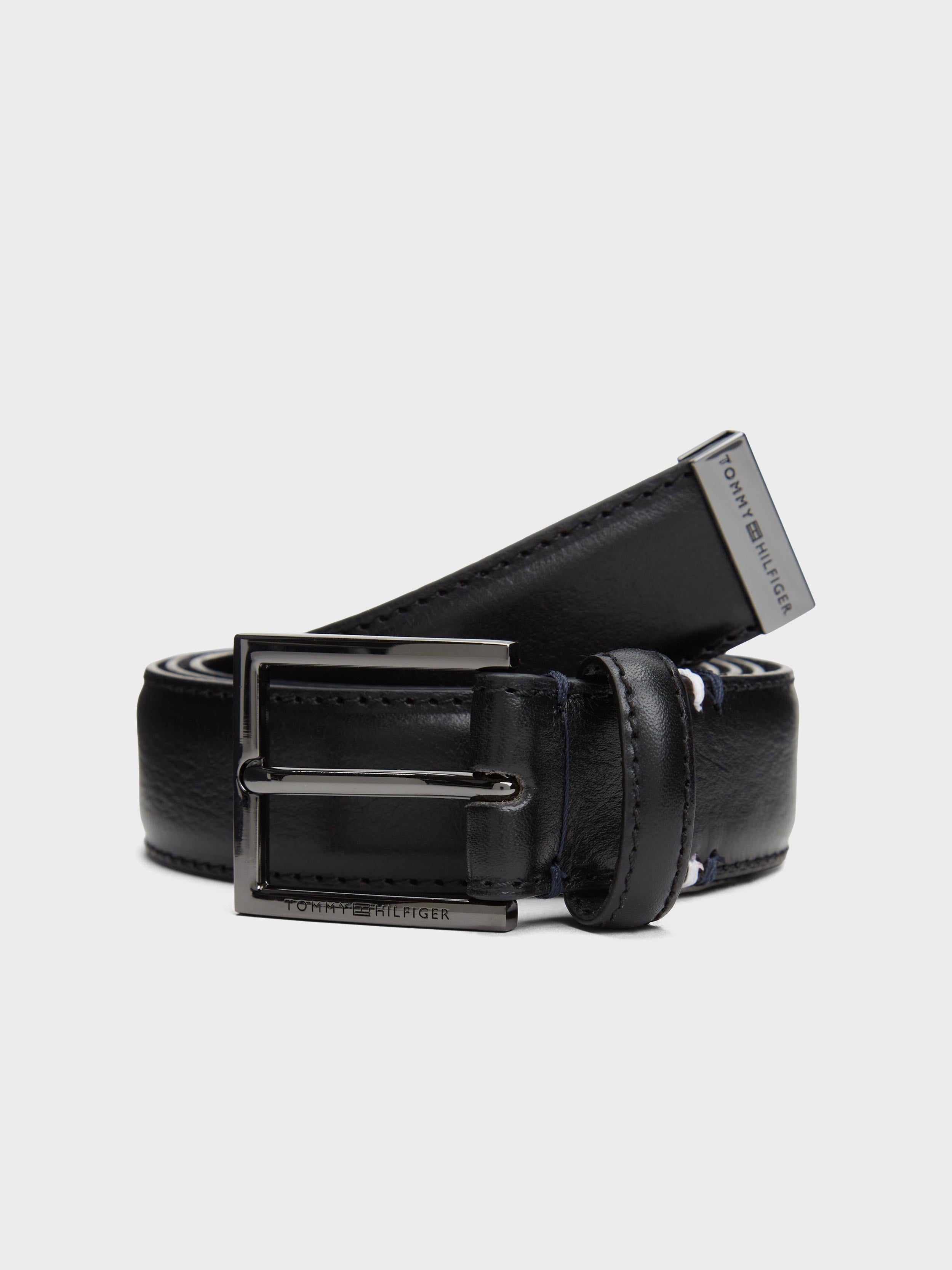 • Tommy Hilfiger - Men's Metal Tip Pebble Grain Leather Belt