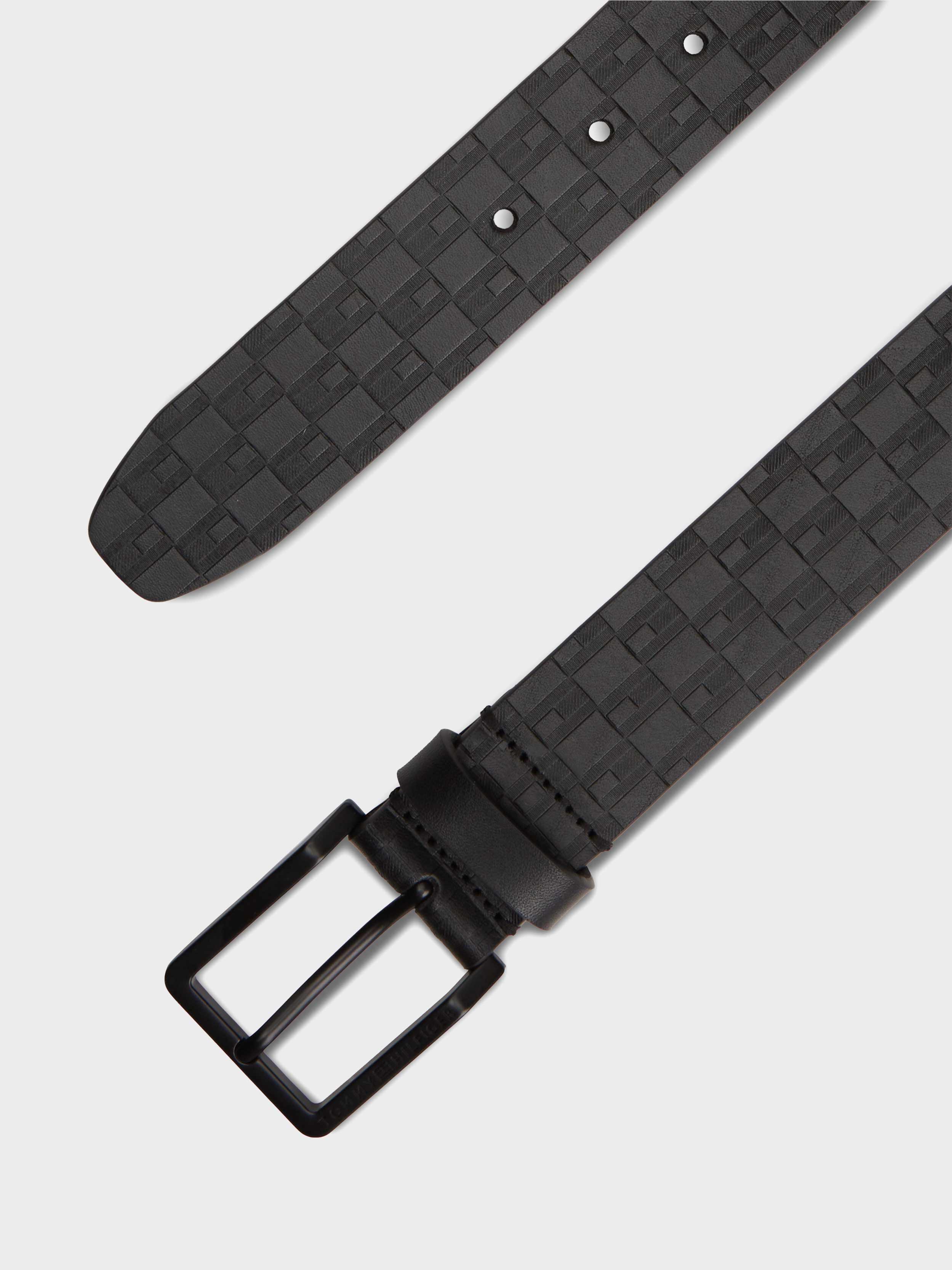 • Add styling personality to smart and laid-back outfits with this leather belt, featuring an all-over repeat flag design with a textured finishLeather
