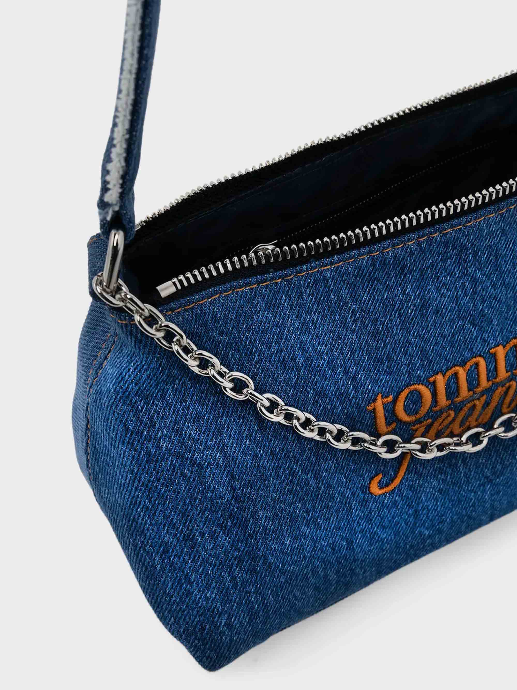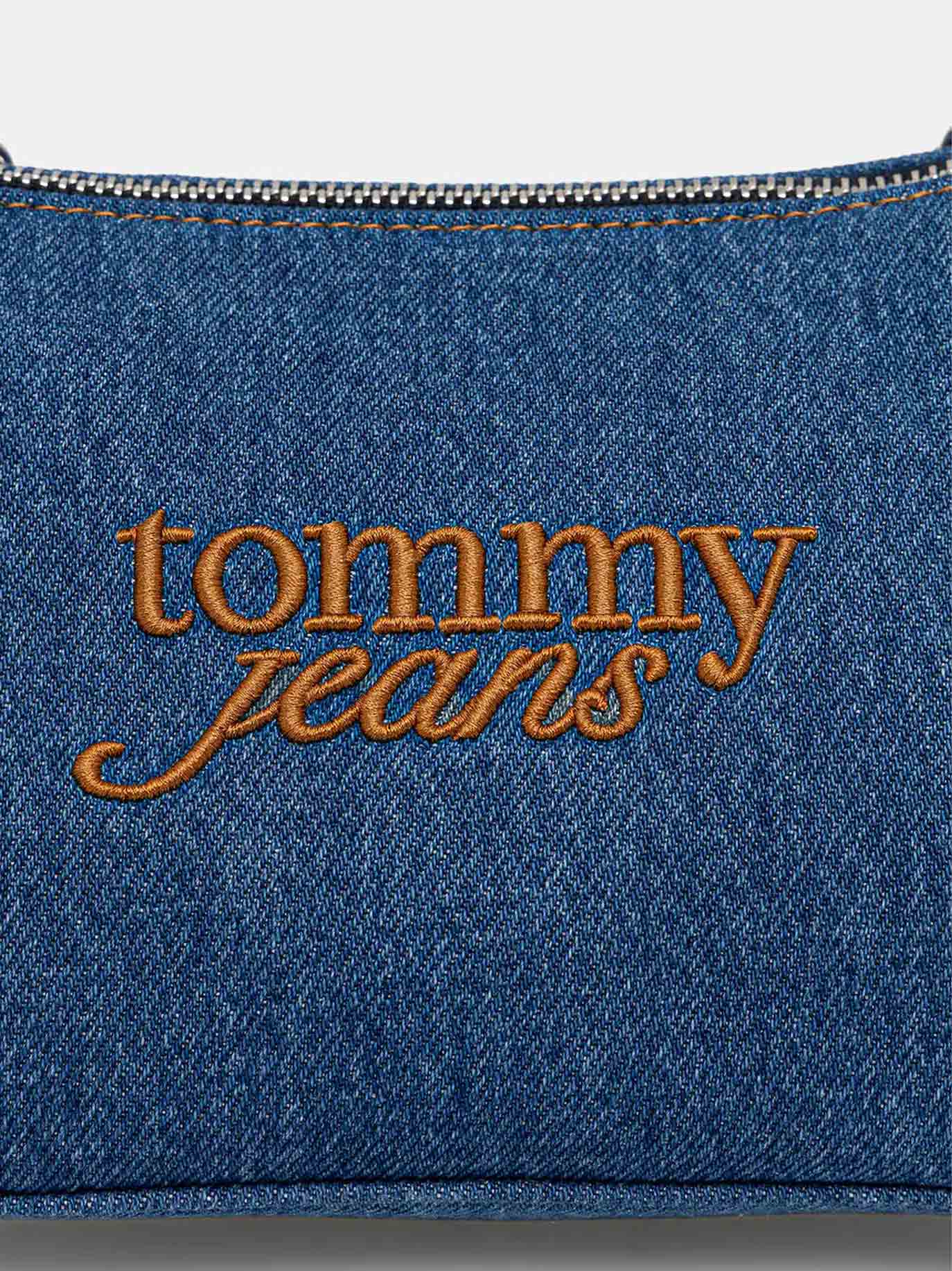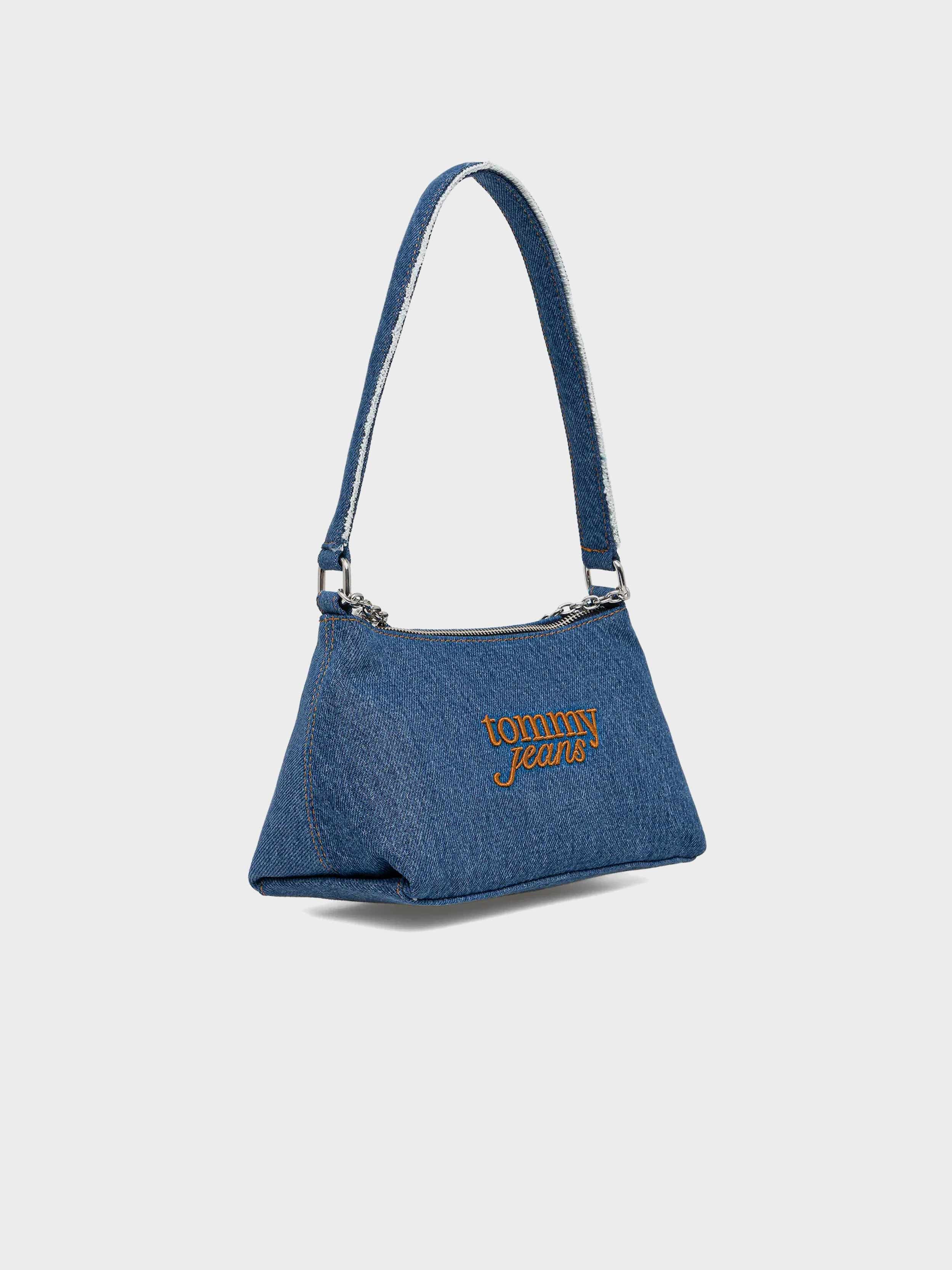 • A small handbag from the Tommy Jeans collection. A zippered design crafted from denim.