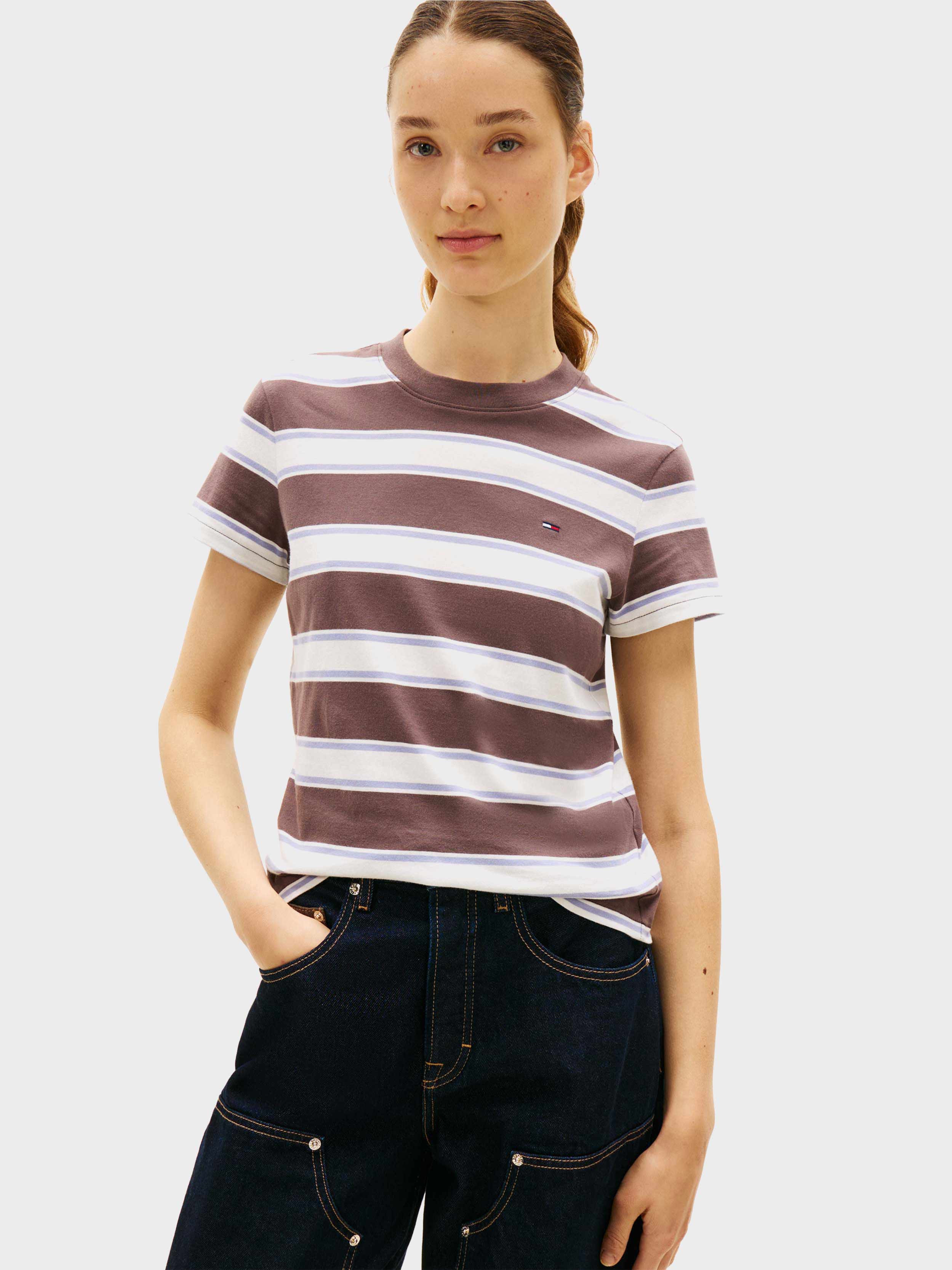 Tommy Hilfiger - TJW REG S FLAG JERSEY SS TEE EXT , L , Black Walnut / Multi Stripe , Style DW0DW21834