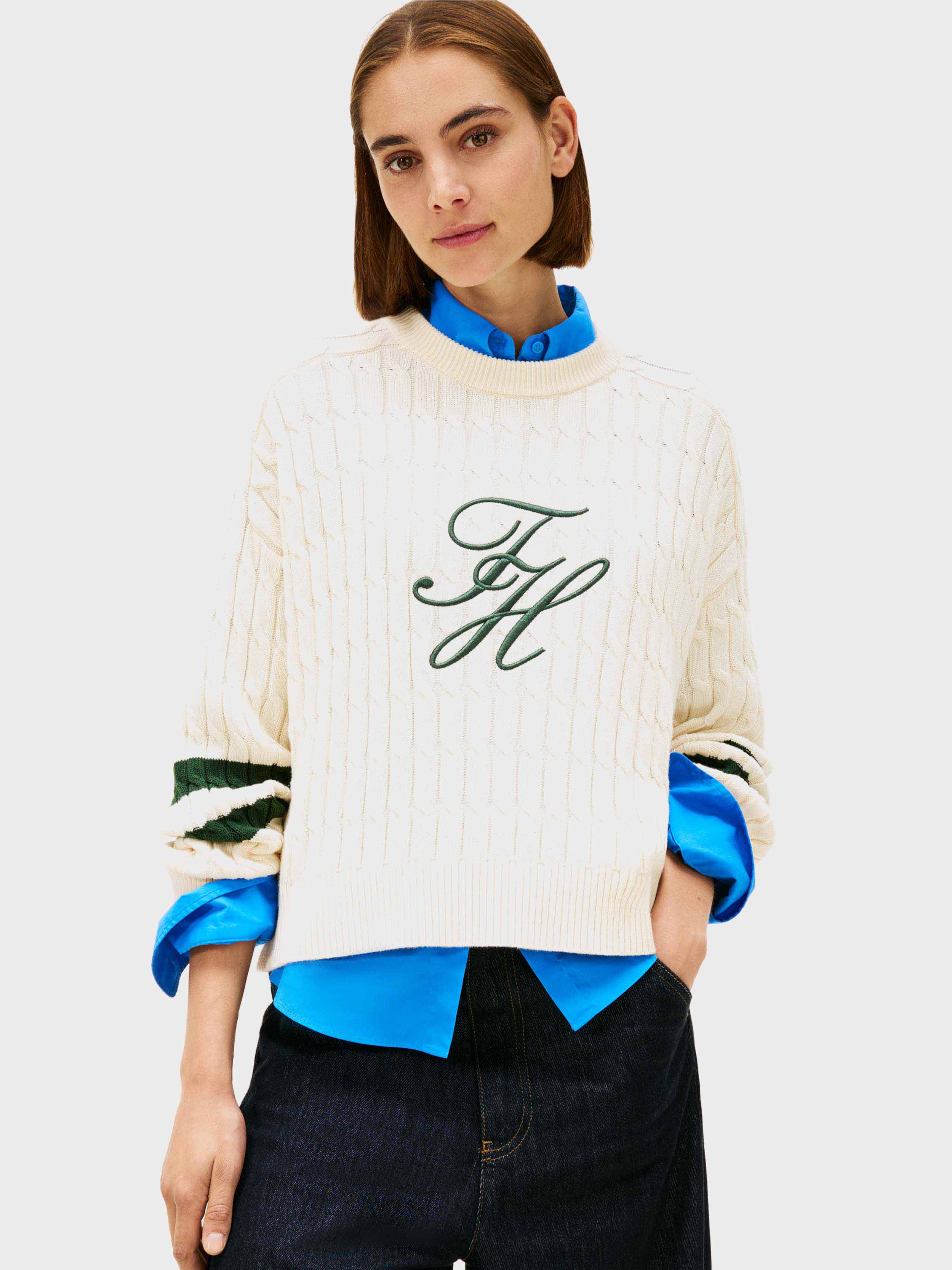Tommy Hilfiger - Women's Logo Embroidery Relaxed Cable Knit Jumper