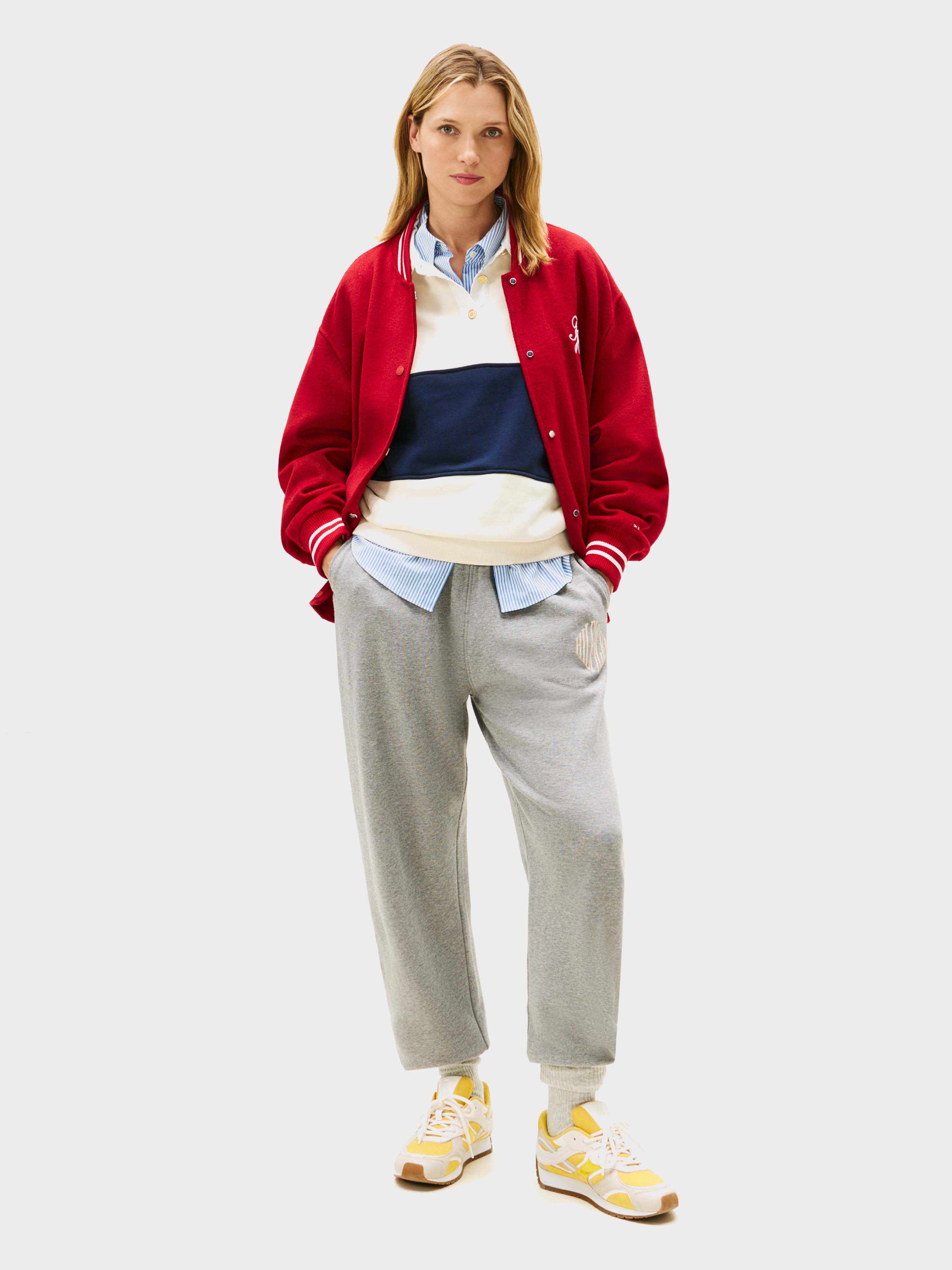 • These joggers with varsity-inspired branding have an elasticated waist and cuffs for a secure fit when lounging or running errands.