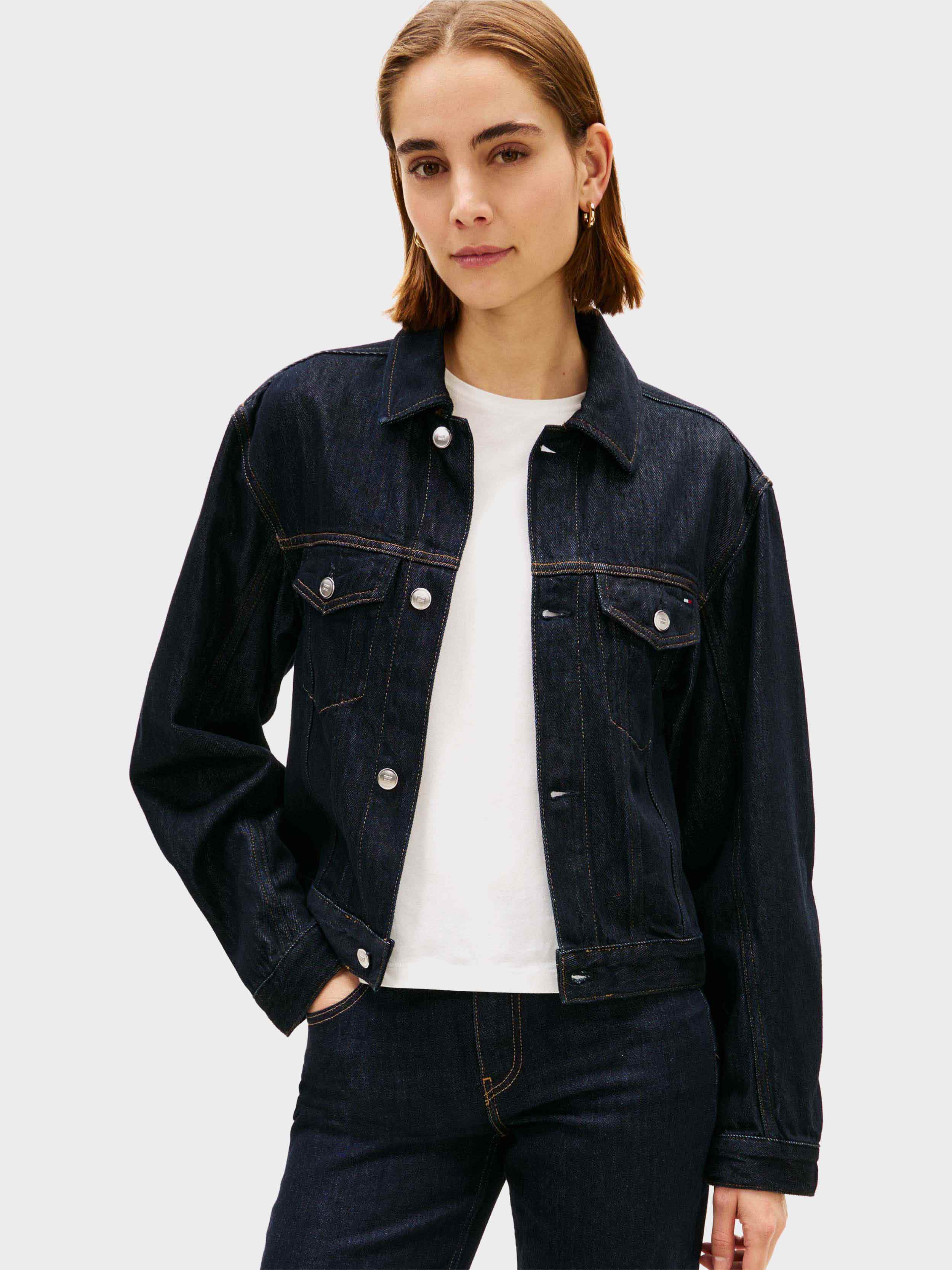 • Tommy Hilfiger - Women's Flag Embroidery Pleated Denim Jacket
