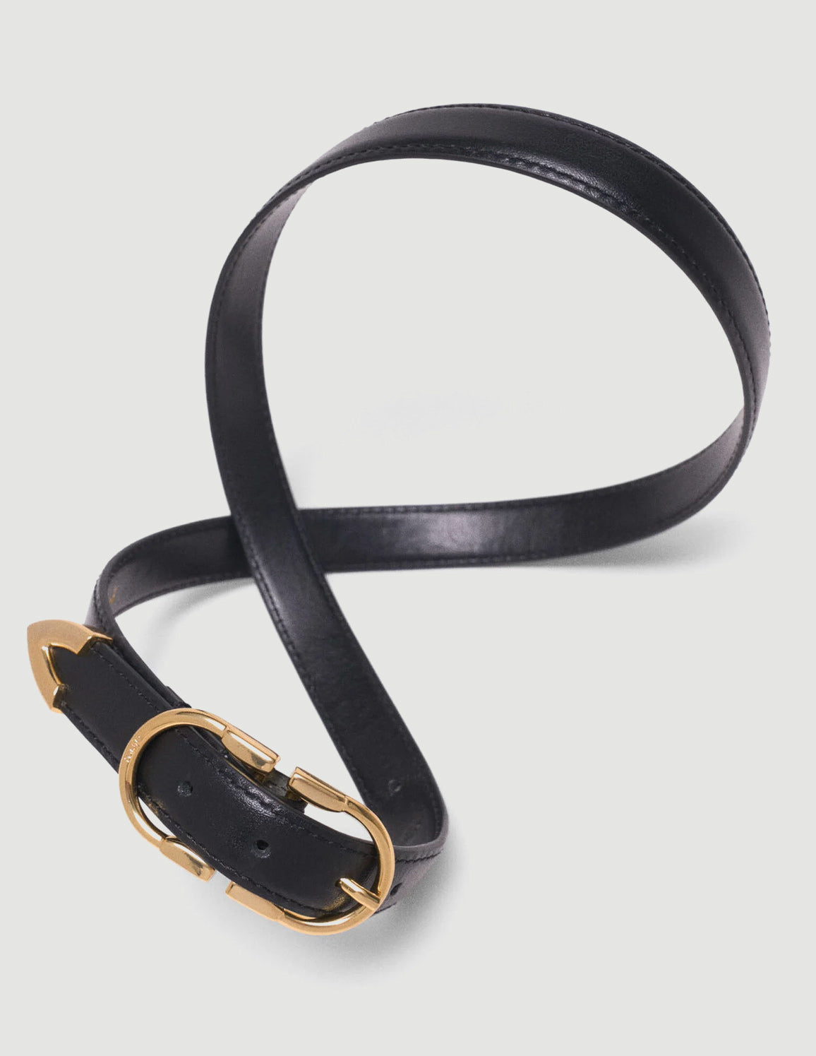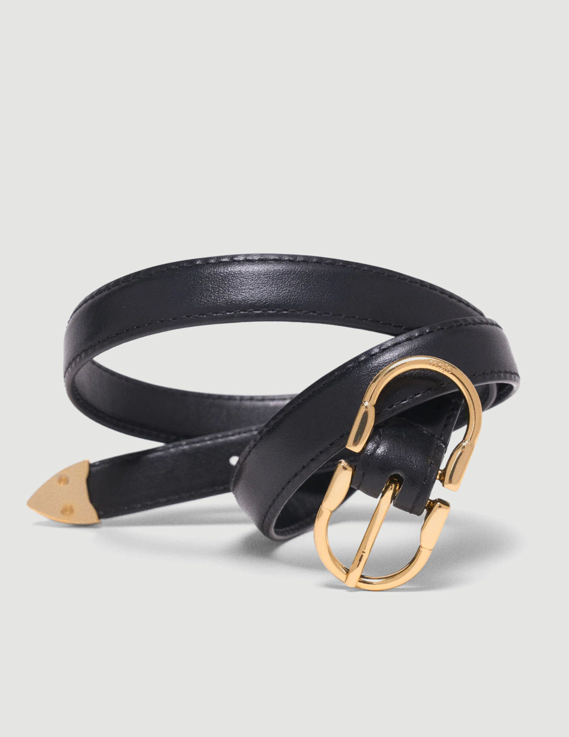 • Signature gold oval buckle