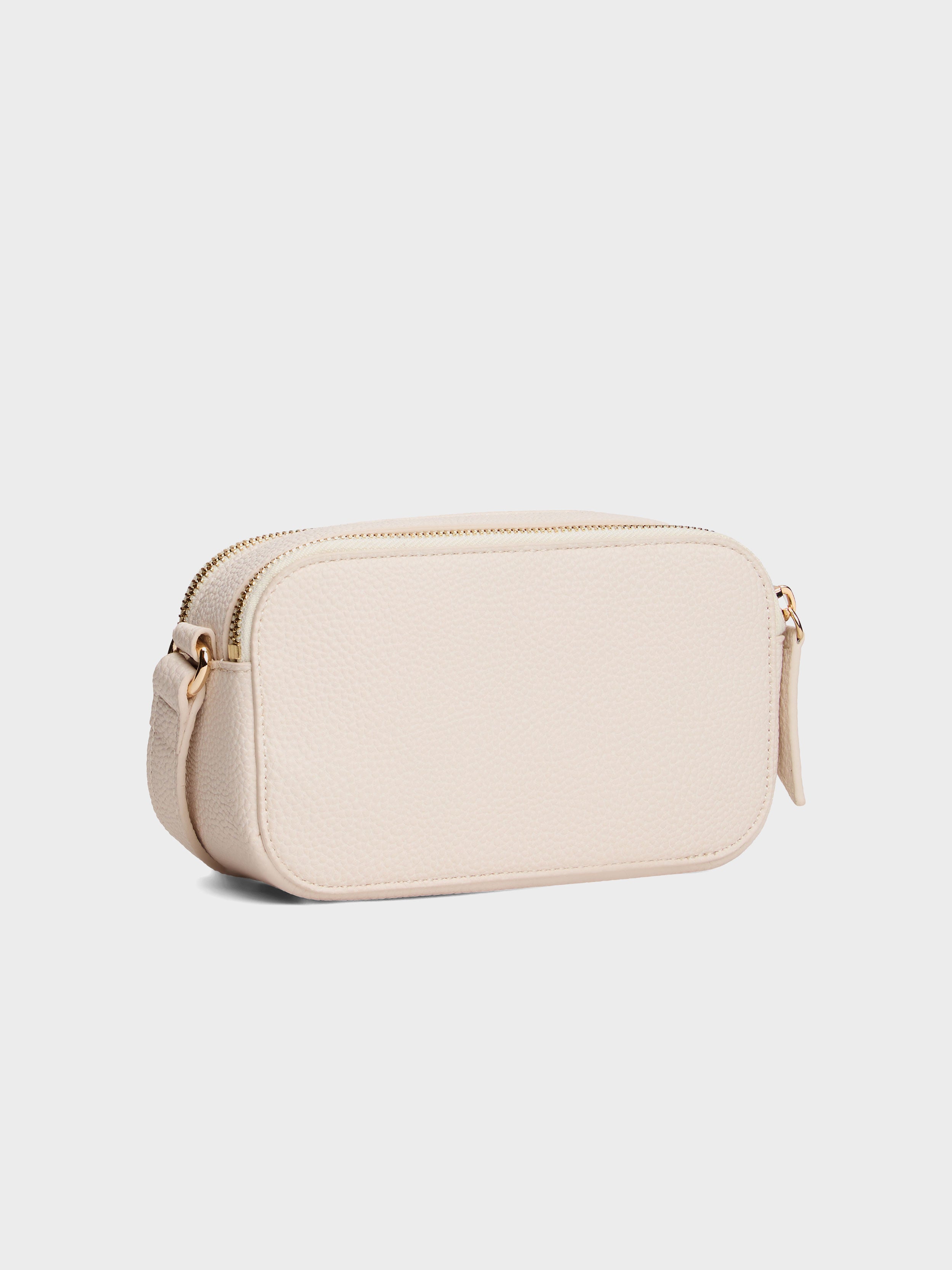 • embellishment in this camera bag, featuring two zipped compartments, luxe polished hardware and signature tape detailing.Pebble grain finish