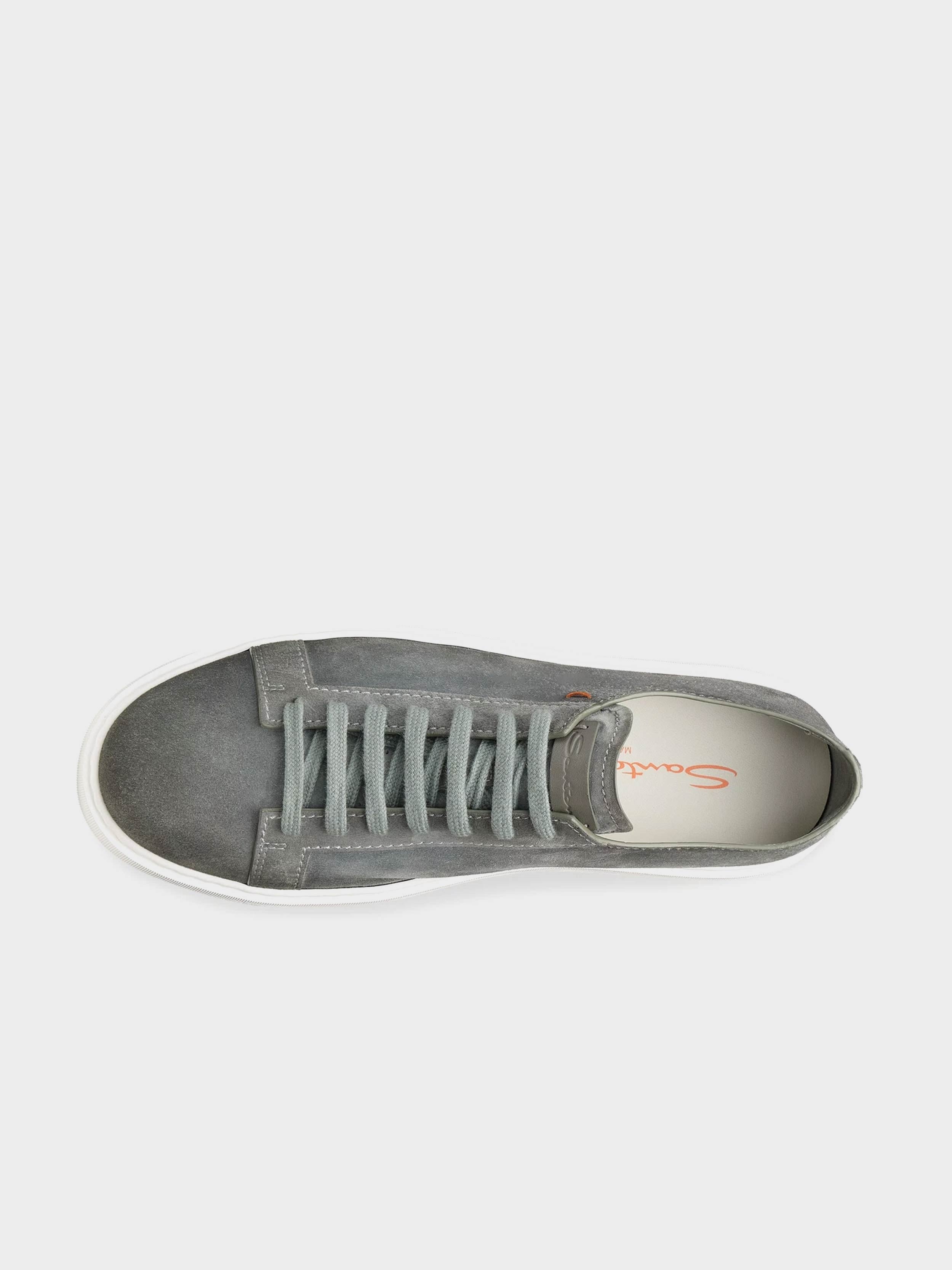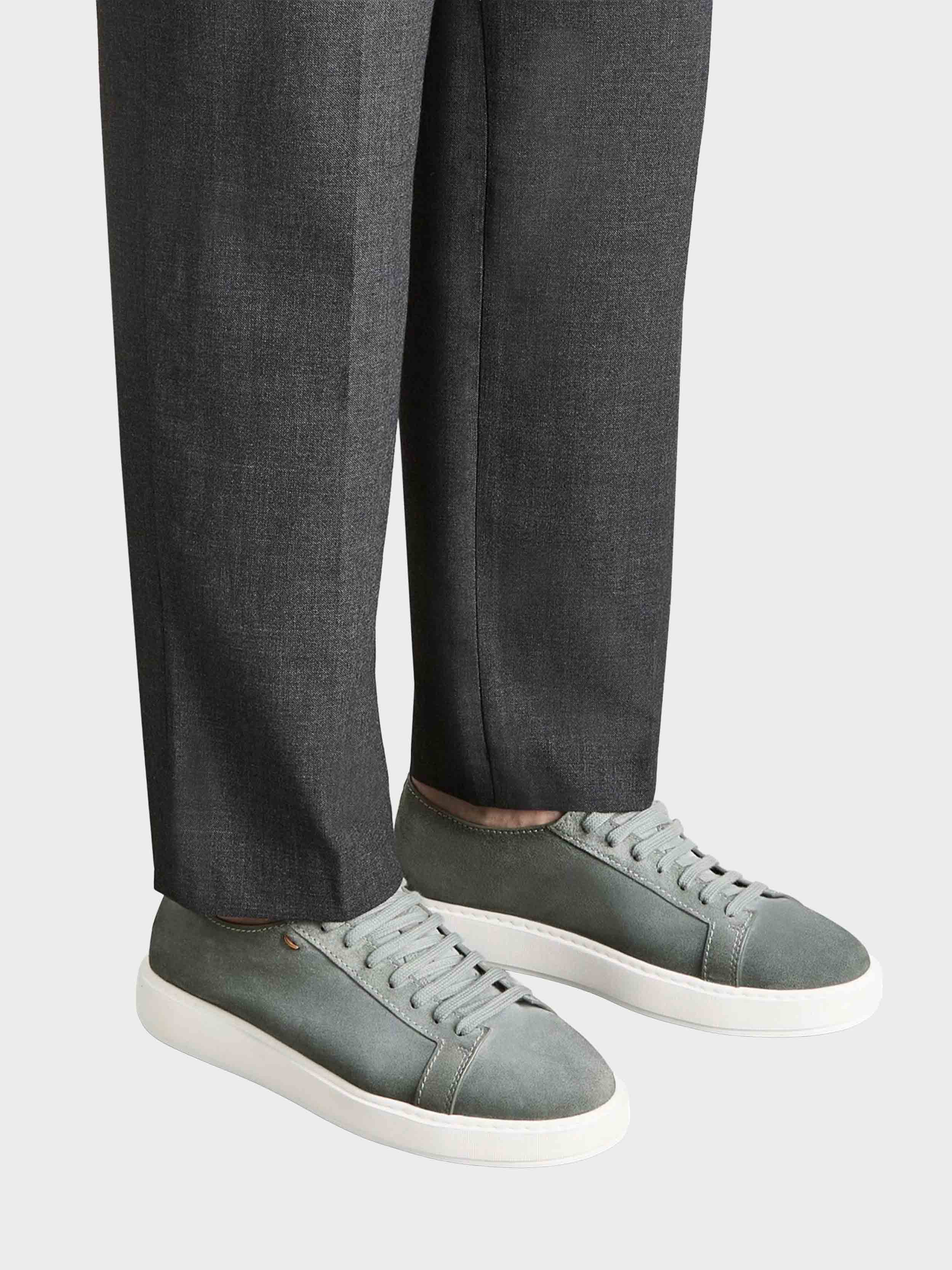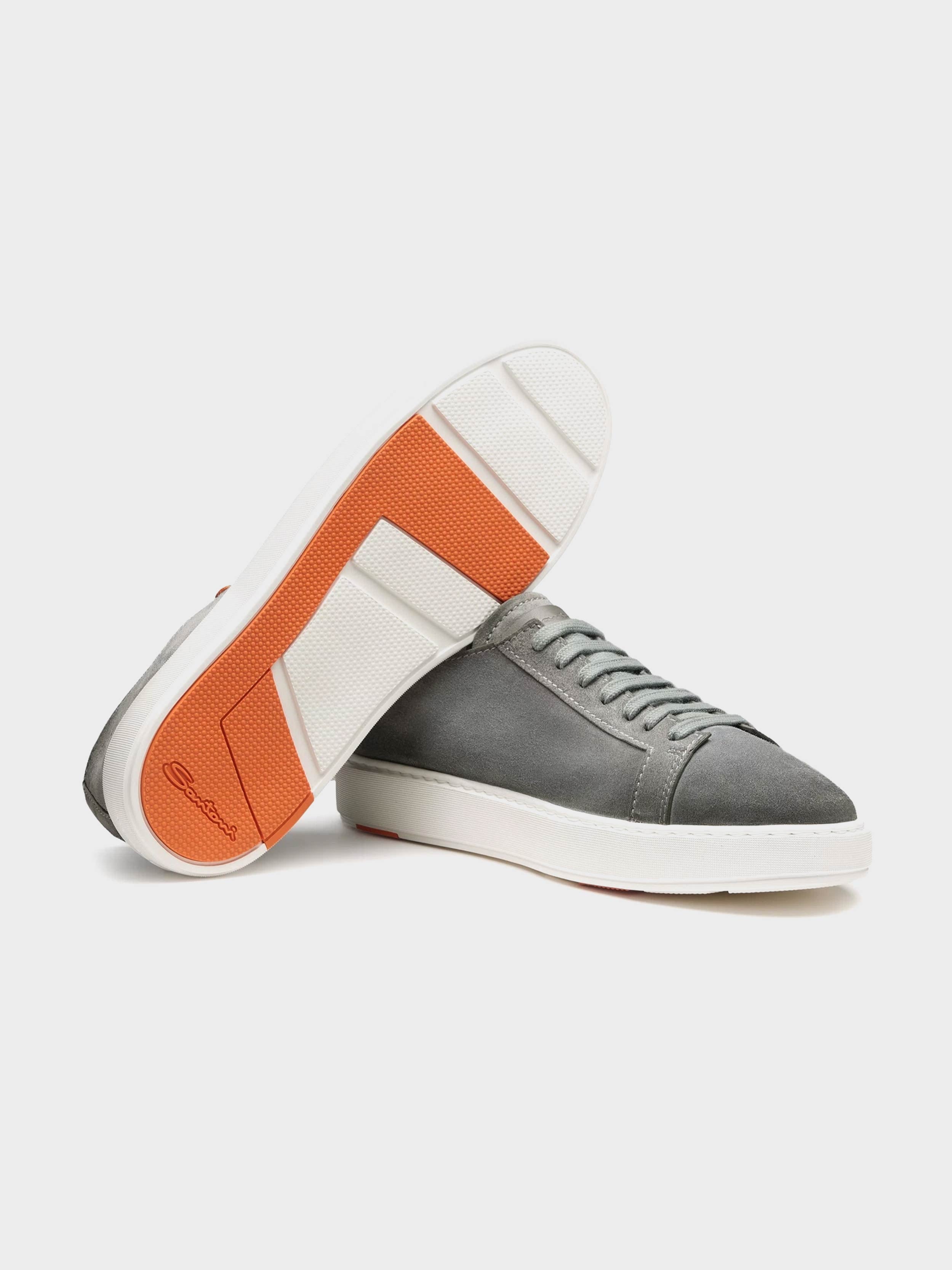• The timeless allure of artisanal craftsmanship meets the practical appeal of modern design. This sneaker is crafted from Seta suede, gracefully embracing the foot like silk to deliver an elevated sensory experience with every stride. A hand-applied Velatura finish creates a rich color-graded finish, accented with a delicate Sigillo stitch in Arancio Santoni — the Maison’s iconic orange hue. Hallmarked with a leather logo patch on the tongue and a bold accent on the tread that reimagines the lines of Santoni’s signature double buckle.