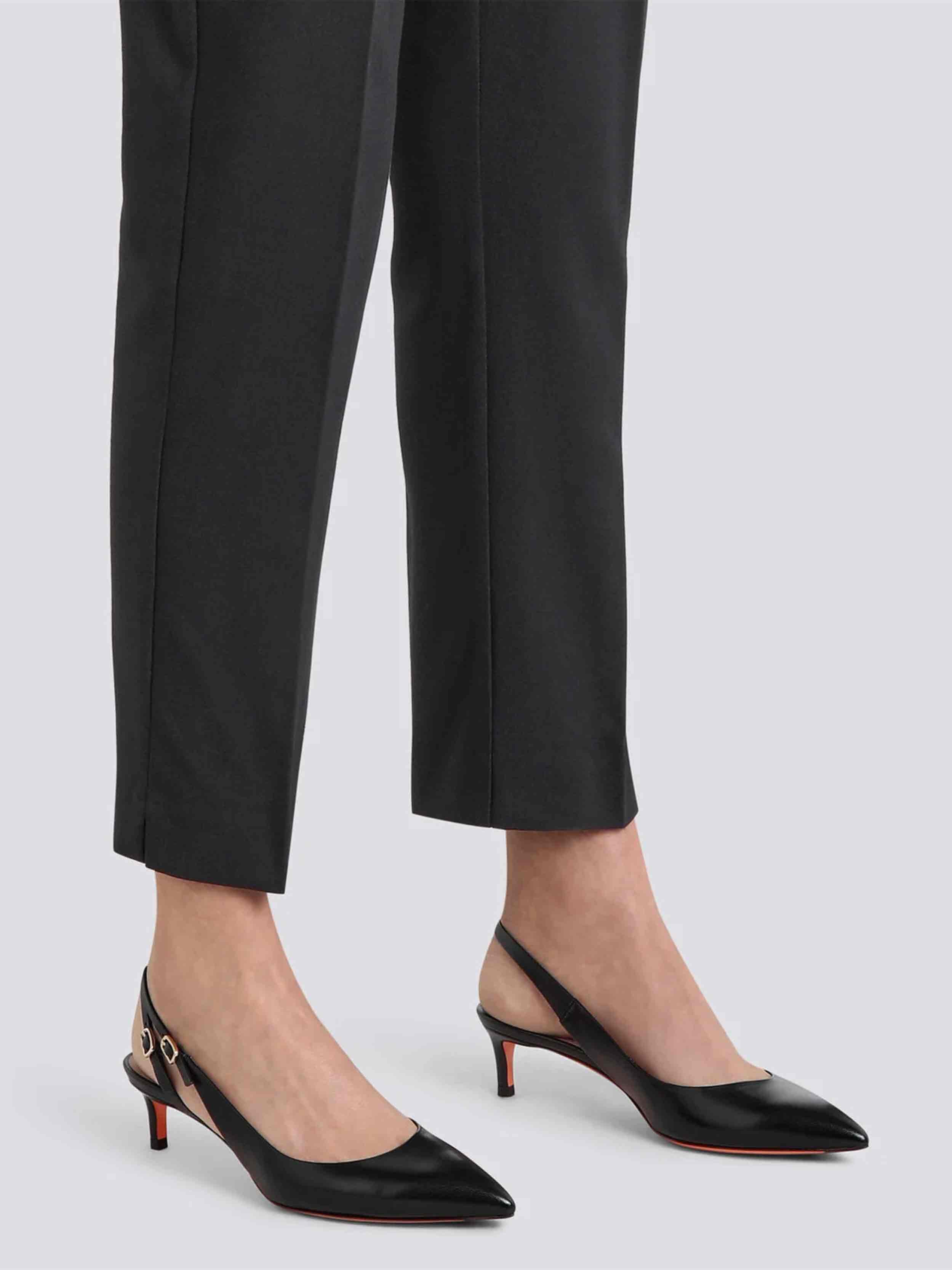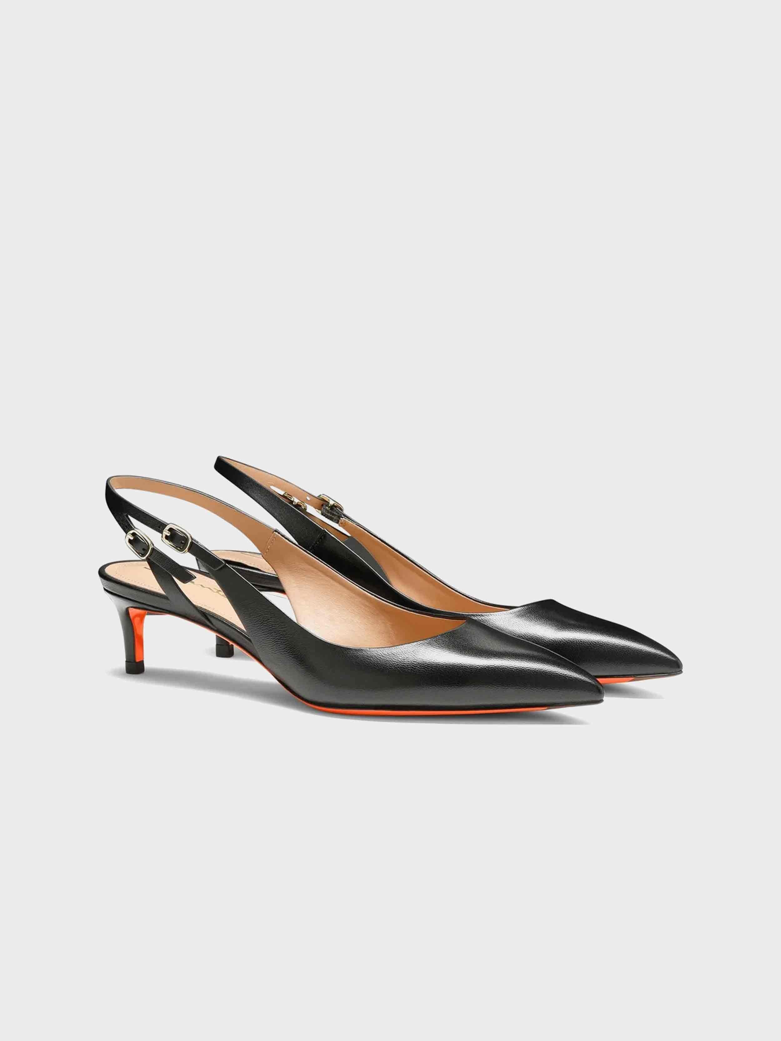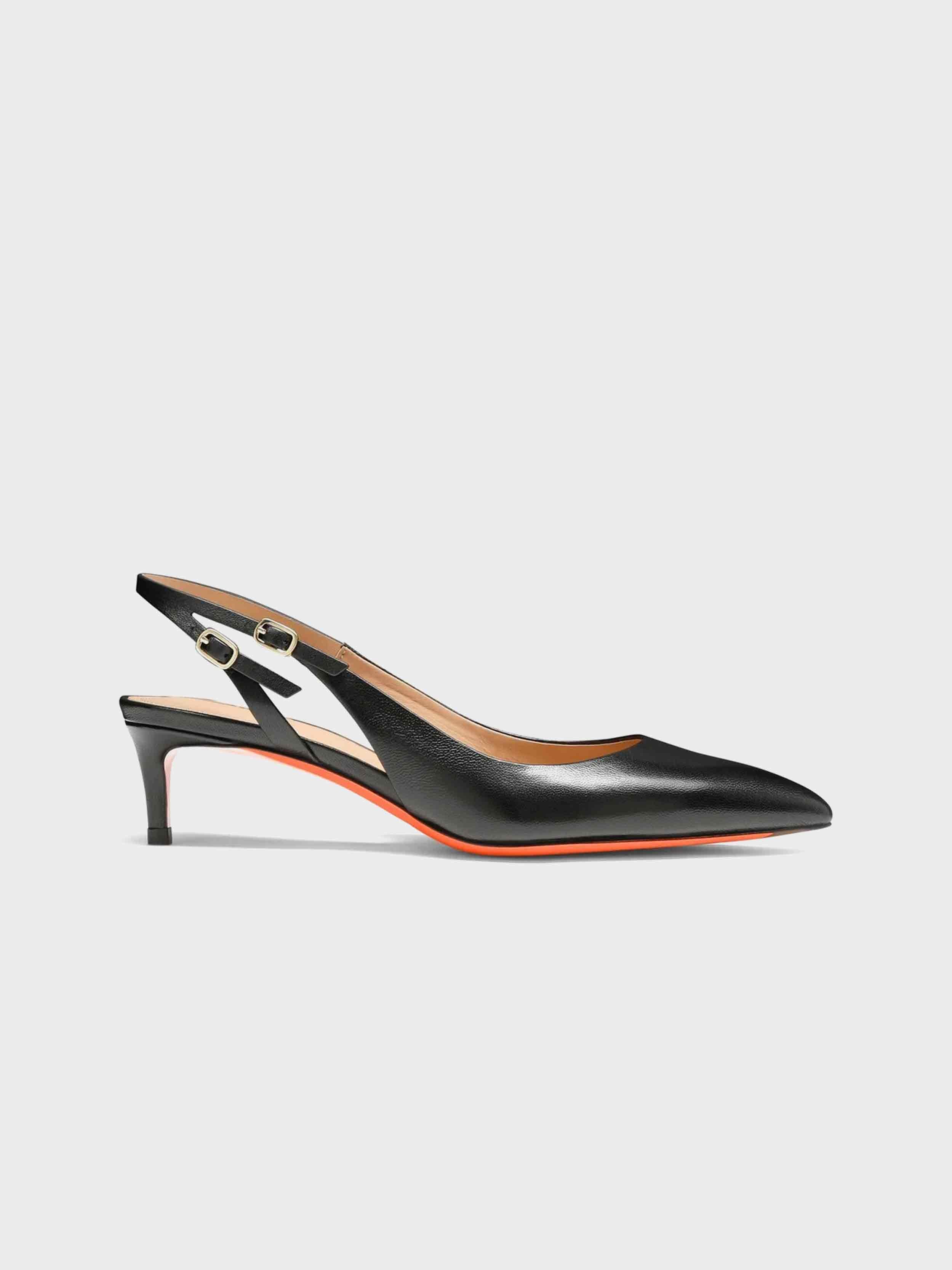 • A harmonious fusion of Santoni’s heritage codes, this slingback is the definition of refined elegance. Crafted from nappa leather, its sleek silhouette features a tapered toe and a strap on the back inspired by the iconic lines of our signature double buckle. Styled with a comfortable mid-height heel that works effortlessly with both casual and evening looks alike.