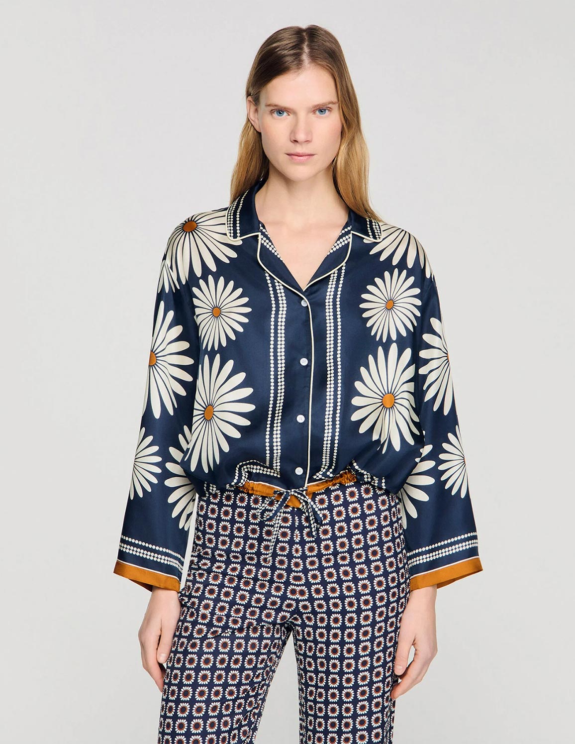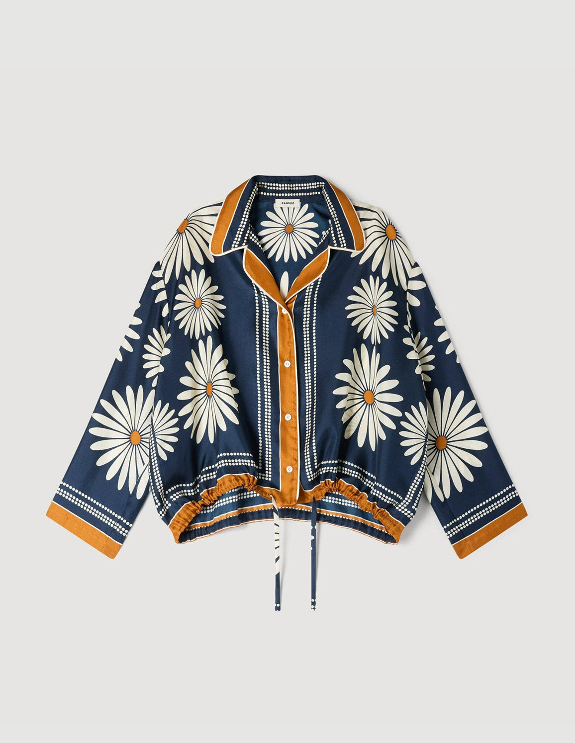 • Floaty, floral-print silk shirt with a lapel shirt collar, long sleeves and a button fastening at the front.