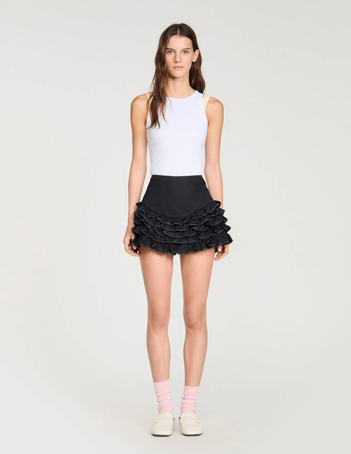 • SANDRO - Women's Ruffled Skirt With Topstitching