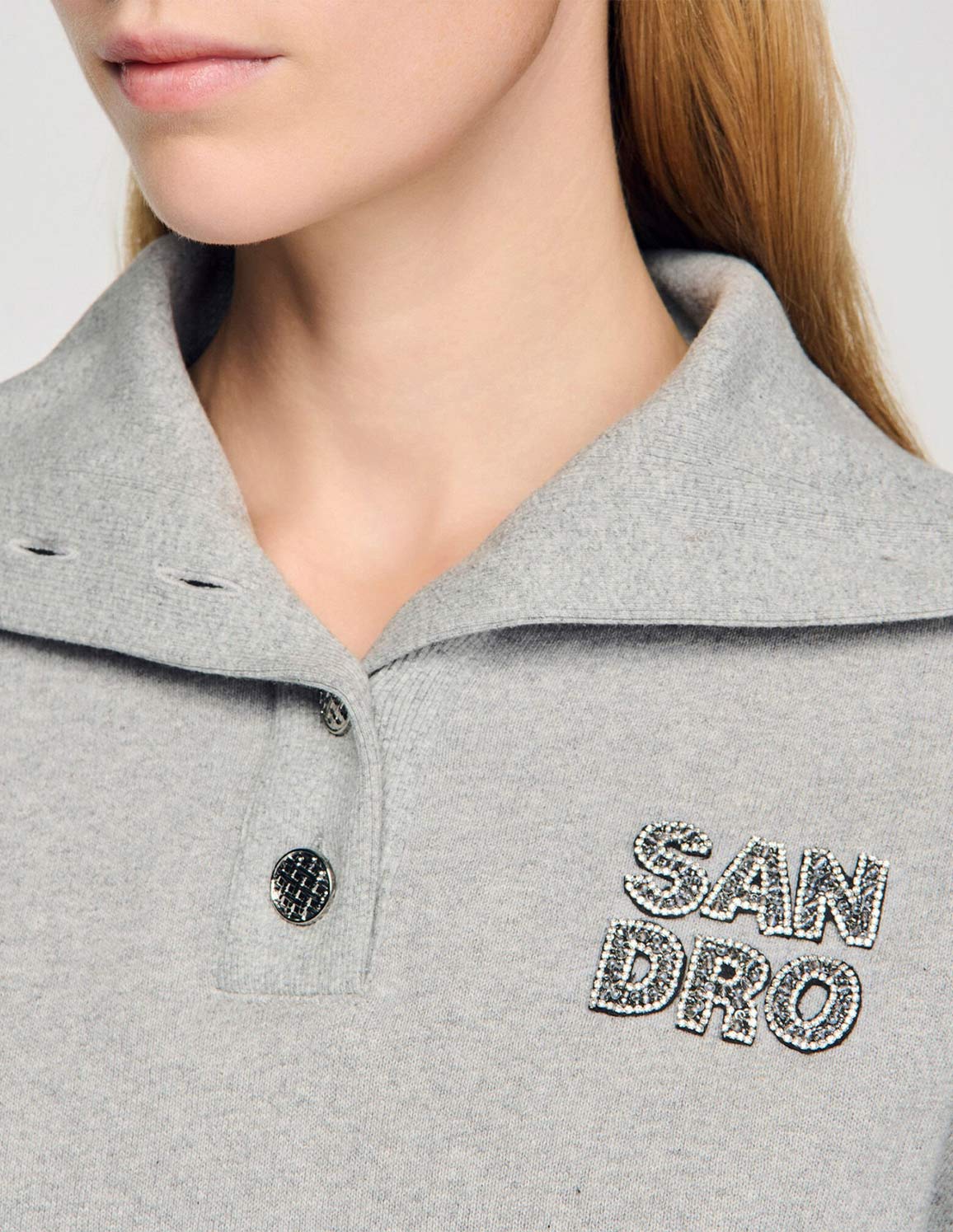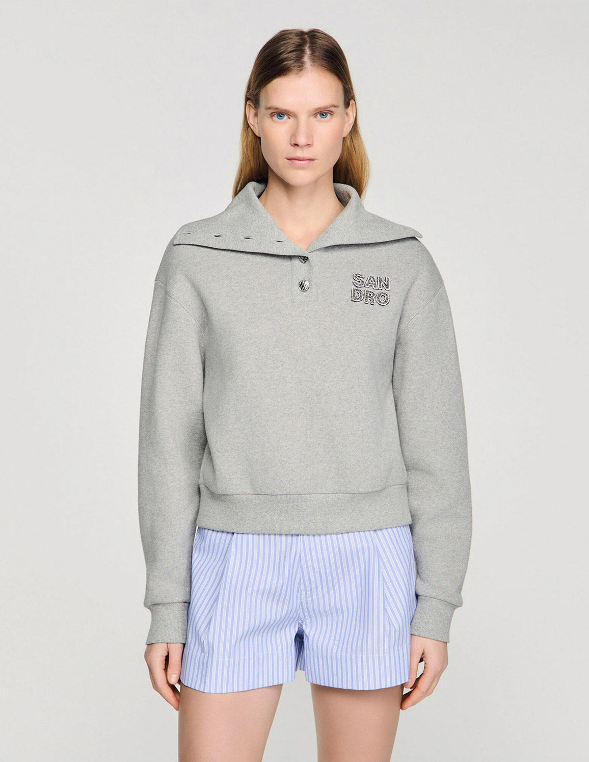 • SANDRO - Women's Embroidered Split Neck Sweatshirt