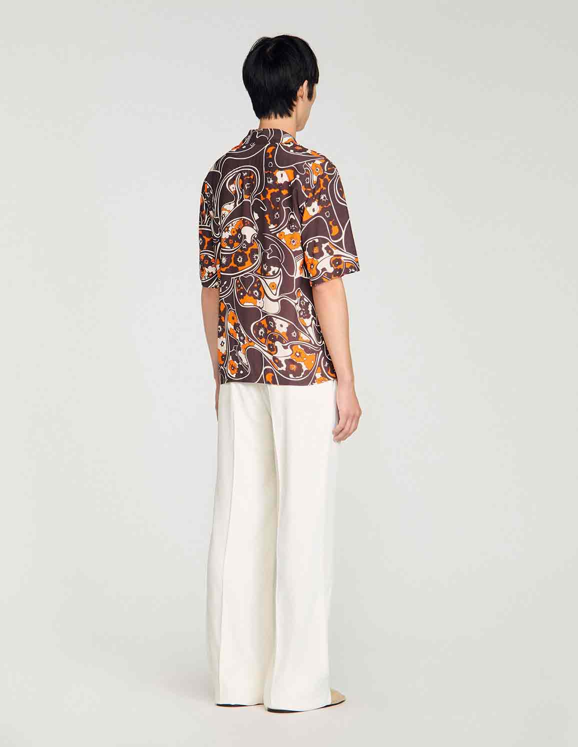 • Flowing shirt with a hippie print, featuring a shark collar, short sleeves and a front button fastening.