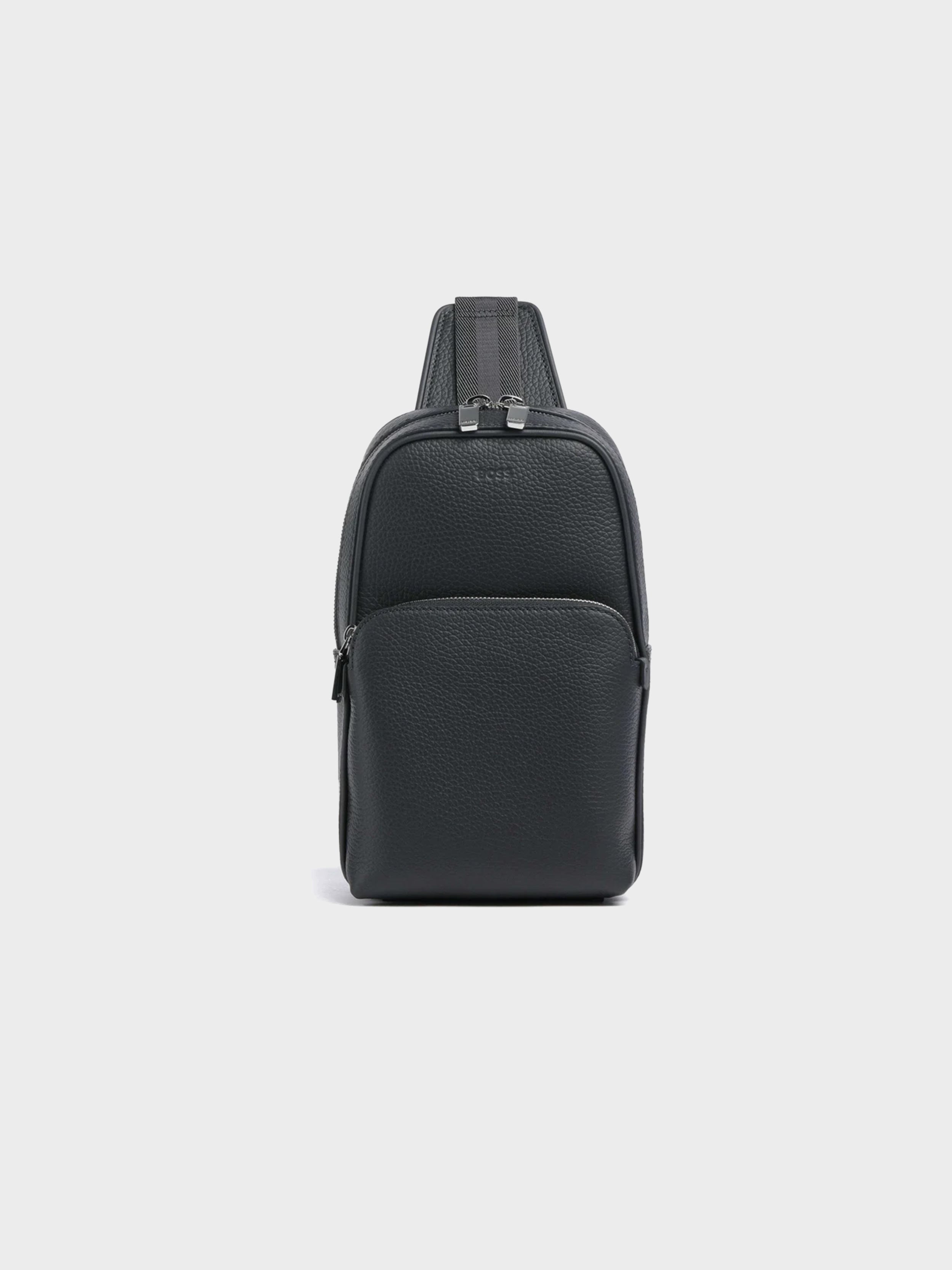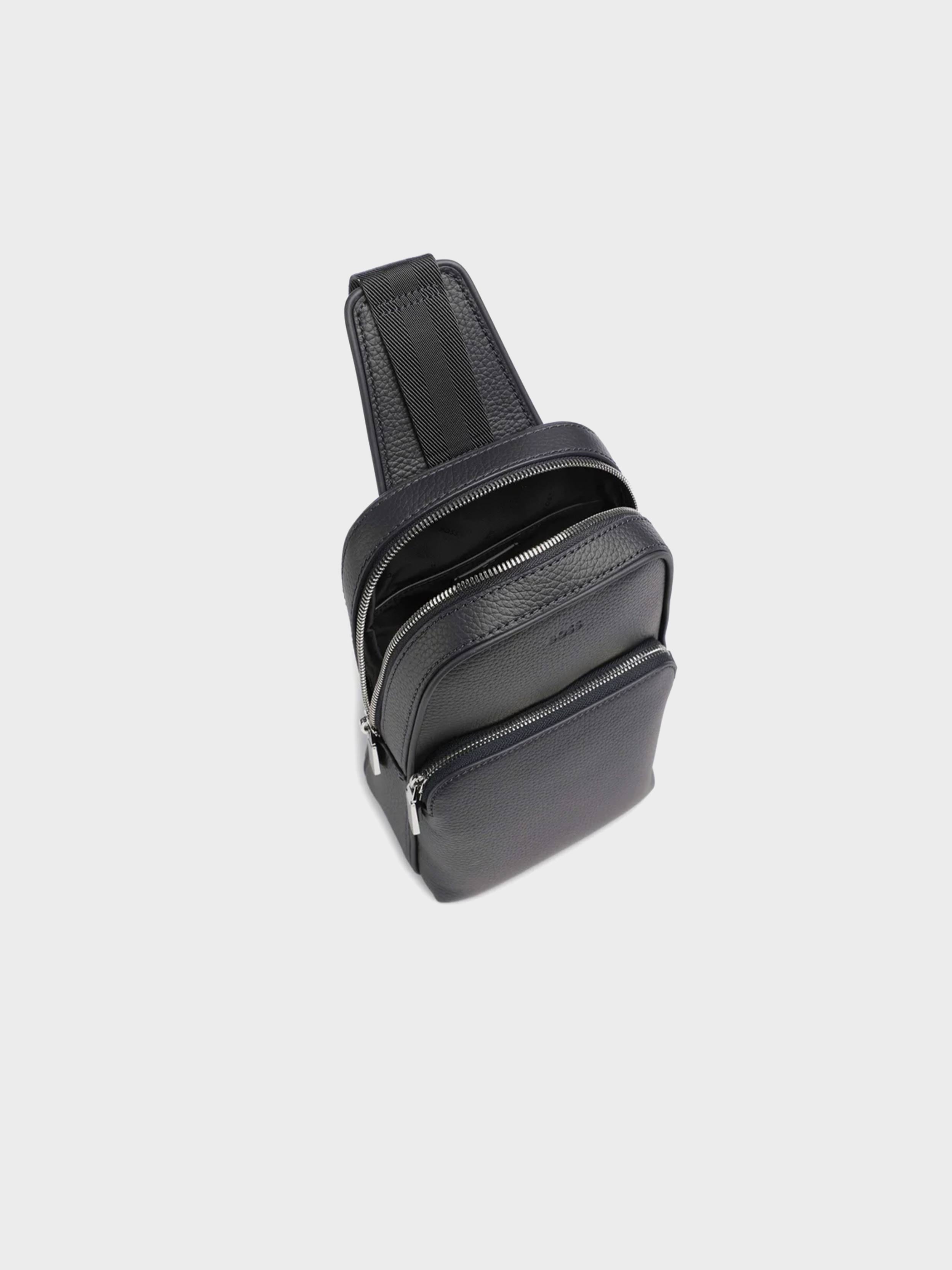 BOSS - Men's Crosstown Sling Bag Grained Cow Leather Navy