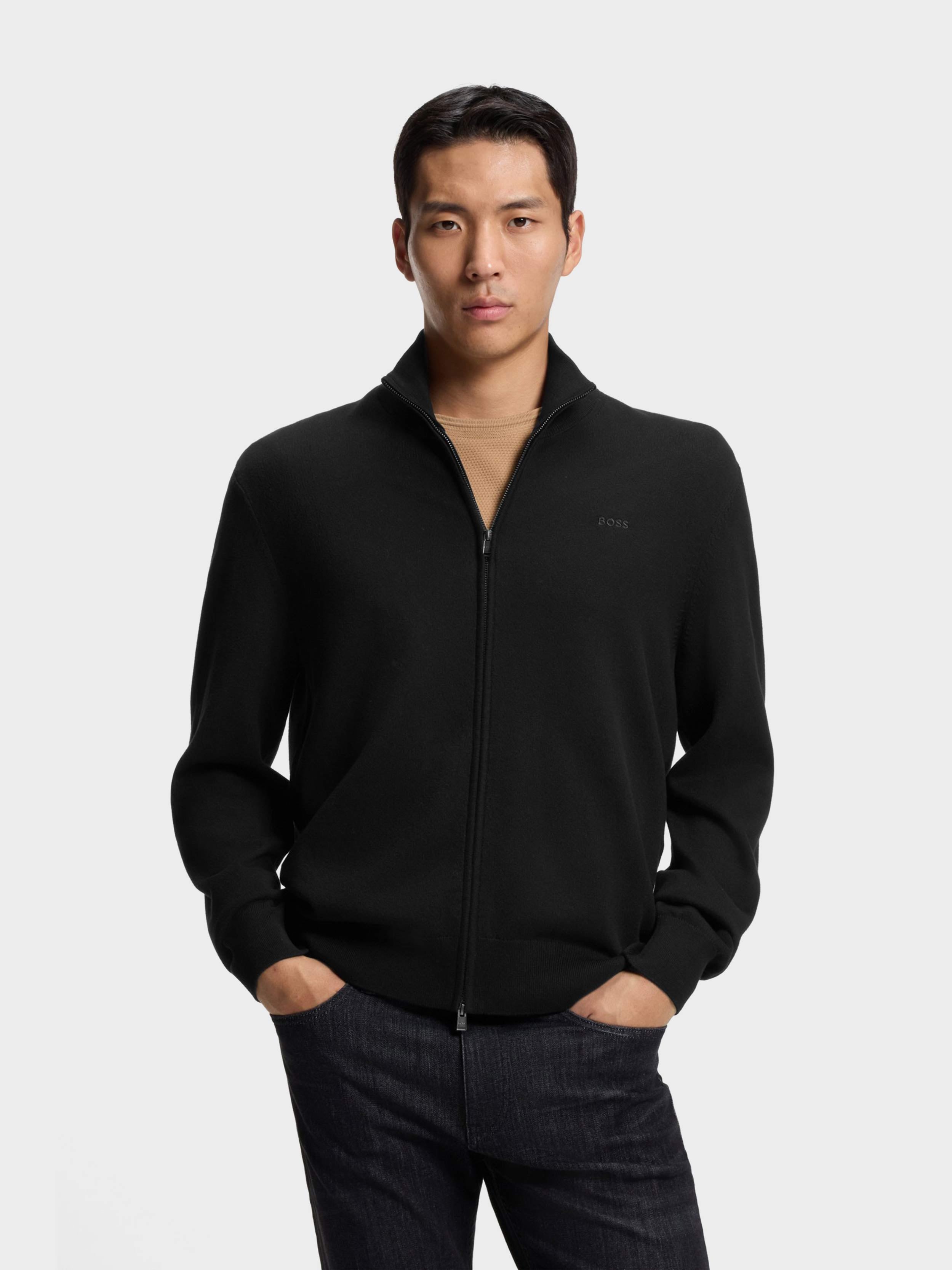 BOSS - Men's Knitted Cotton Cardigan With Embroidered Logo