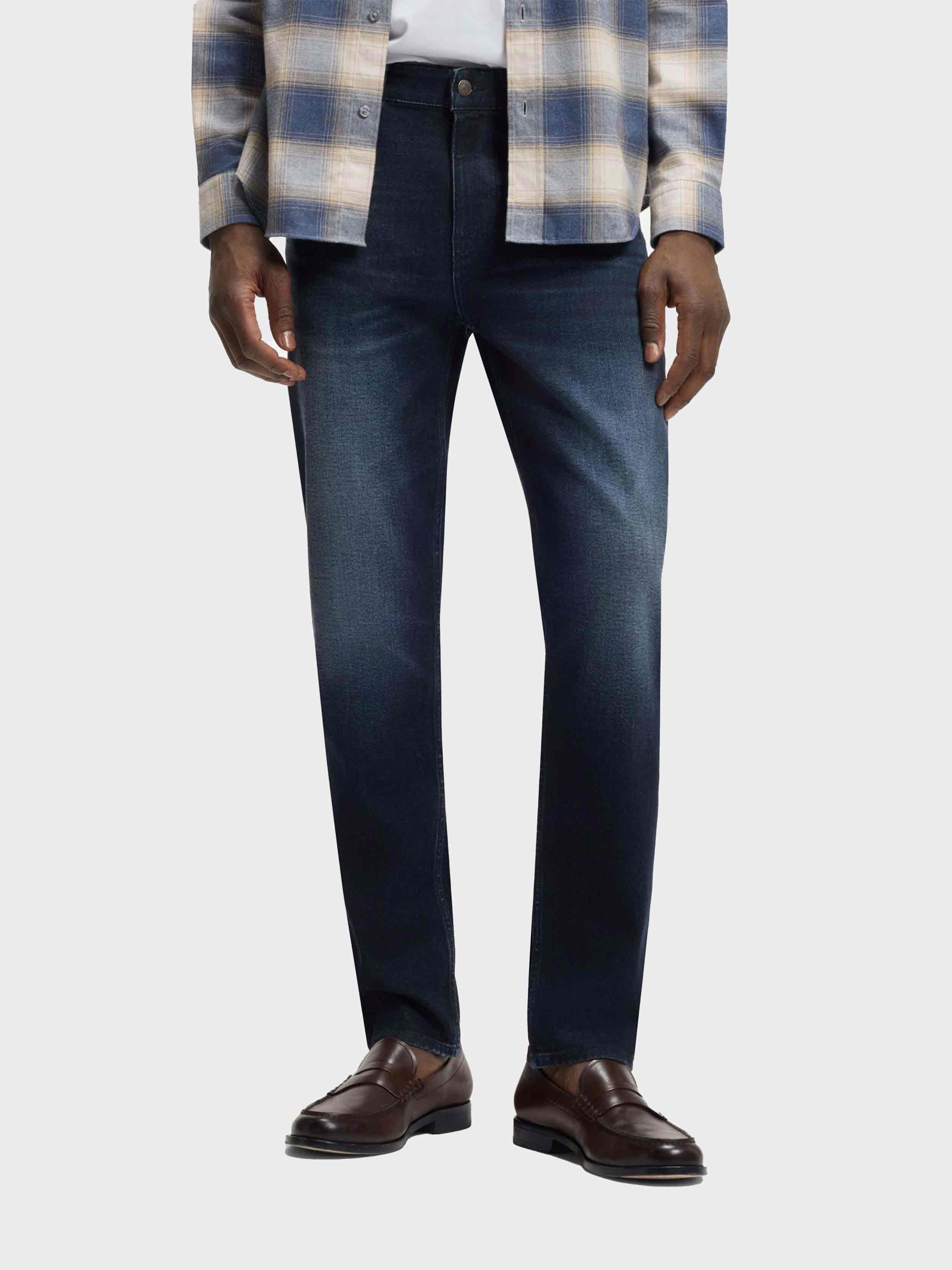 • BOSS - Men's Maine Regular- Fit Jeans In Dark-Blue Extra- Soft Denim