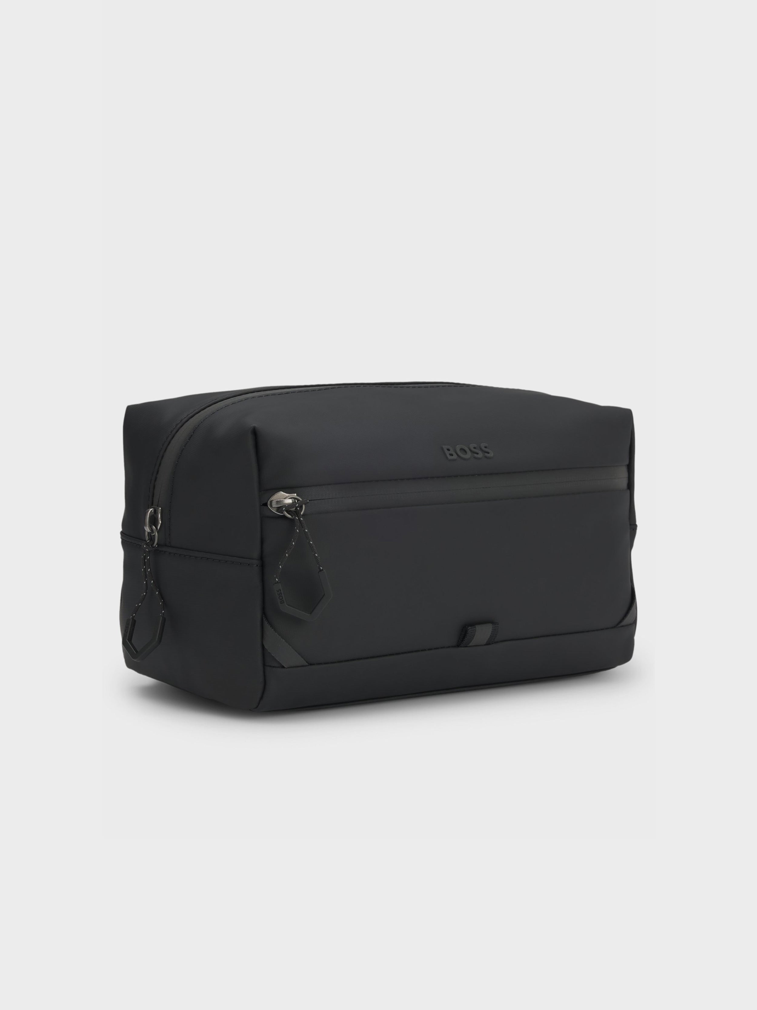 BOSS - Men's Faux-Leather Wash Bag With Reflective Details