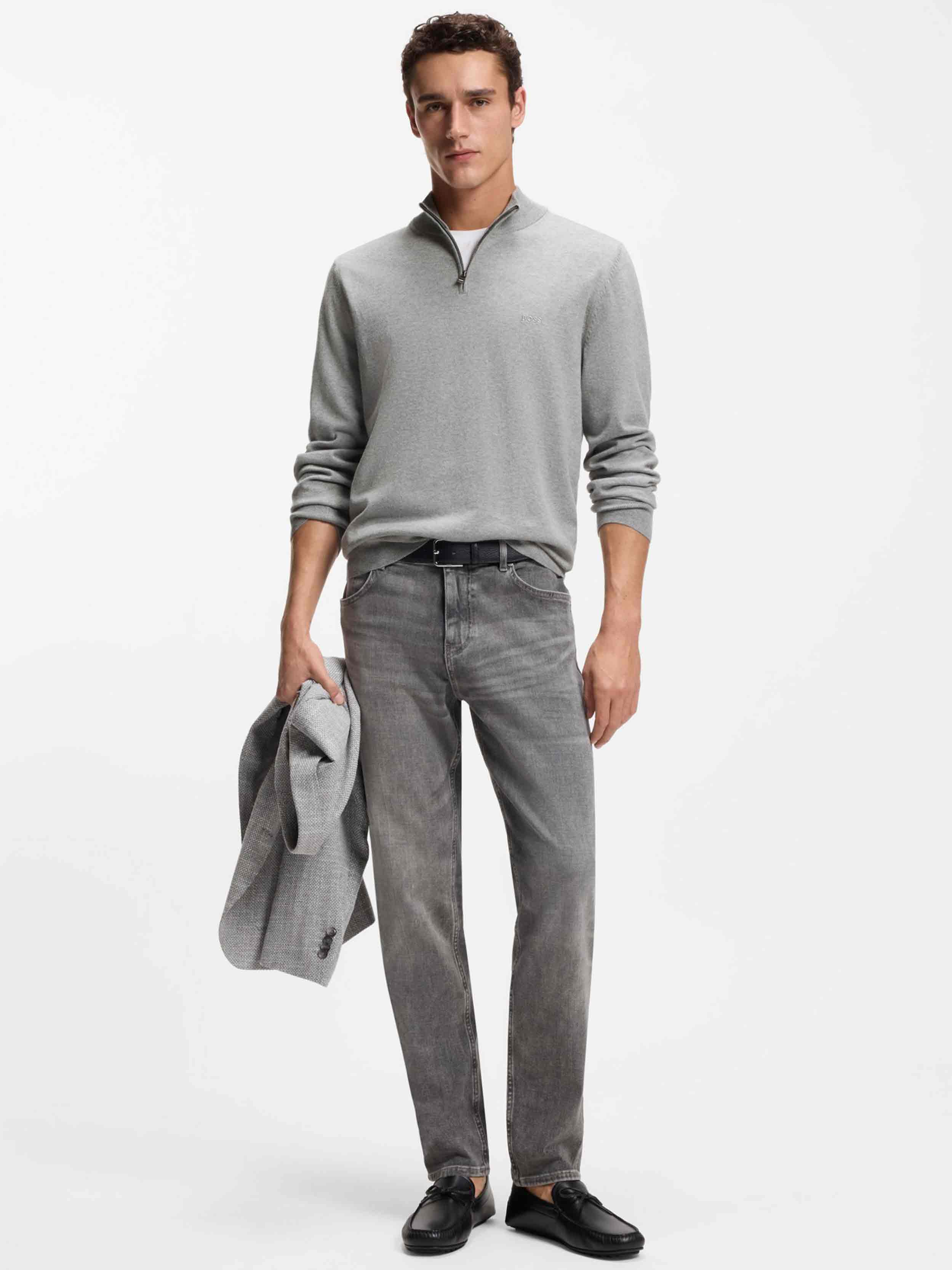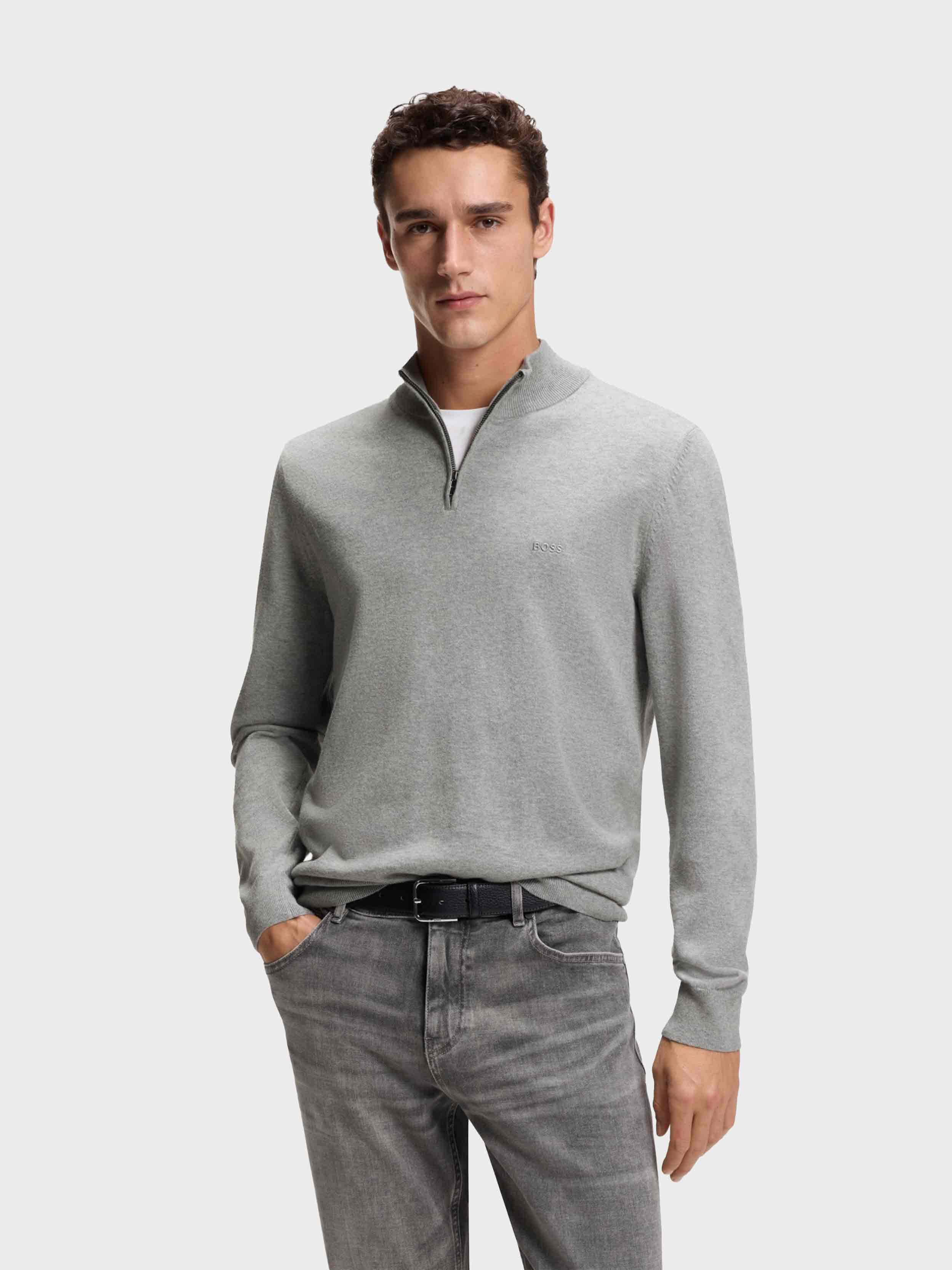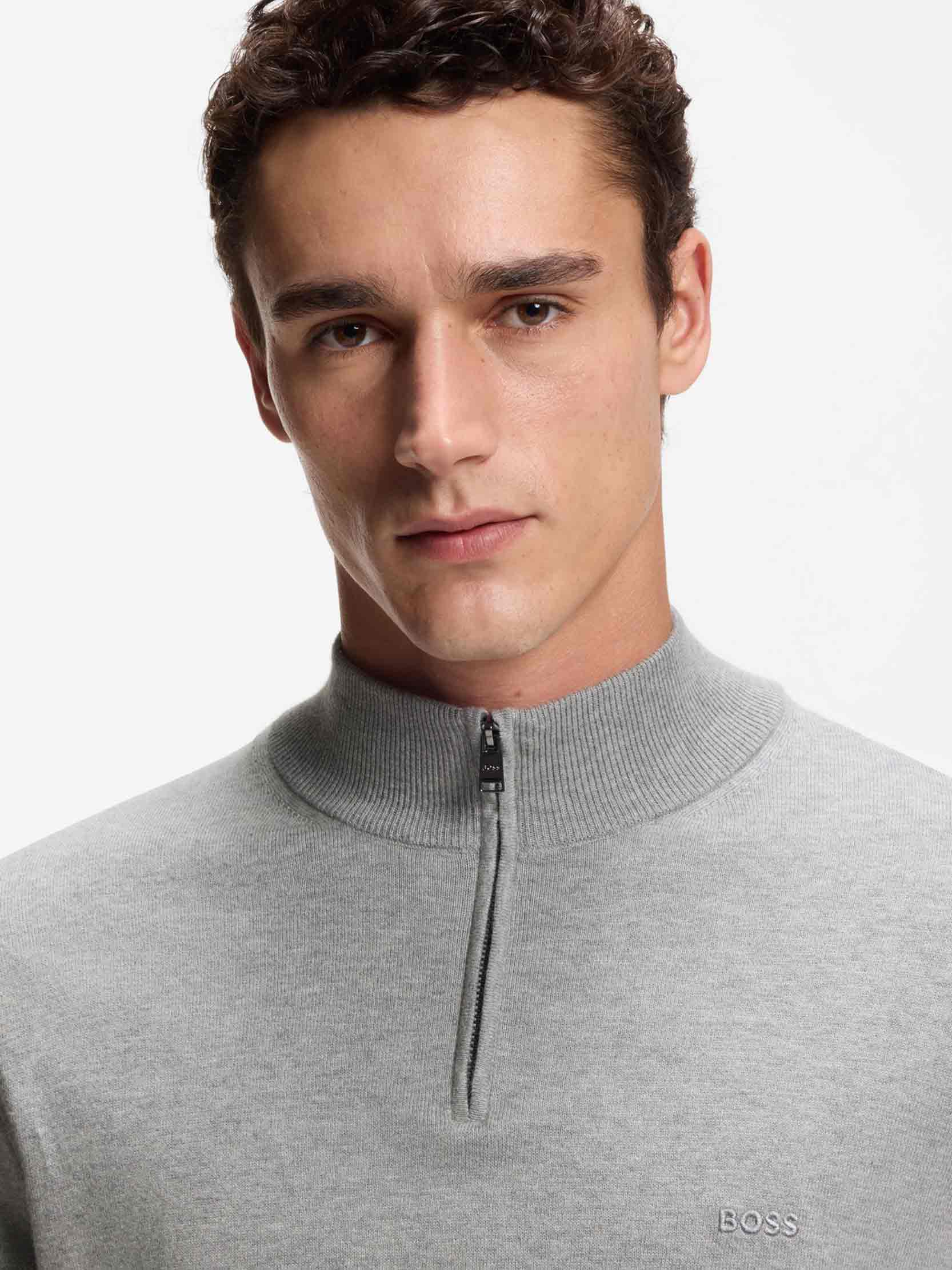 BOSS - Men's Zip-Neck Knitted Sweater In Cotton