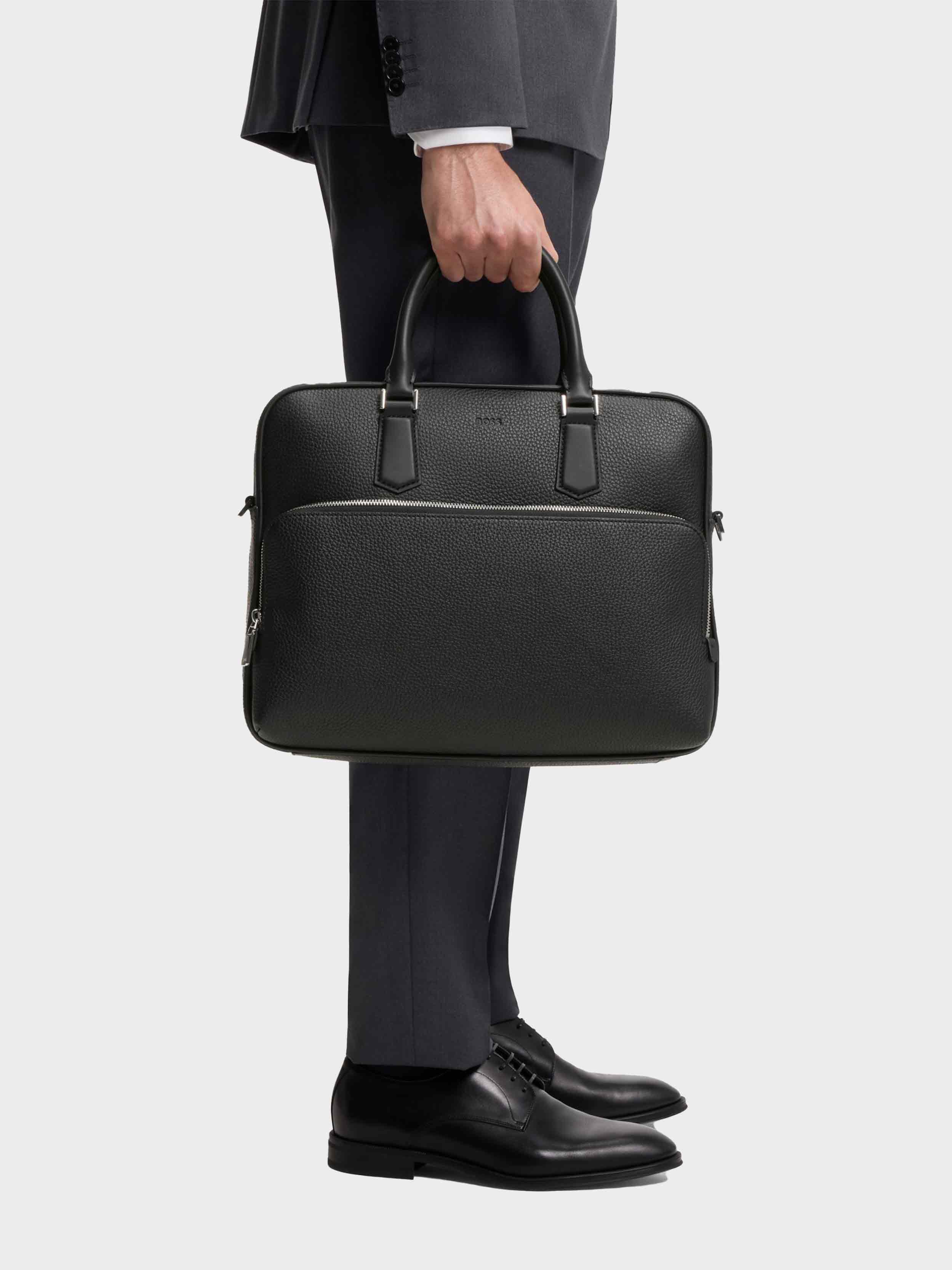 BOSS - Men's Grained-Leather Document Case With Embossed Logo