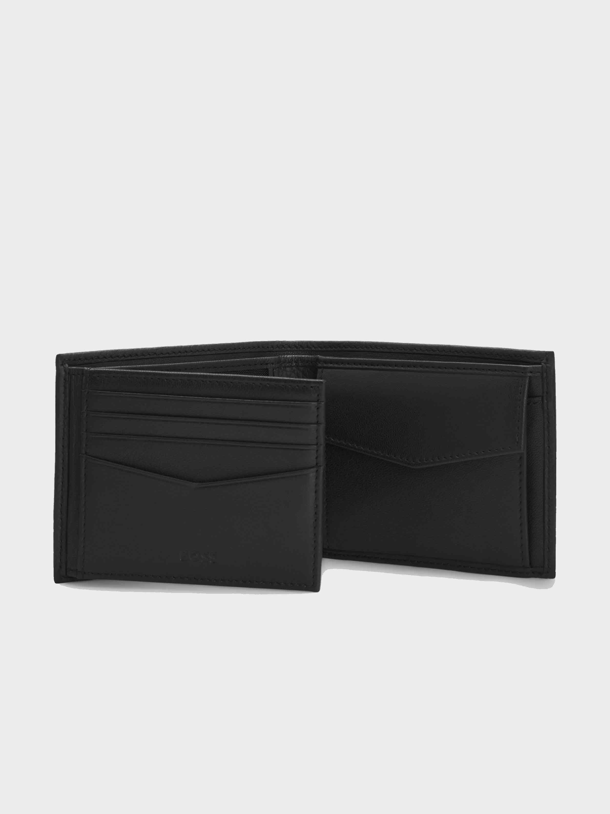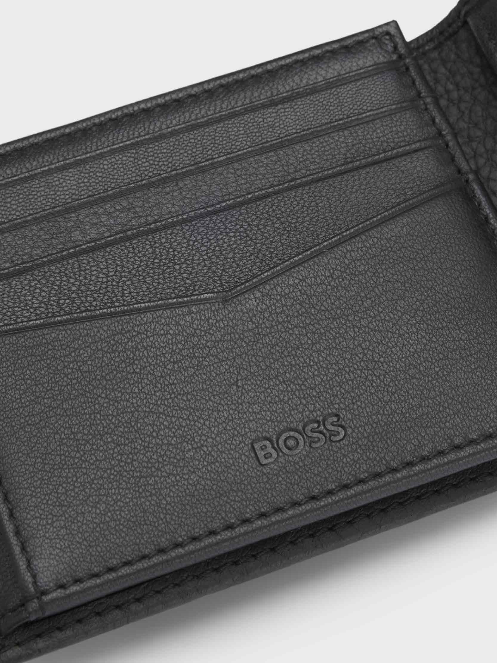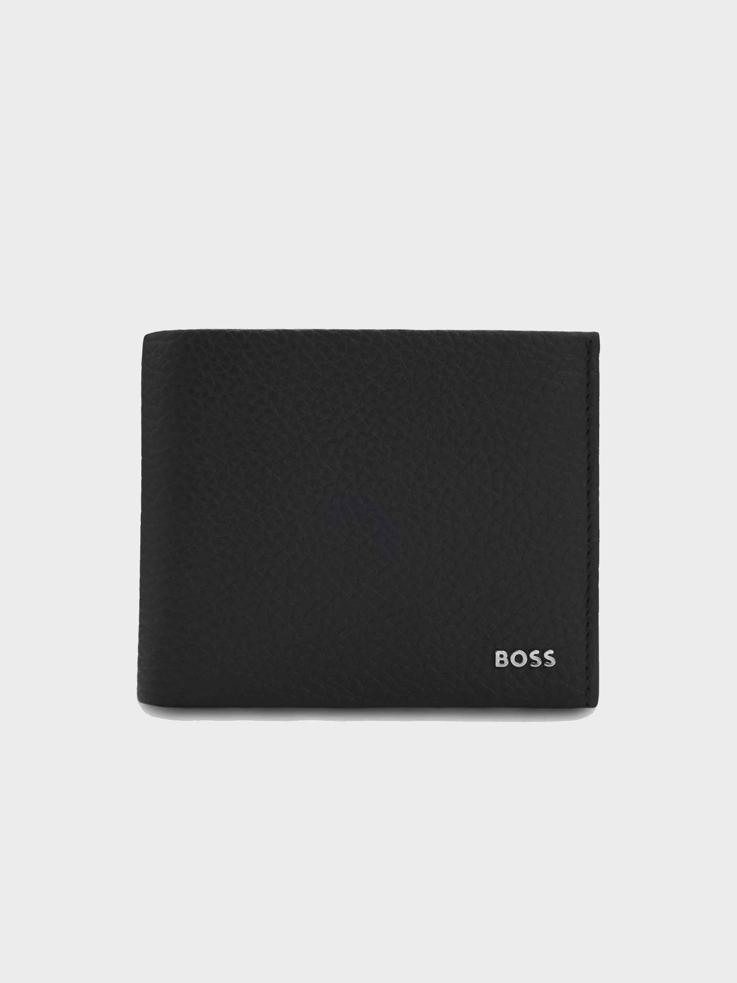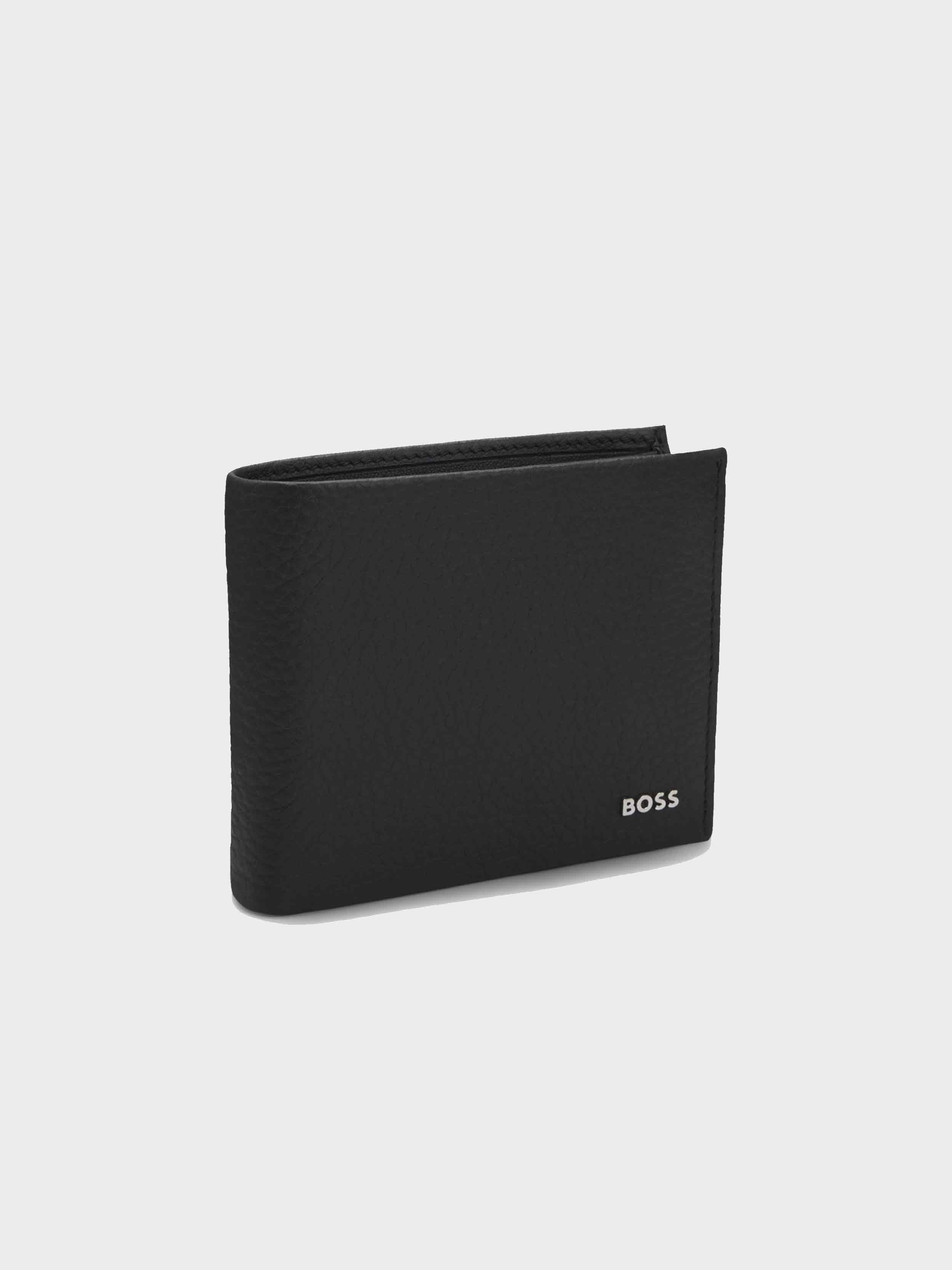BOSS - Men's Trifold Wallet In Grained Leather With Metallic Logo Lettering
