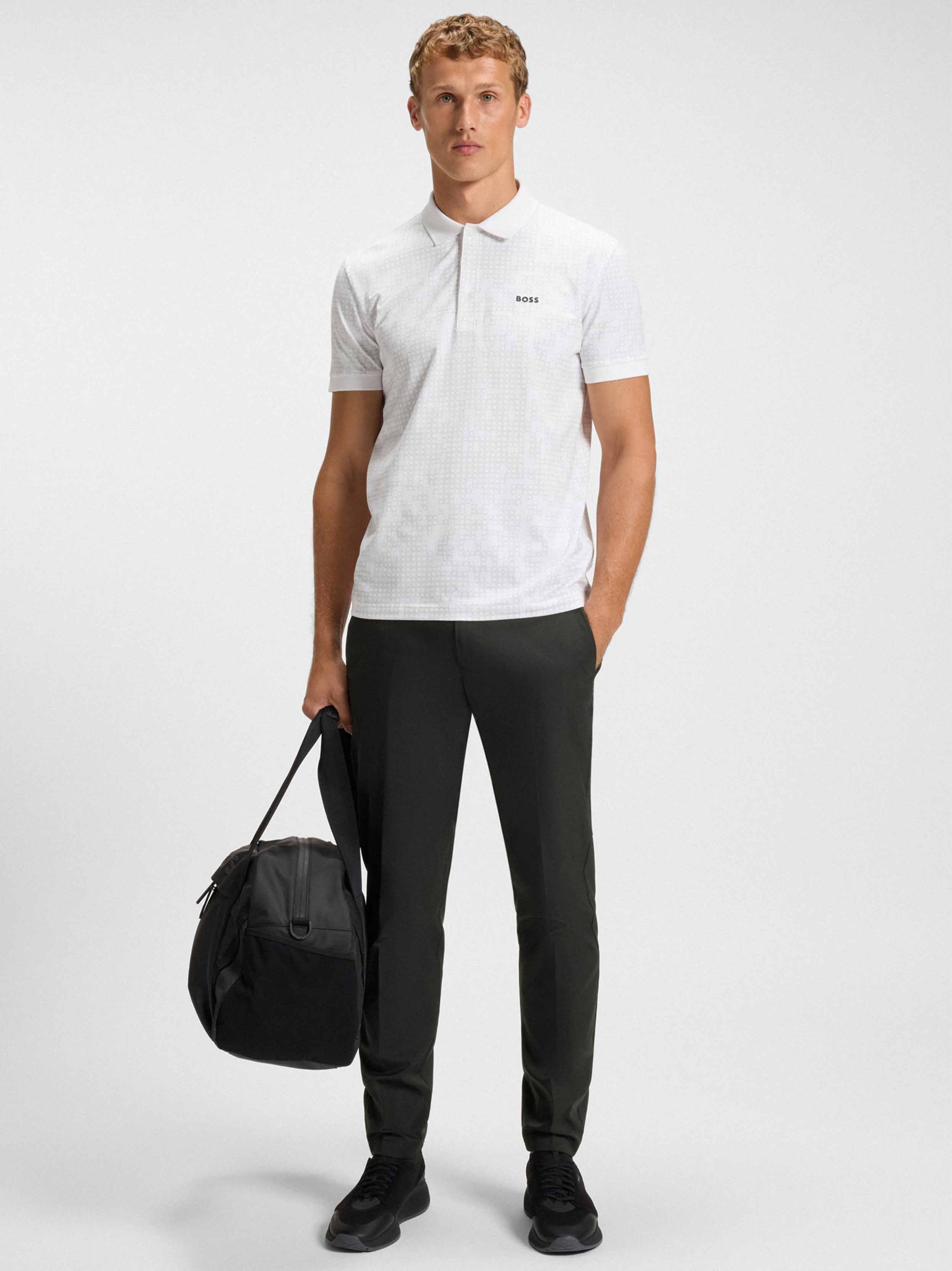 • THE PHOENIX PRO / designed for Golfers On Off course / Sports Twill with technical 4-way stretch for highest freedom of movement / quick dry, water repelling easy ironing properties for easy manageability in the daily use and on course / body conscious engineering for maximum comfort / higher waistband construction for more protection while moving actively during the game / half-elasticated waistband with beltloops and invisible comfort drawstrings on the inside for individual adherence / classic backpockets with silicon tape on inside for quick and safe storage of your golf gloves / integrated cardholder within front pocket lining for a wallet free game / rubberized BOSS logo print on backpocket / invisible zipper pocket on side seam as additional secure storage option / 1/2 hem width: 18 cm
