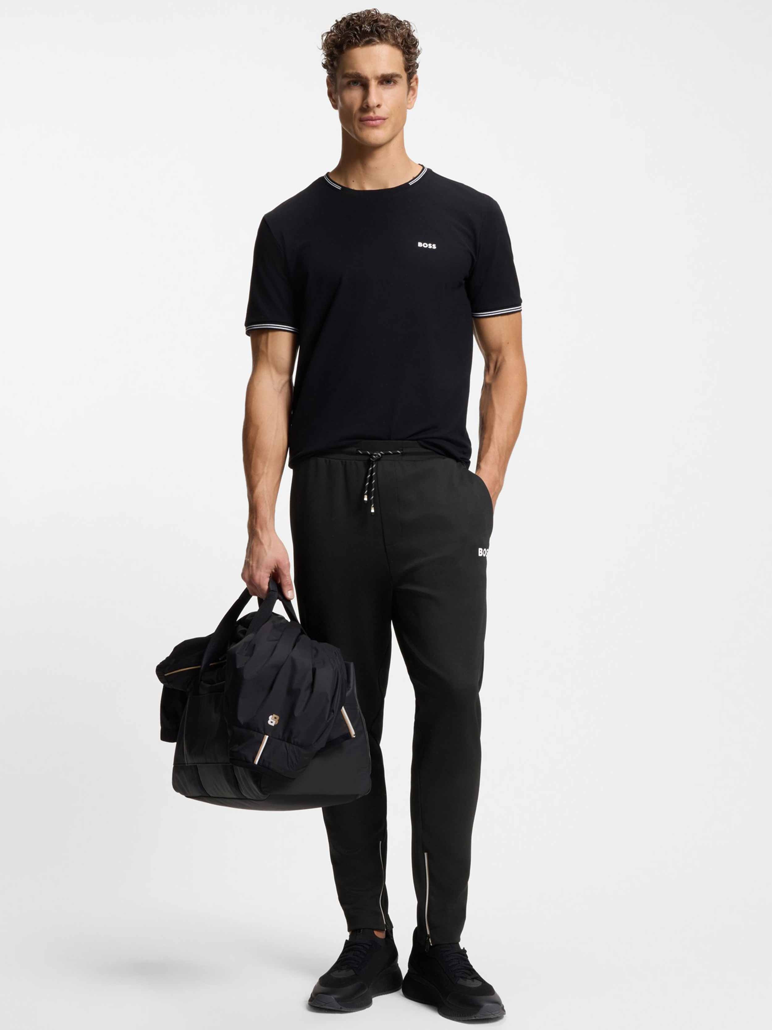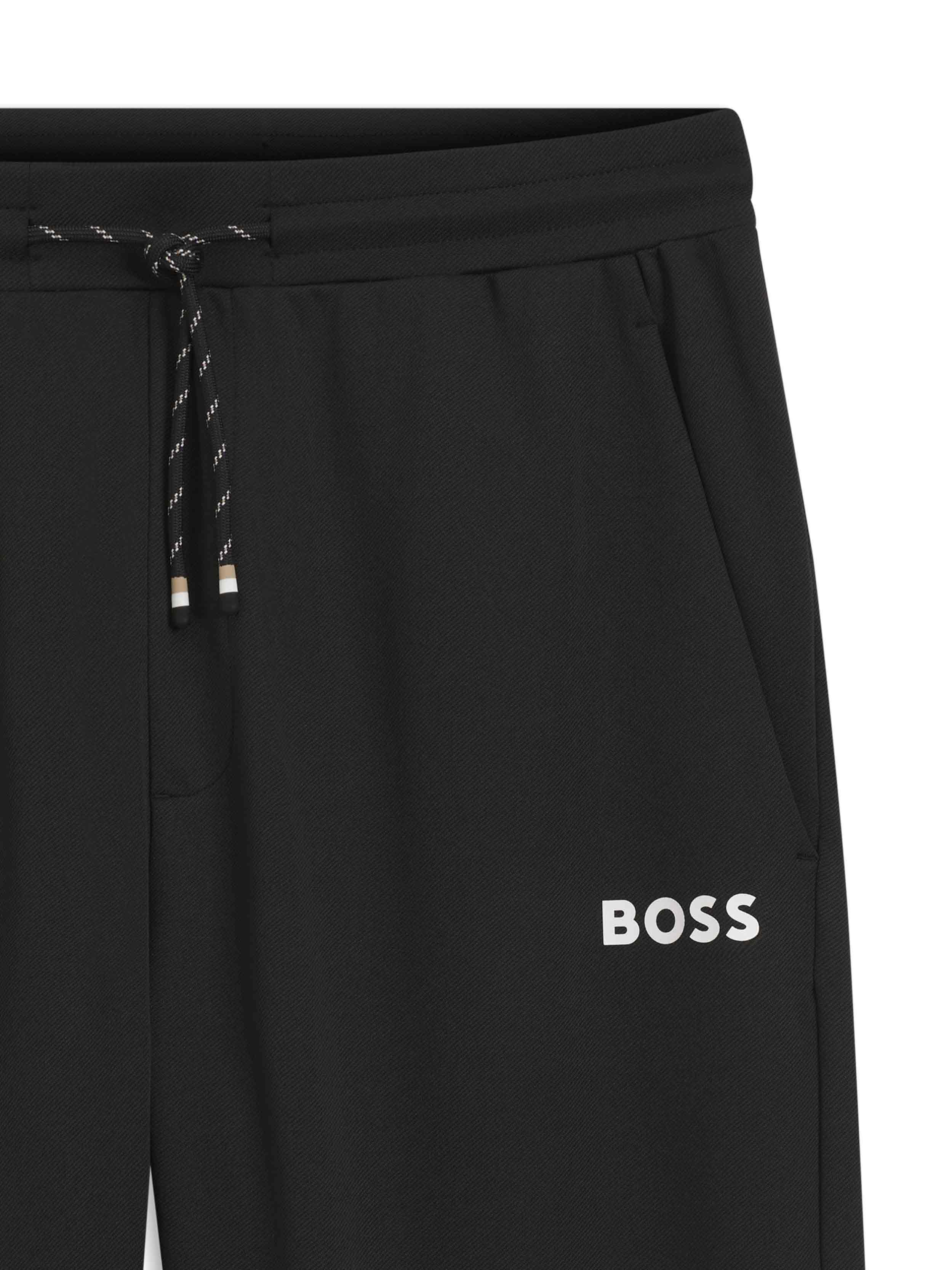 • - This product is created w. recycled polyester made from pre and post-consumer Textile Waste. The aim of using recycled materials is to save valuable resources - Durable Gabardine w. a luxurious hand feel - Smart Temp thermoregulating technology is activated by rising body temperatures, deactivates once cooled - The stretch attribute keeps you flexible and comfortable - Moisture management capability, that keeps you dry by wicking away moisture - Quick dry property, that provides you with immediate comfort and convenience - Iconic BOSS code incorporated within the design language - Enlarged BOSS branding for active statement - Hem zips for an adjustable fit and effortless accessibility - Iconic BB branding incorporated within the design language - Open back pocket for storage - Drawcord adjustability for the perfect fit