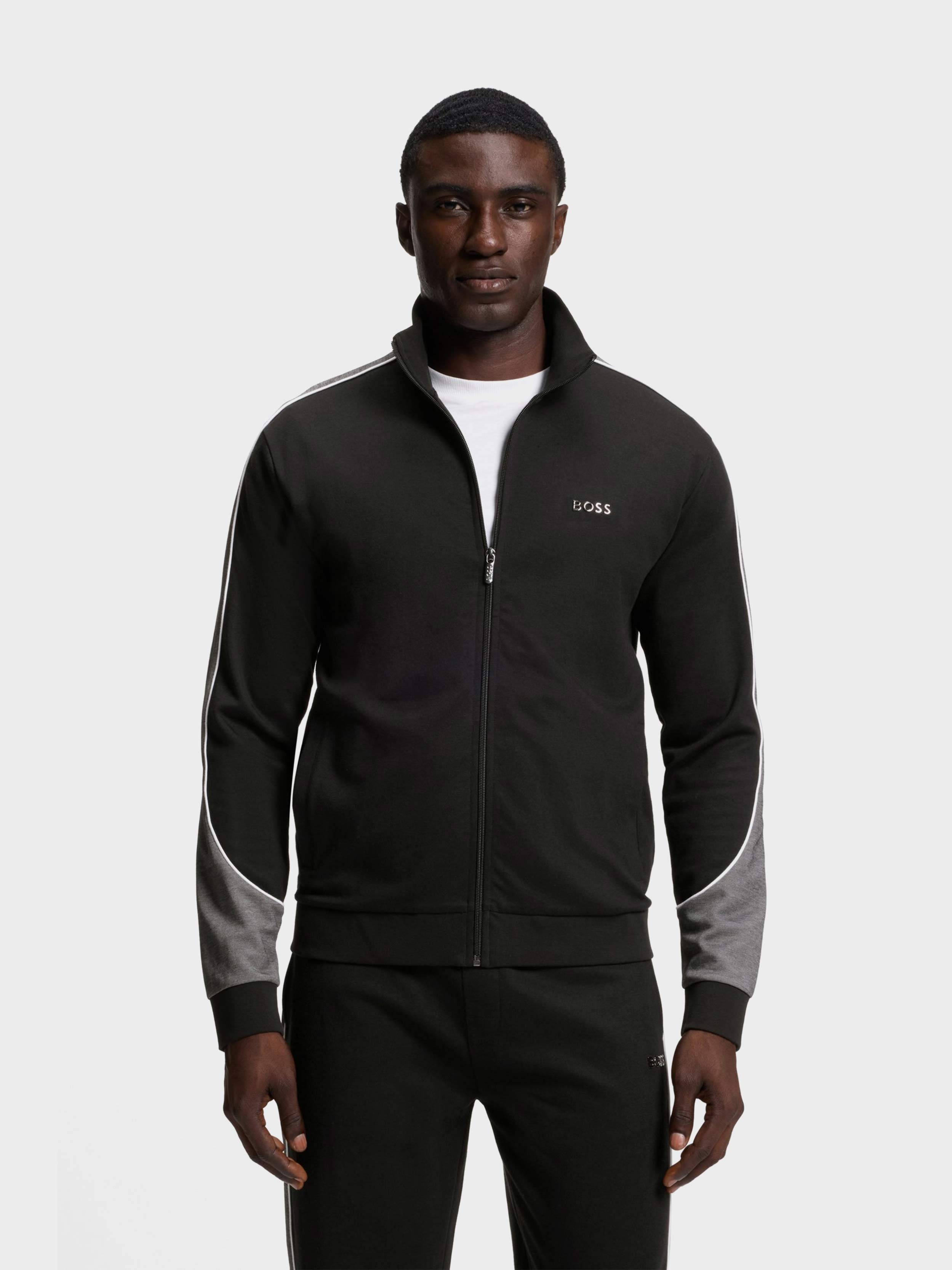 • BOSS - Men's Contrast-Detail Loungwear Zip-Up Jacket In A Cotton Blend