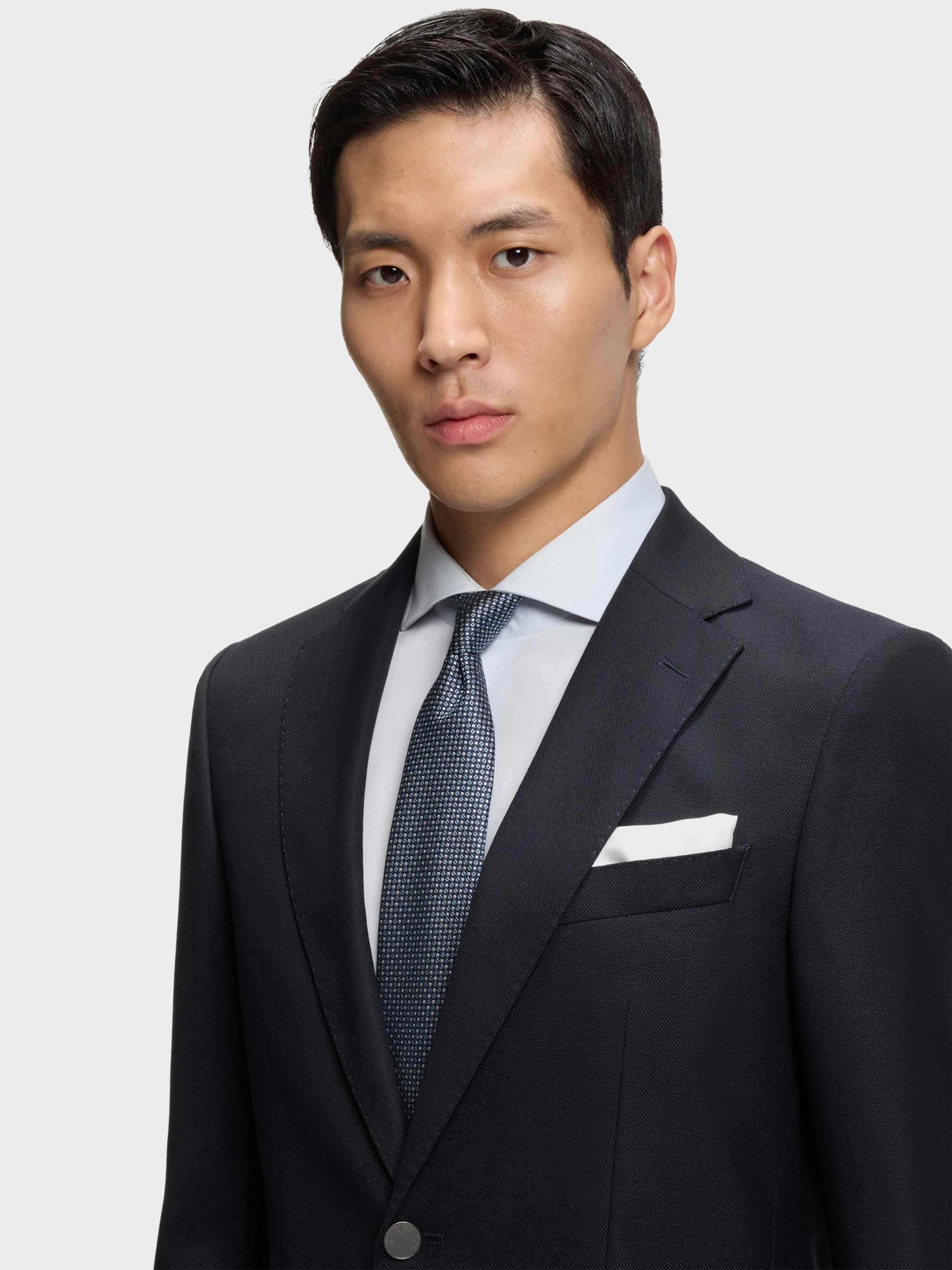 • BOSS BLACK HERITAGE - Our sophisticated all time classics: Explore highest quality fabrics and perfectly tailored timeless fits - MINI MONOGRAM - Embossed elegance with subtle textures, defining BOSS sophistication. -RESPONSIBLE - Responsibly sourced fabrics. - SLIM FIT FIT BLAZER - HERITAGE SLIM-FIT BLAZER WITH NOTCH LAPELS, SHOULDER CONSTRUCTION, TWO PATCH-POCKETS, FULLY LINED - Wool blend