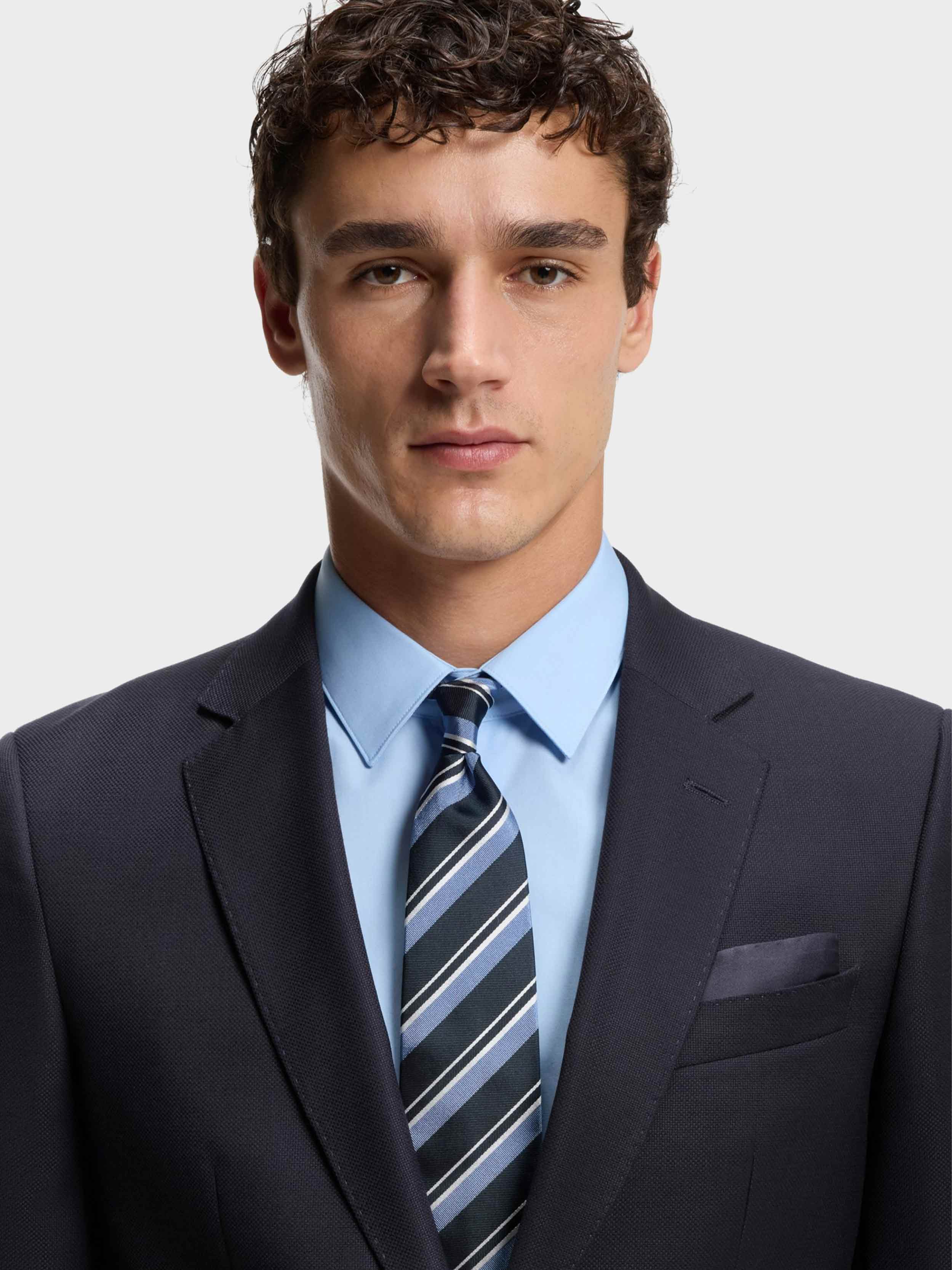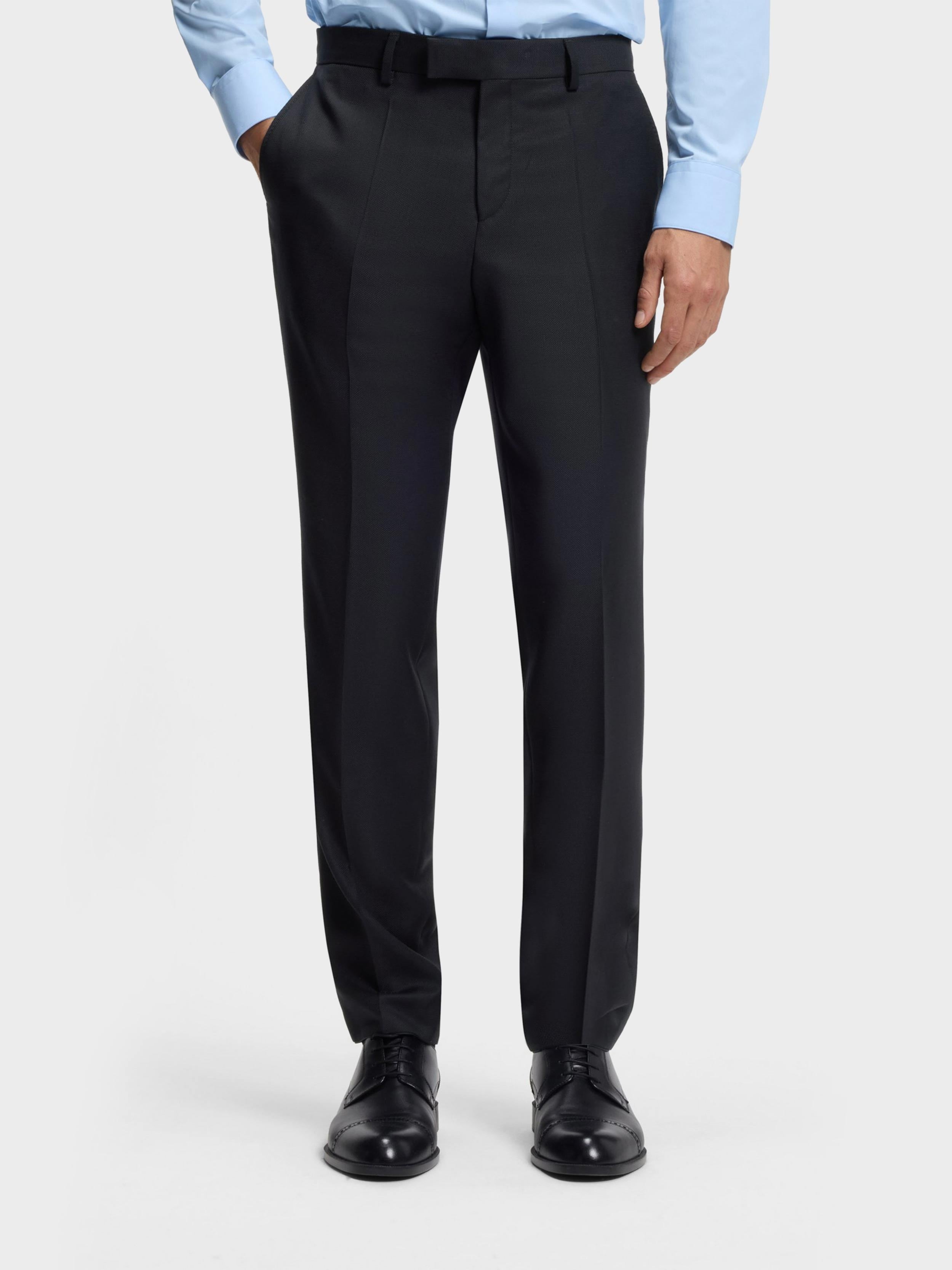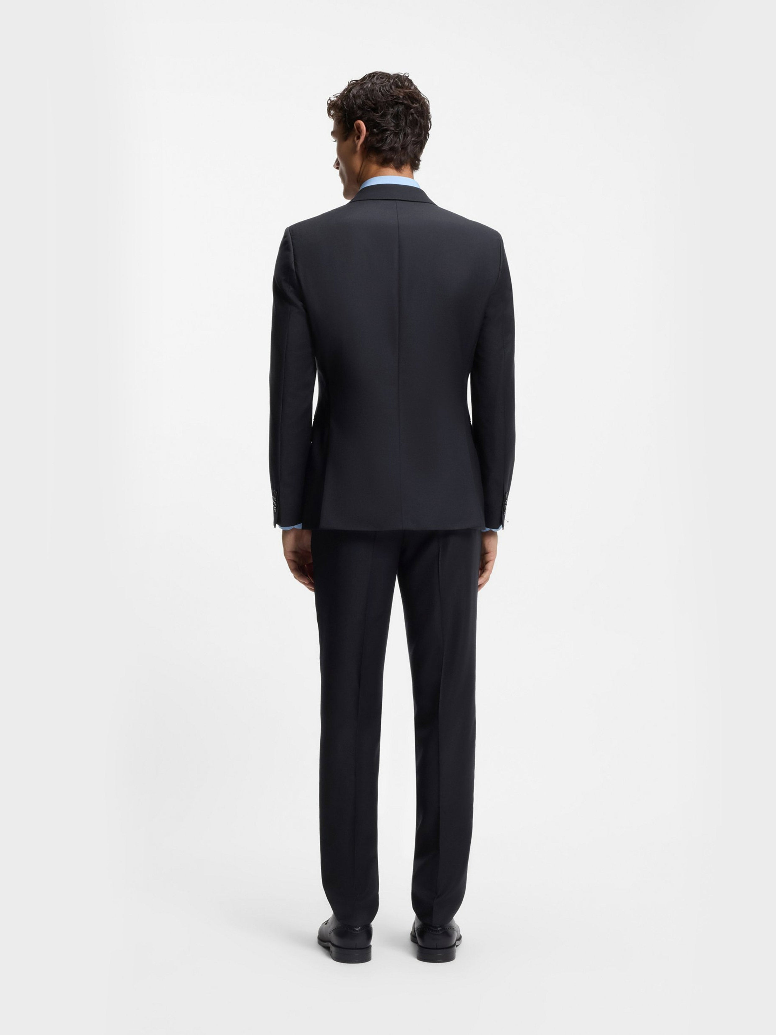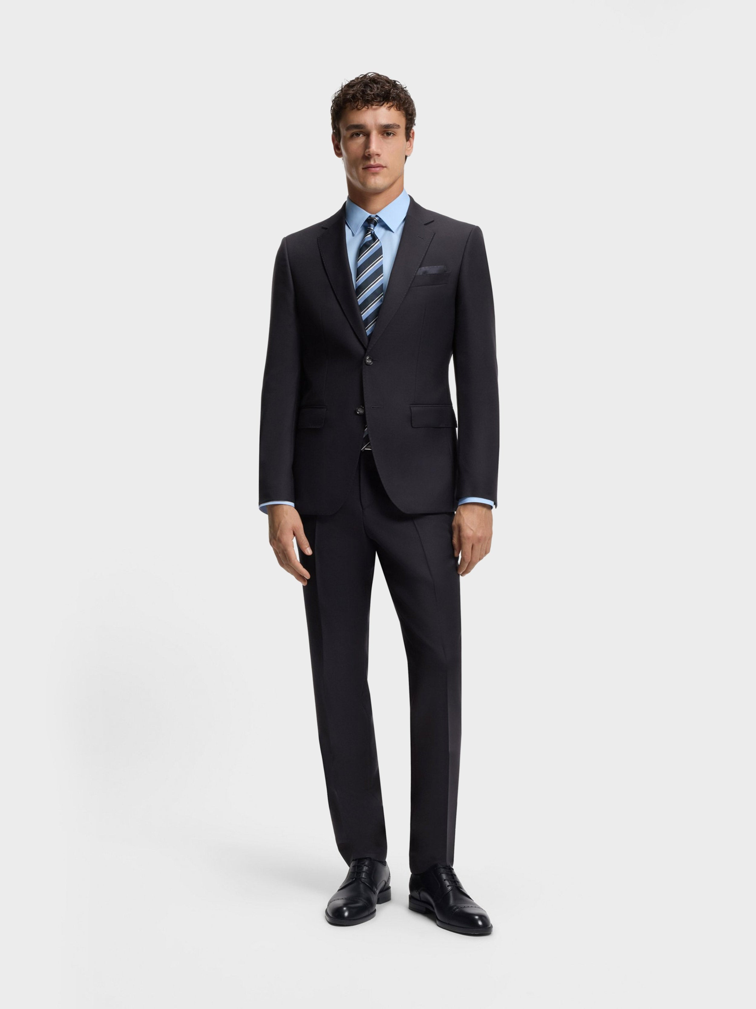 • BOSS BLACK HERITAGE - Our sophisticated all time classics: Explore highest quality fabrics and perfectly tailored timeless fits - BOSS ONE - Discover the Pinnacle of sophistication with each piece. A testament to timeless elegence and precision. Dress like a Boss to pursue your vision with confidence. -RESPONSIBLE - Responsibly sourced fabrics. - SLIM FIT SUIT - HERITAGE SLIM-FIT 2-PIECE SUIT WITH CONSTRUCTED SHOULDERS, NOTCH LAPEL, FLAP POCKETS, FULLY LINED, SIDE VENTS, AMF STITCHING, KISSING CUFF BUTTONS. - Pure Wool