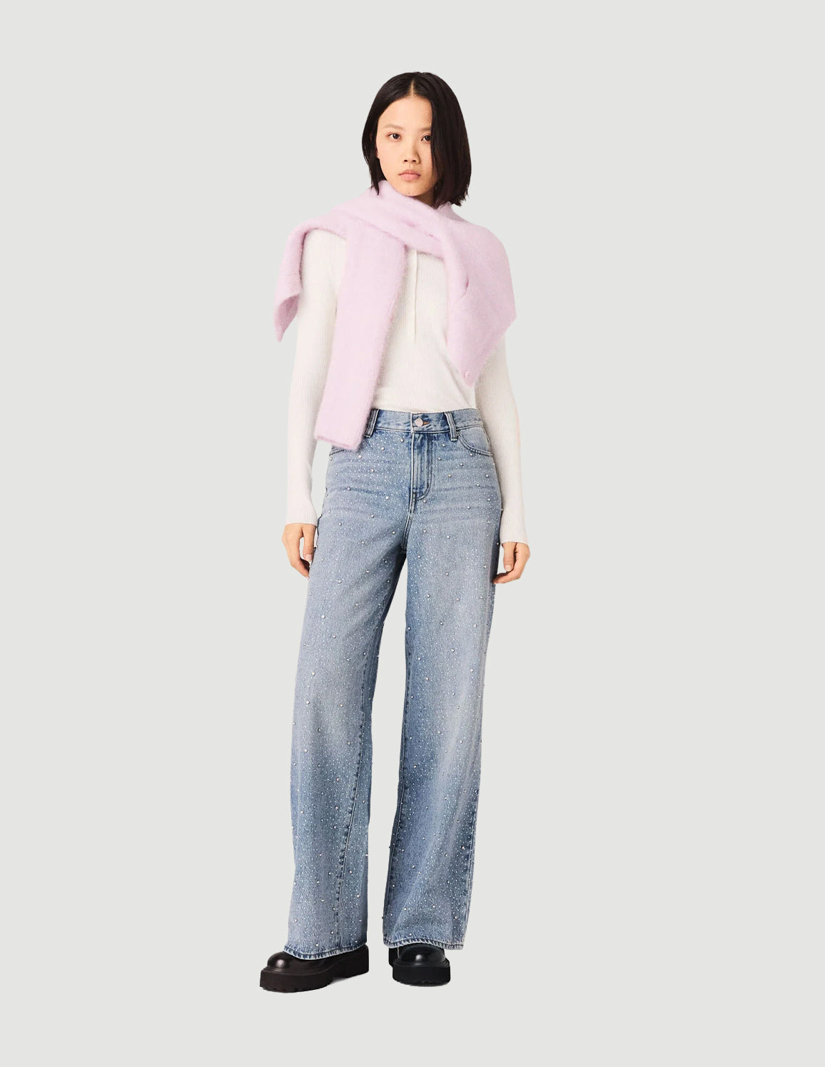 Maje - Women's Wide-Leg All Over Rhinestone Jeans