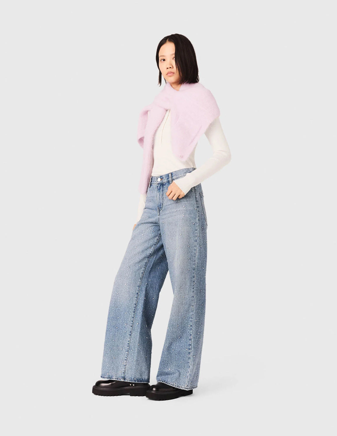 • Wide-leg, high-waisted fit