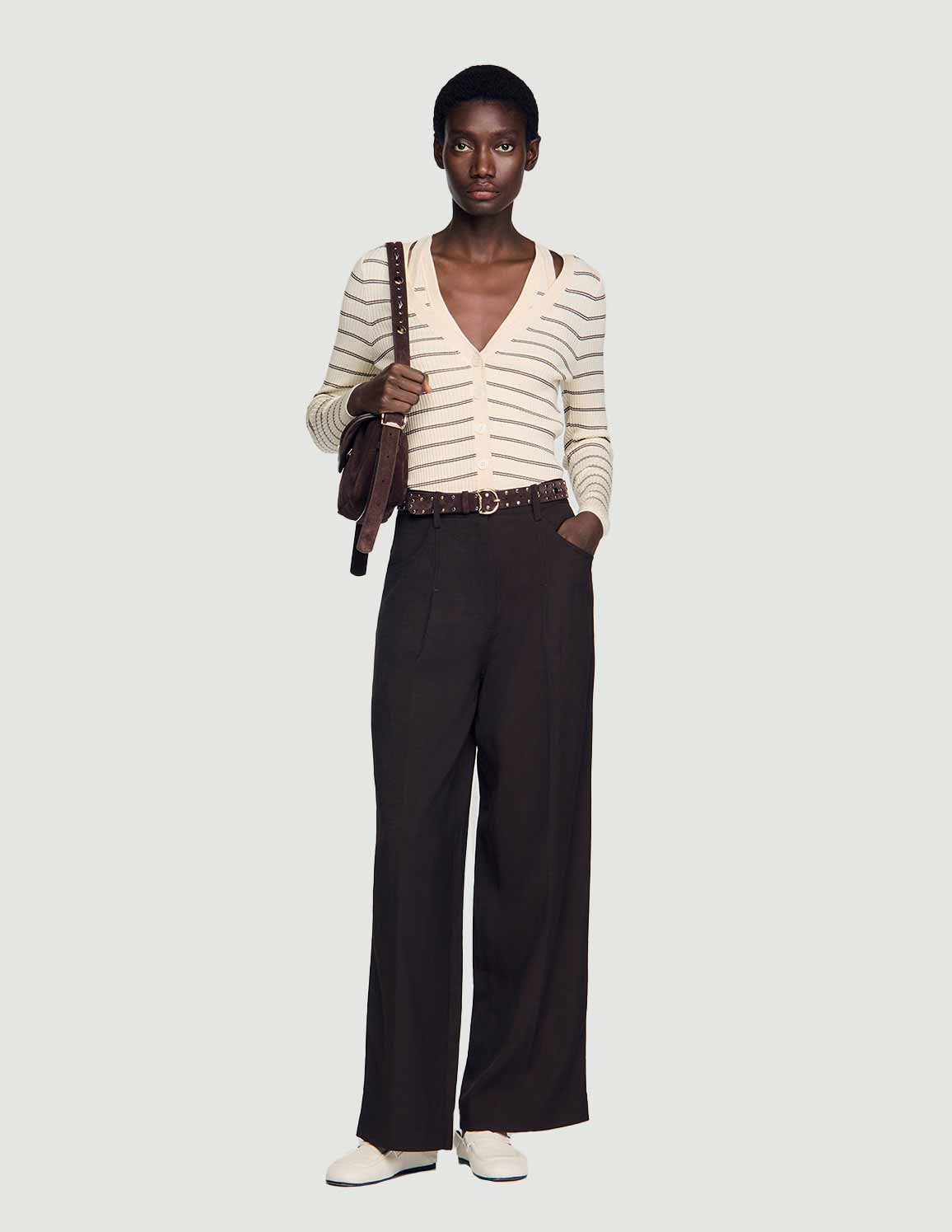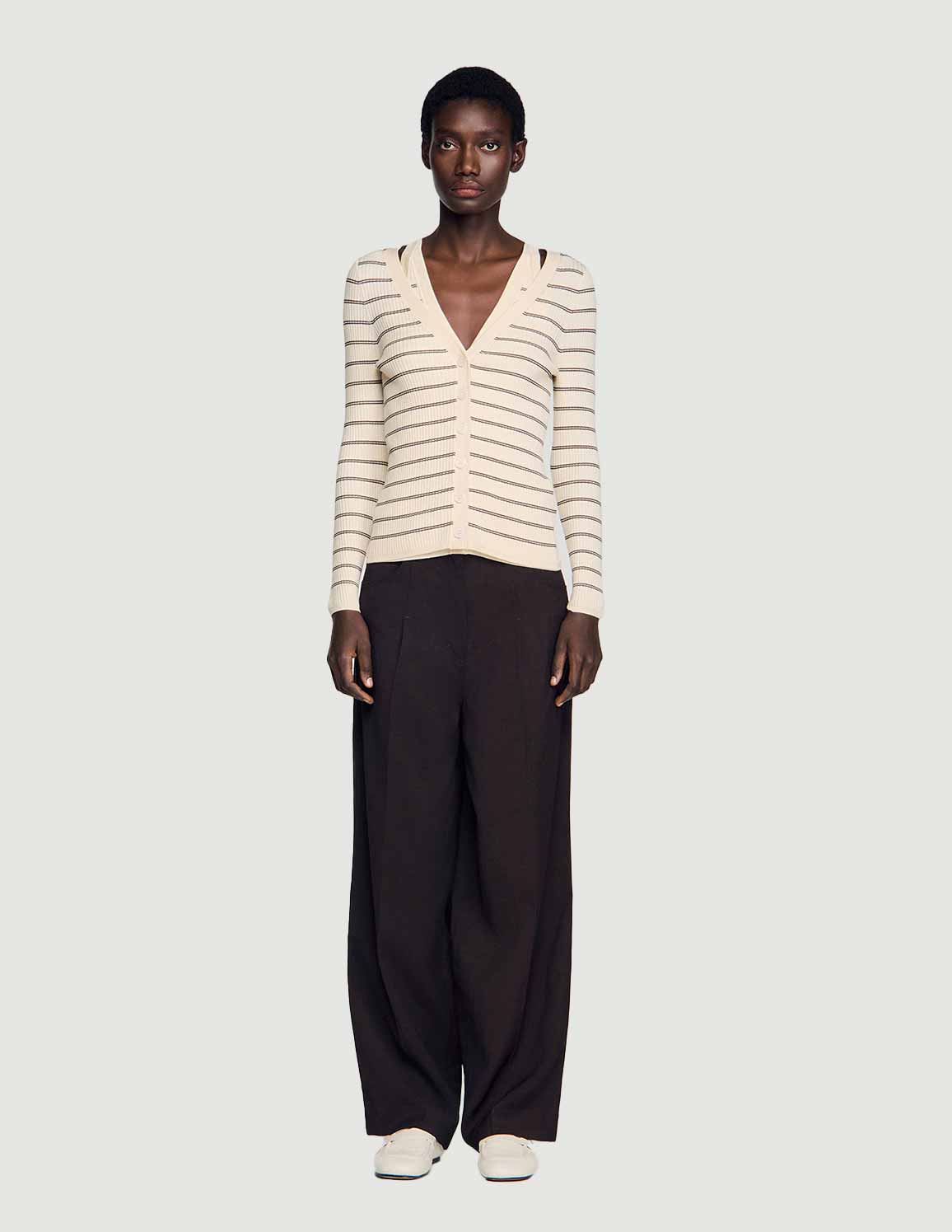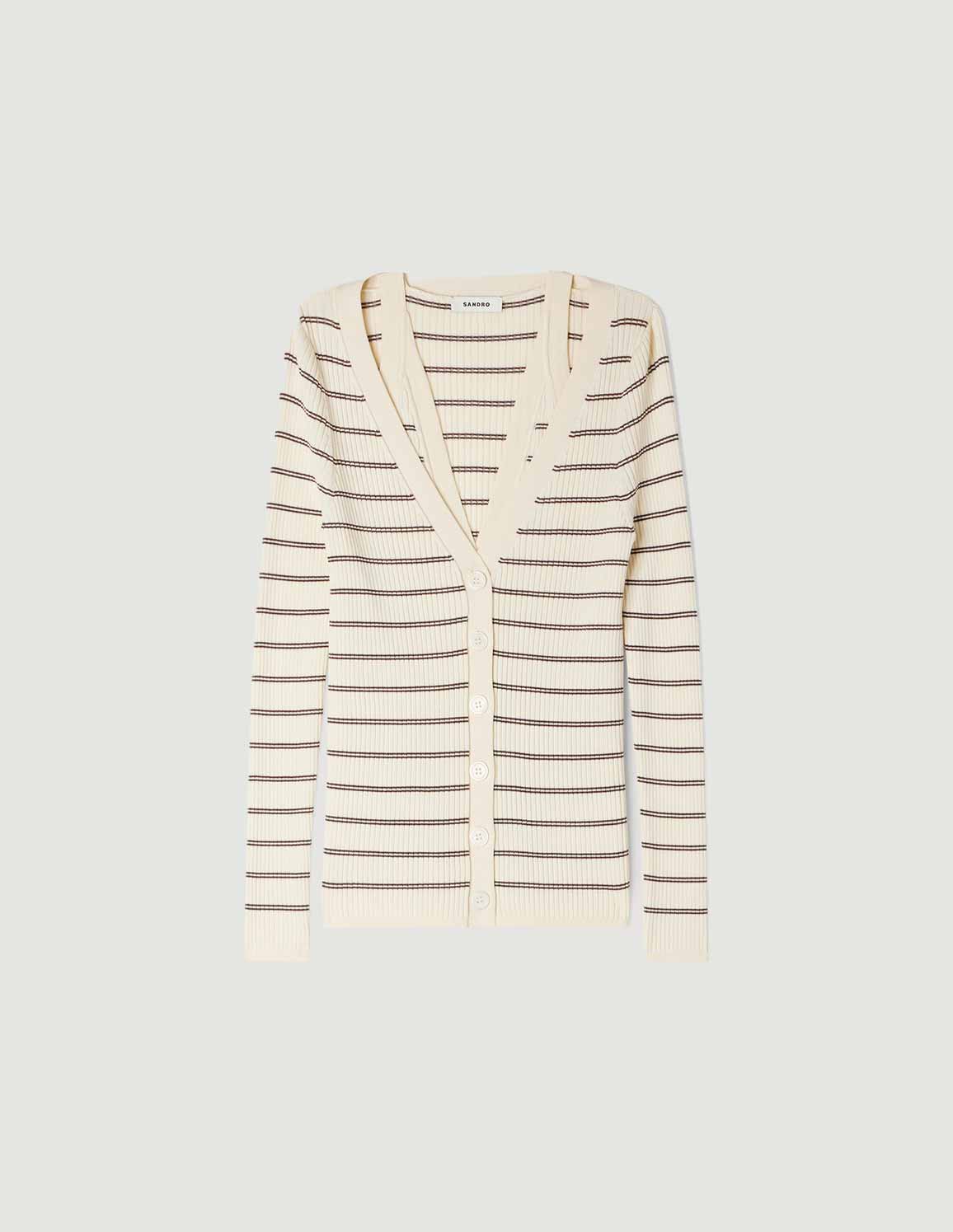 • Striped and ribbed cardigan with a V-neck, long sleeves, button fastening and an illusion tank top.