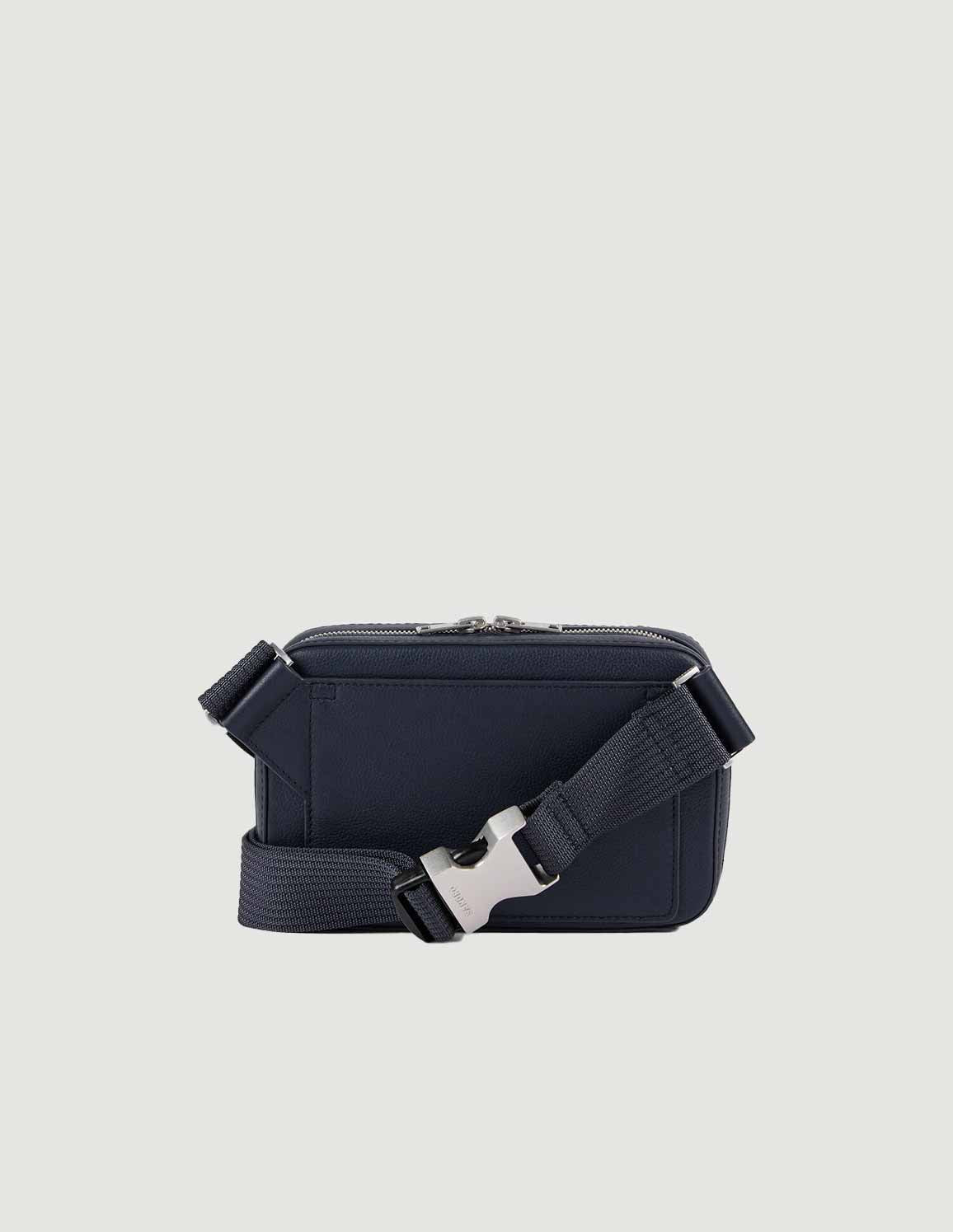 • Sandro Men's small grained leather bag with a long adjustable technical webbing strap with a metal buckle and a front zip fastening.