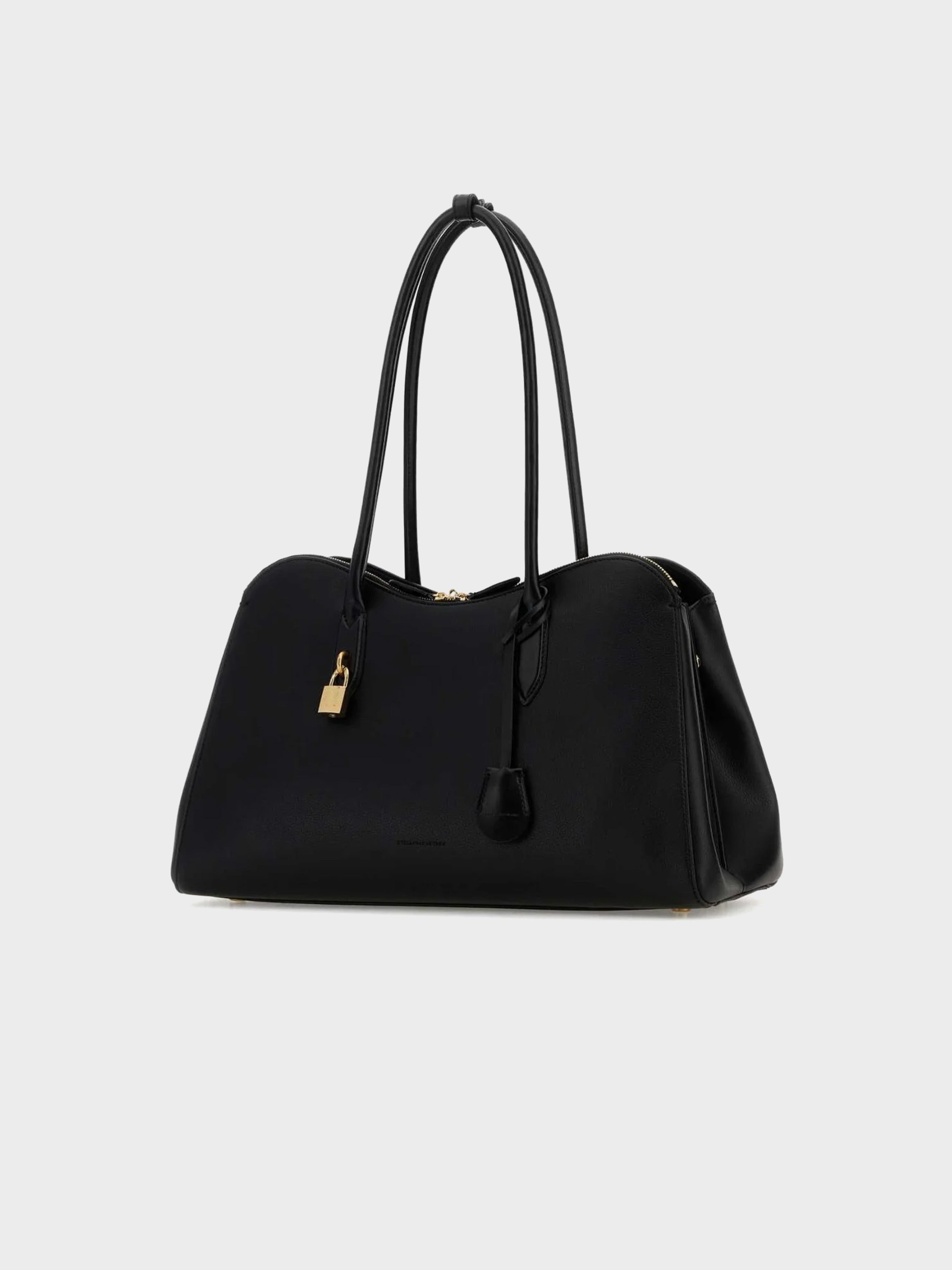 • Reimagined for Winter 2025 as a tote bag, the Stella McCartney Ryder is handcrafted by artisans in Italy from cruelty-free alternatives to animal leather using recycled and grape-based innovations. The sculptural silhouette honors the strength, beauty and power of Stella’s favorite animal – the horse. The vegan bag features a logo-engraved padlock and a generous, zipper-fastened accordion compartment that fits most laptops alongside phones and other daily essentials.