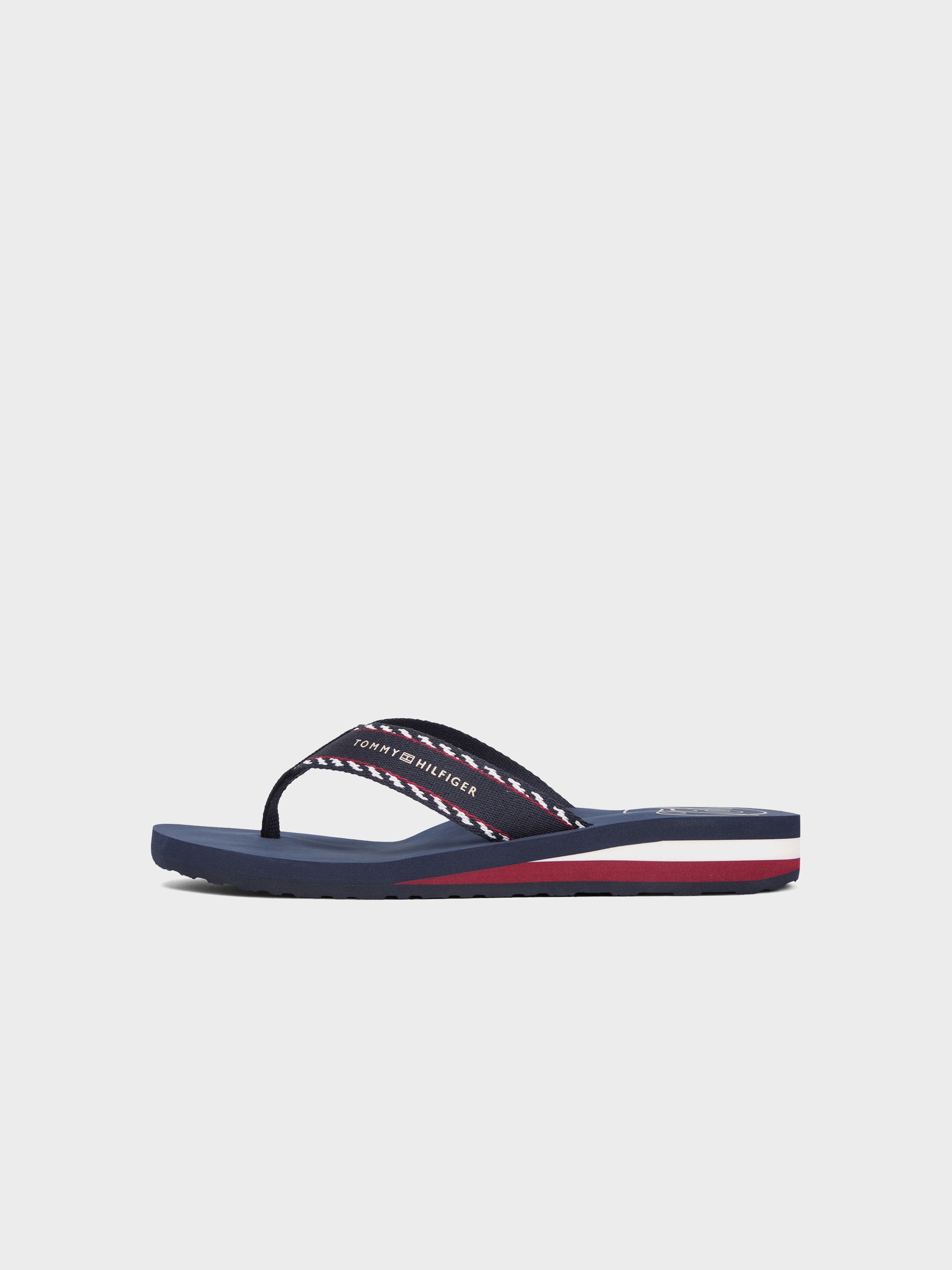 • Tommy Hilfiger - Women's Jacquard Webbing Strap Wedge Flip-Flops