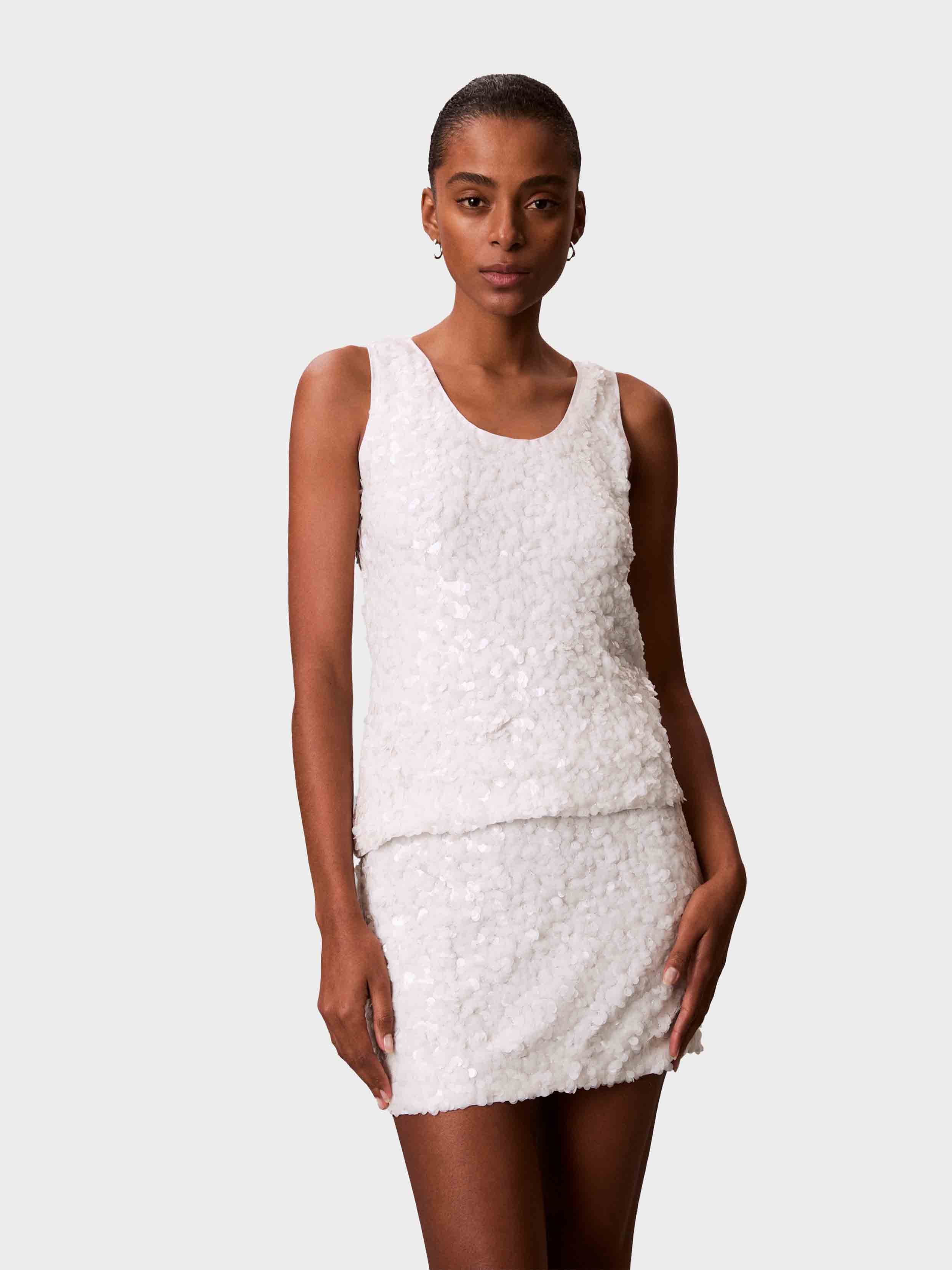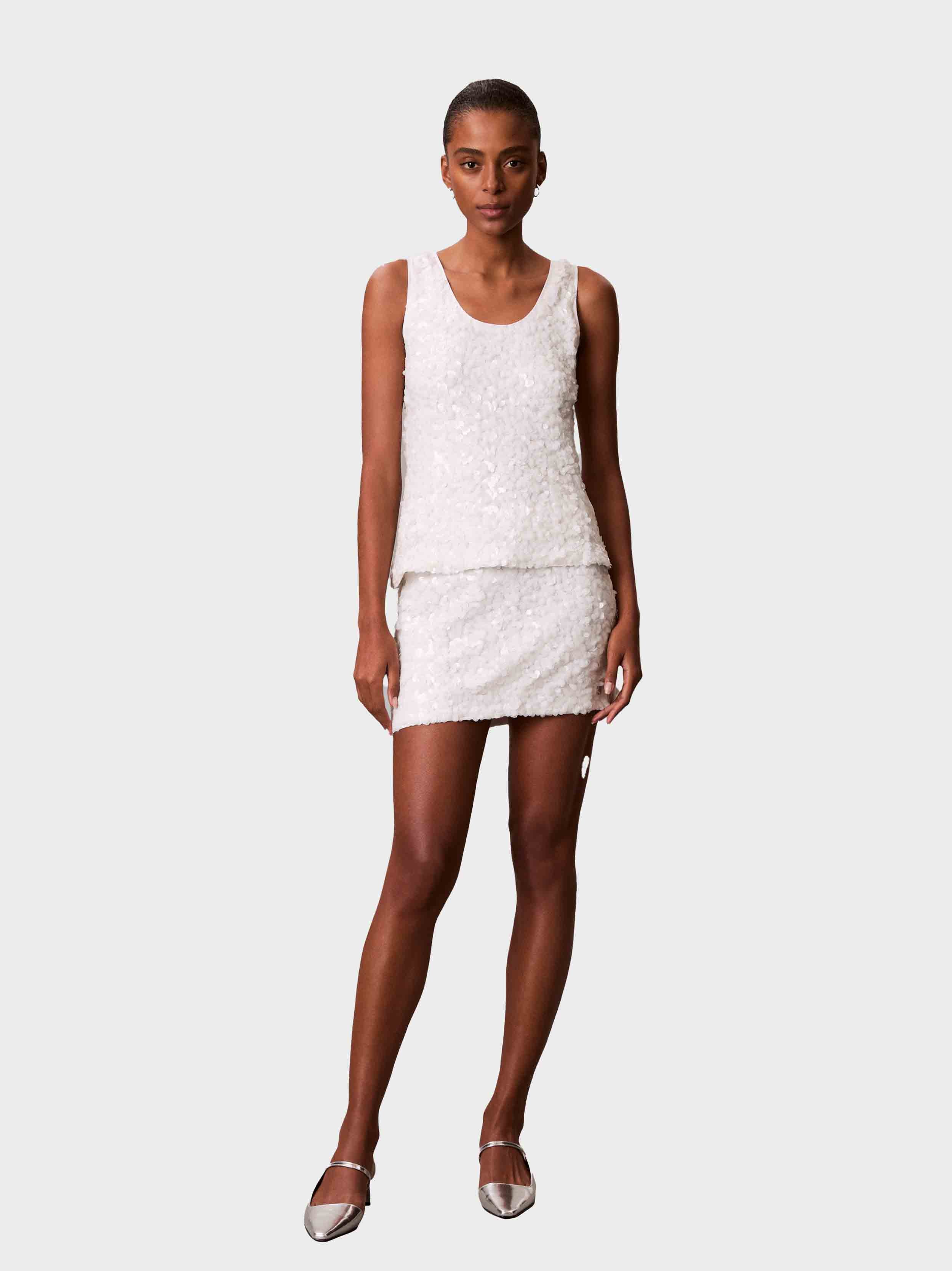 Calvin Klein - Sequin Mini Skirt , 10 , White Greige / As header , Style LV047E601G