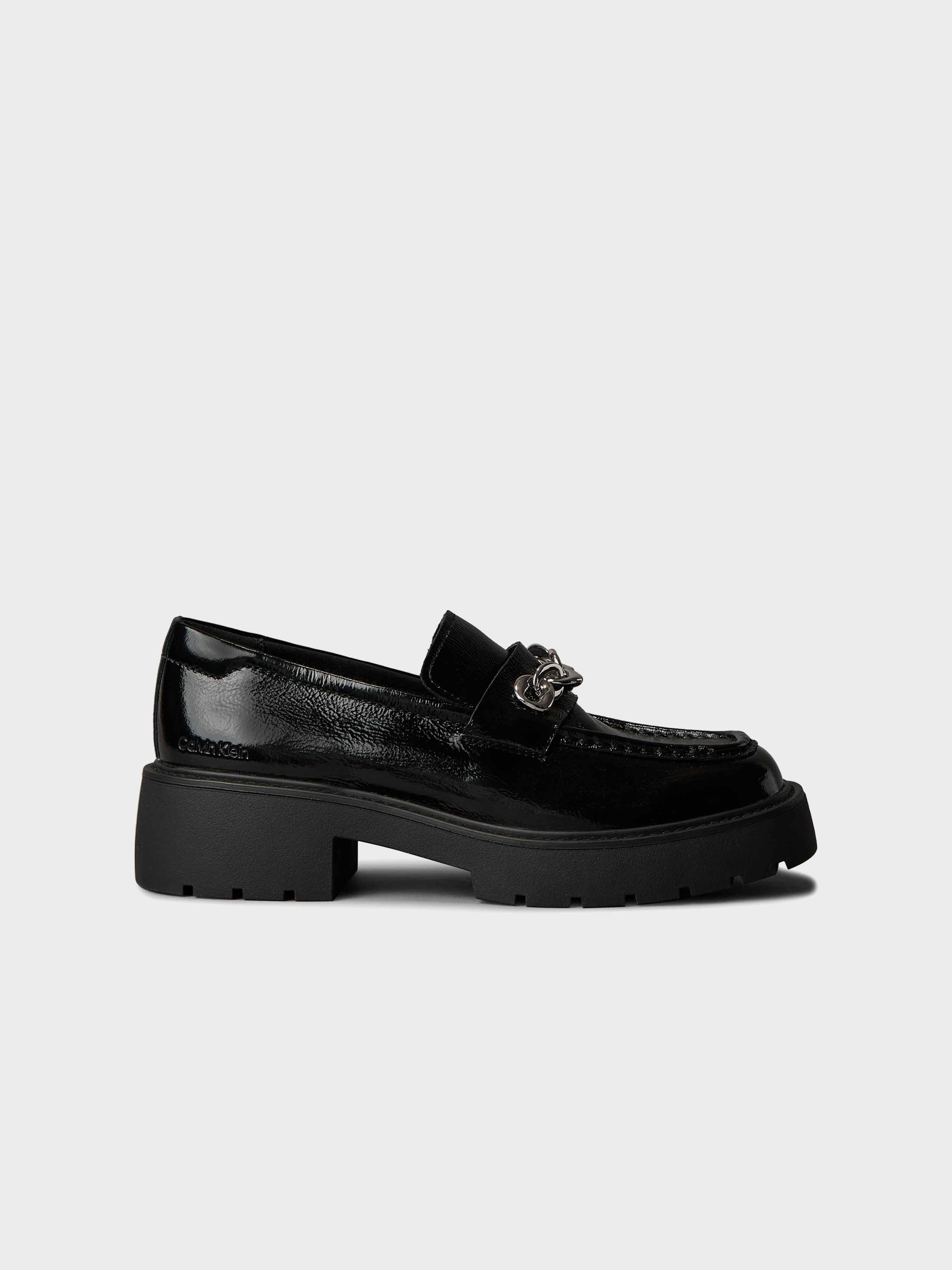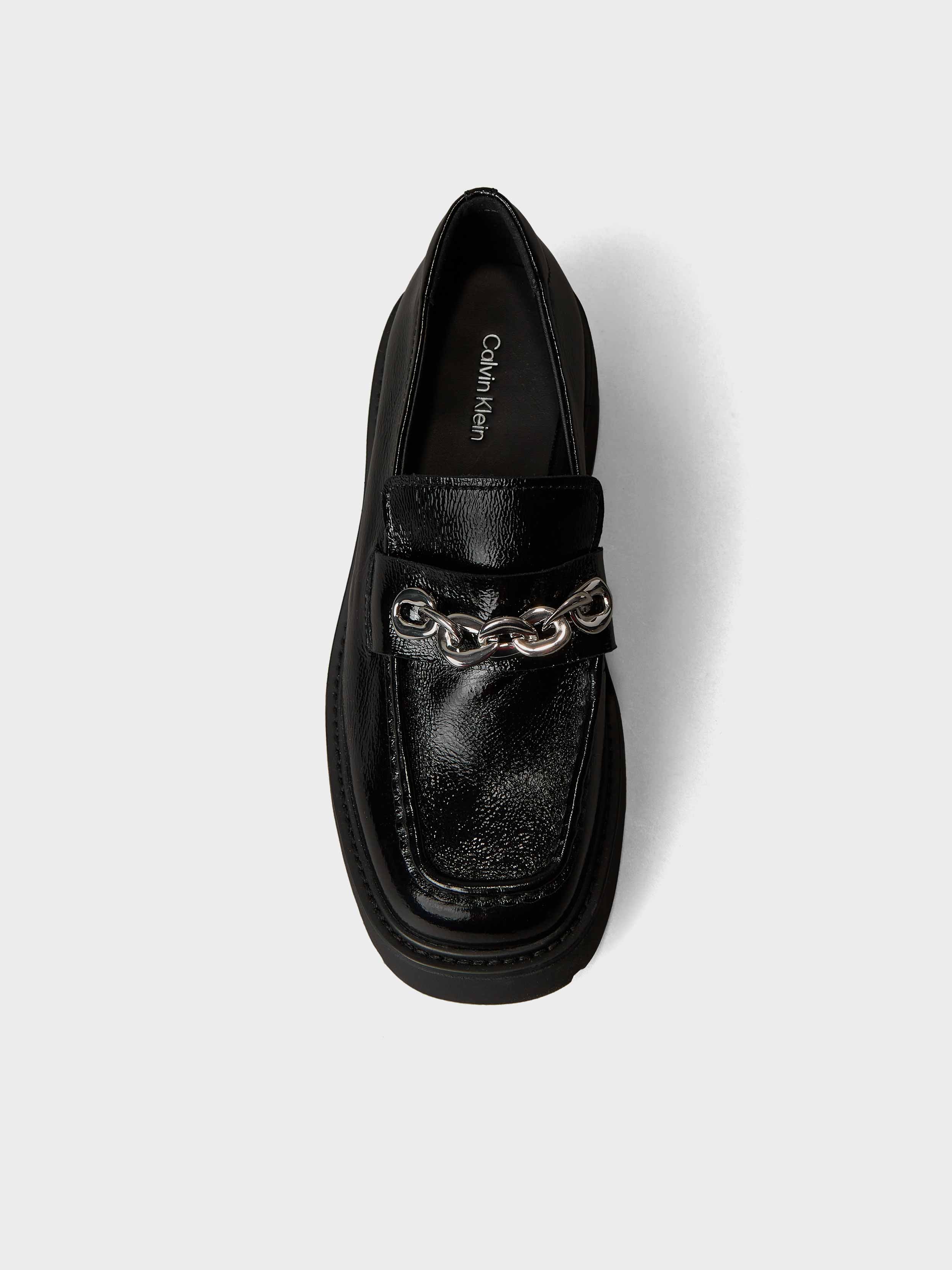 • Calvin Klein loafers. Made of patent leather.