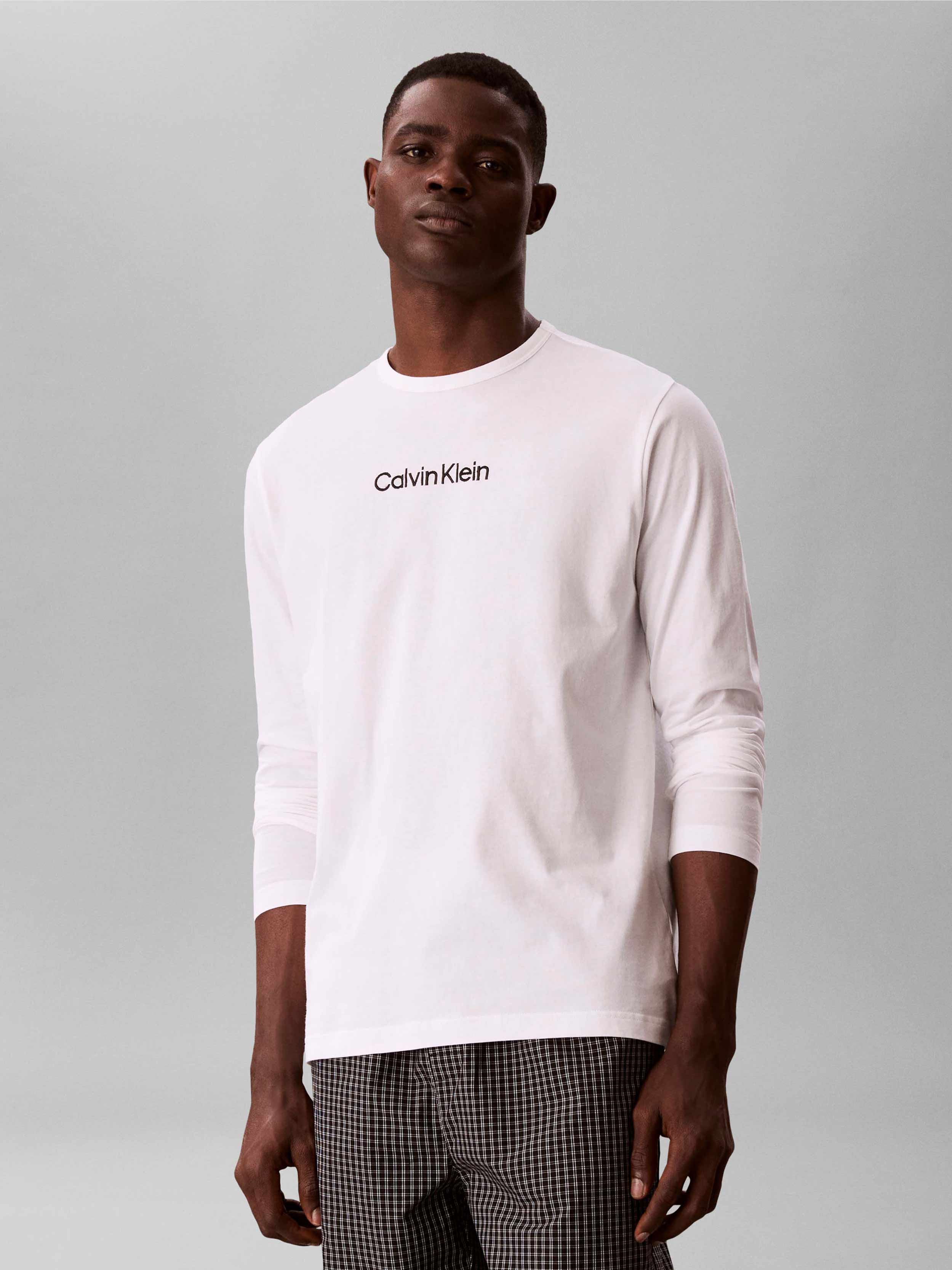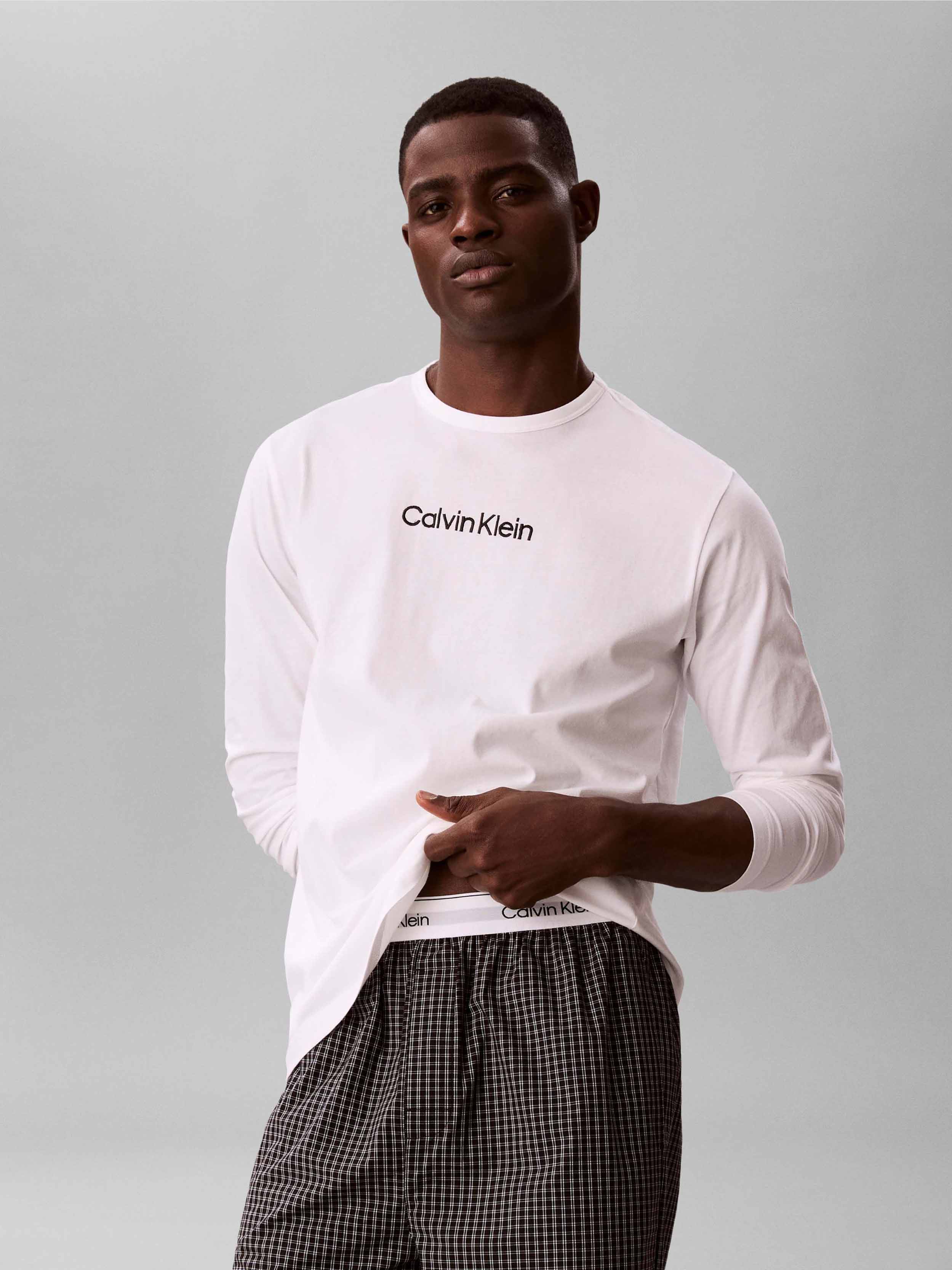 • Pajamas from the Calvin Klein Underwear collection. Made from a combination of smooth and patterned fabric, these pajamas are made of exceptionally comfortable cotton.