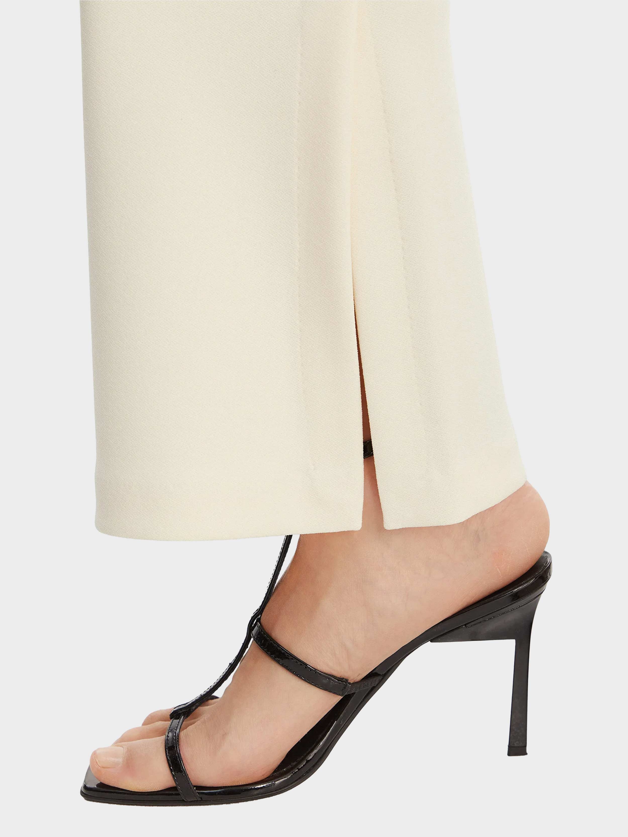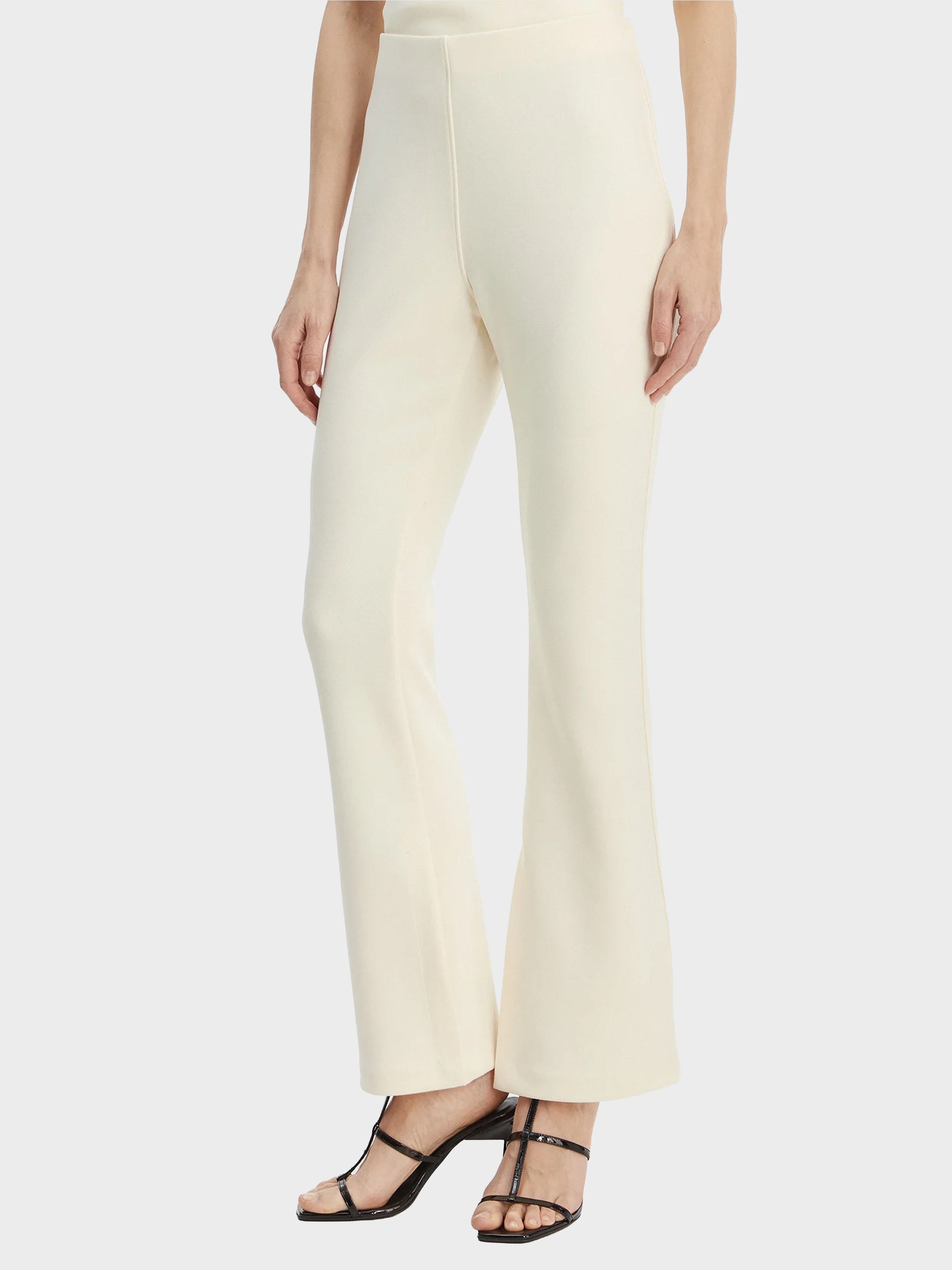 • Made from a smooth fabric with a touch of elastane, they offer comfort and a gentle stretch that flatters the feminine silhouette. The flared legs add style and subtle dynamism, making a striking statement with any outfit. The practical zip fastening ensures convenience and a perfect fit. This versatile choice can be easily paired with your favorite shoes and accessories.