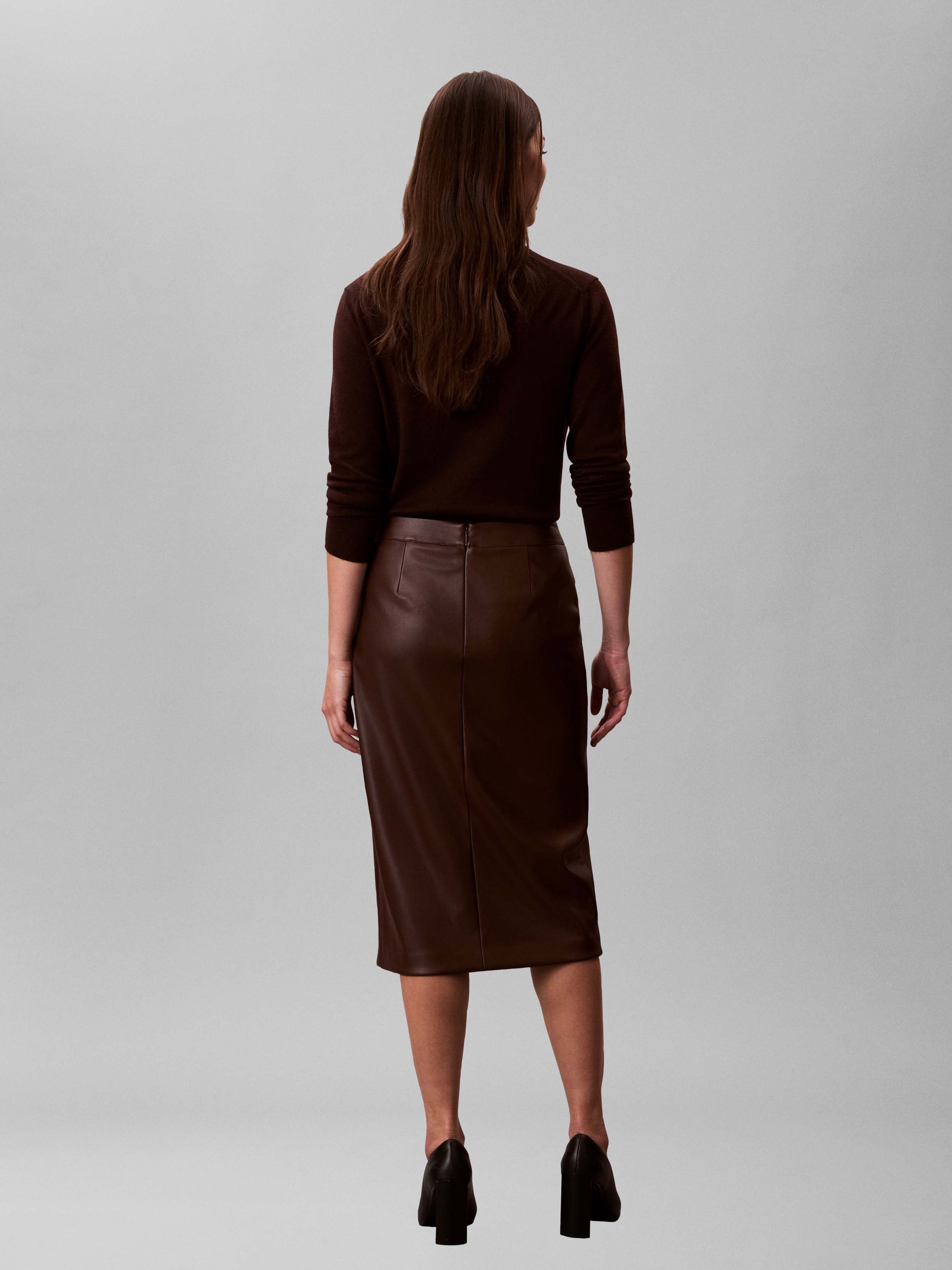 Calvin Klein - Faux Leather Midi Skirt , 4 , Rich Brown , Style LV047E603G