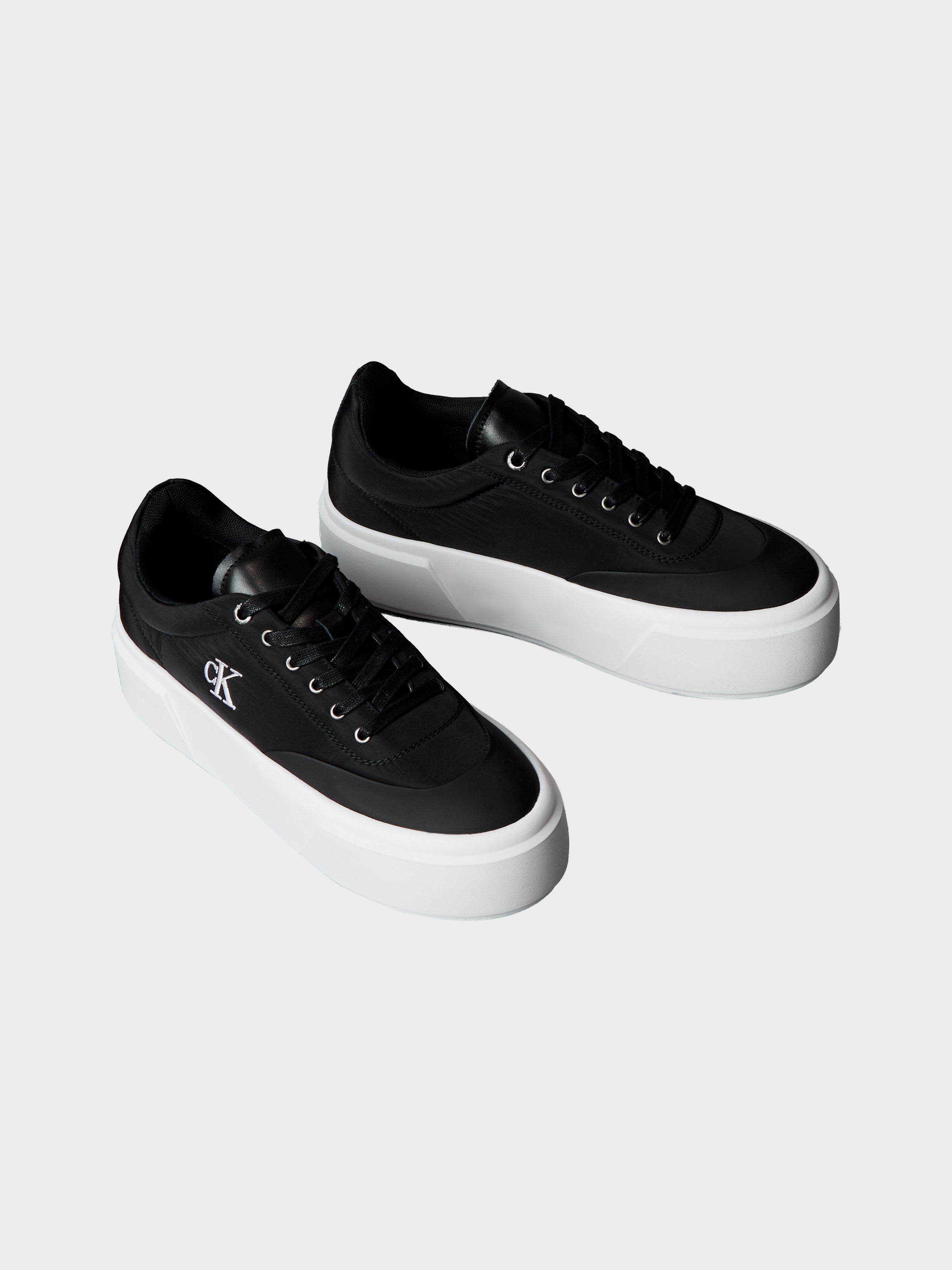• Crafted in Europe from durable nylon and rich leather, these platform trainers balance elevated style with everyday comfort. Set on an ultralight, flexible outsole and finished with a signature CK monogram for a clean, modern look.