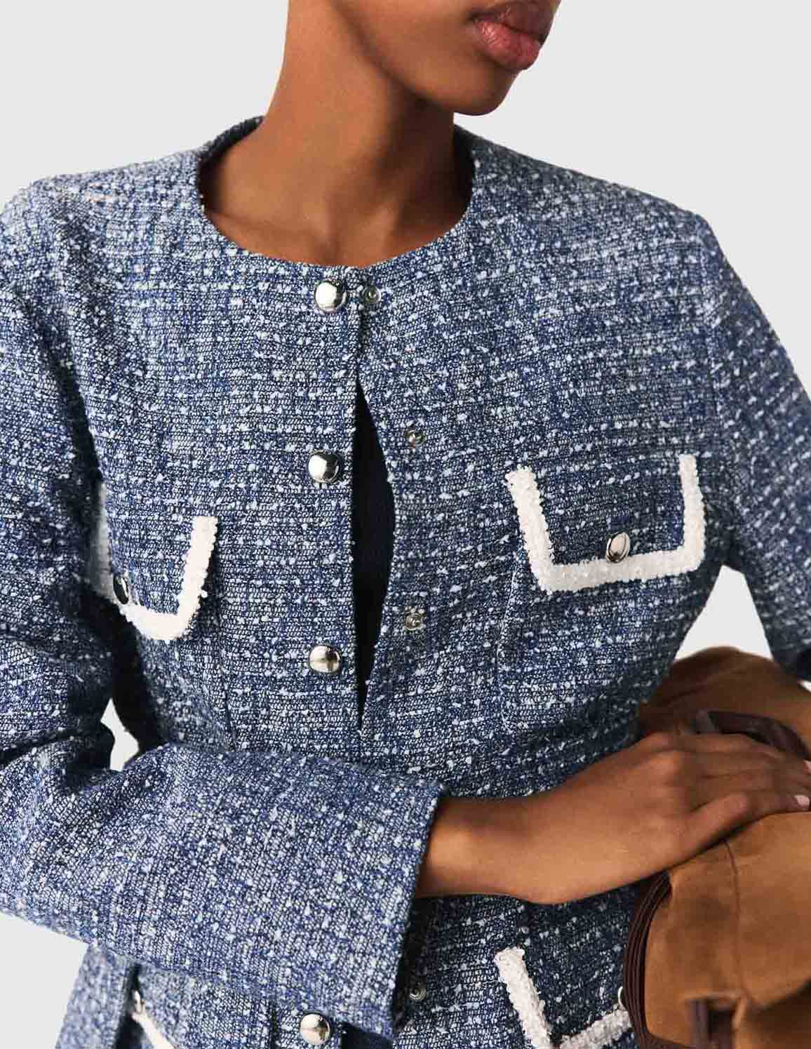 • Blue and white tweed jacket