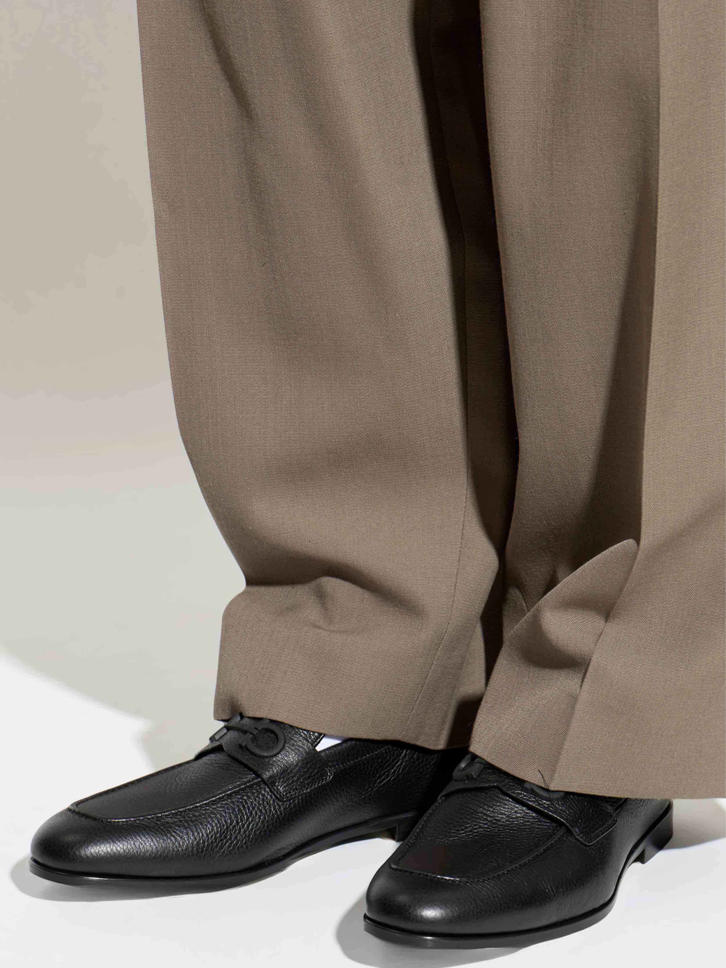 • A new, sleek take on the Gancini loafer with an ultra-lightweight and flexible construction, enhanced by a hammered deerskin upper. The slightly elongated toe cap features a rubberized, three-dimensional Gancini buckle on the instep.