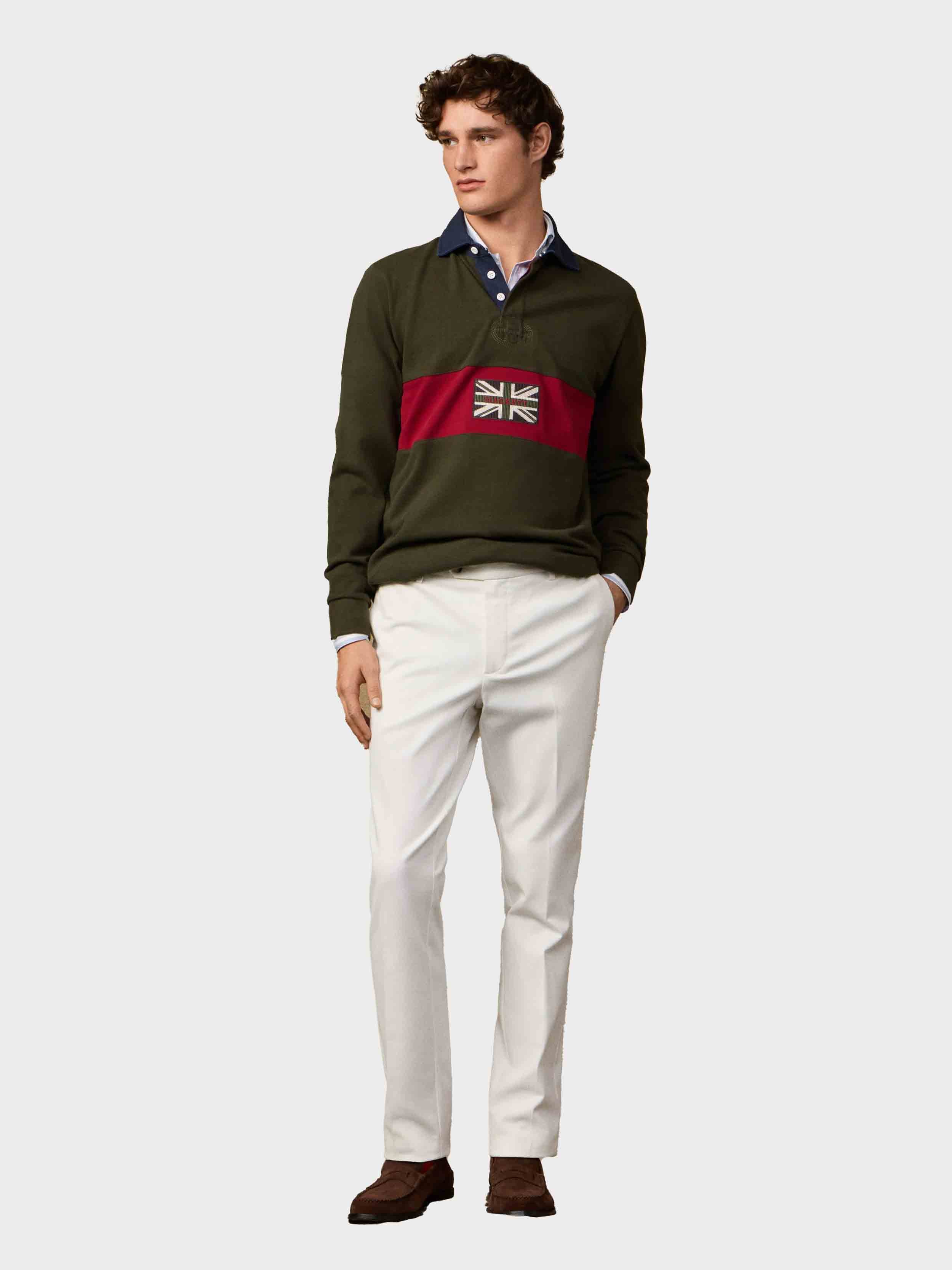 • Long sleeve rugby shirt with contrast trims throughout