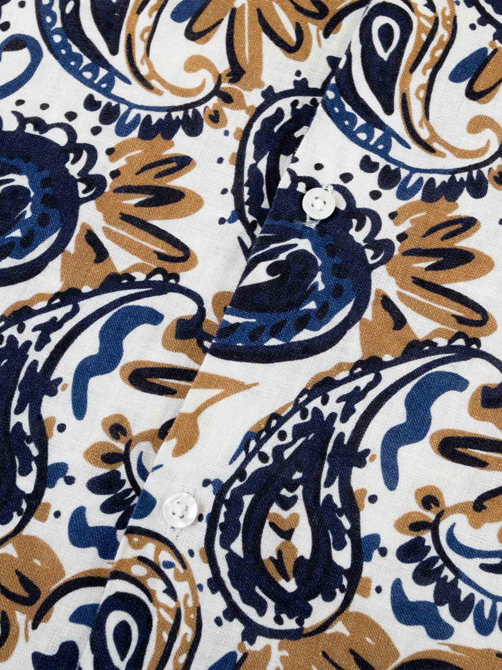 • Mars is made with a contemporary twist on the classic bowling shirt. This trans-seasonal button-down shirt is made of lightweight, soft-to-the-touch linen and features a point collar and a traditional straight comfort fit.