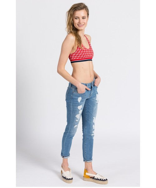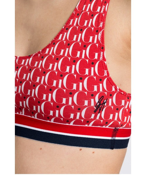 Tommy hilfiger - gigi hadid crop top , xs , gigi hadid all over prt apple red , style ww0ww18210