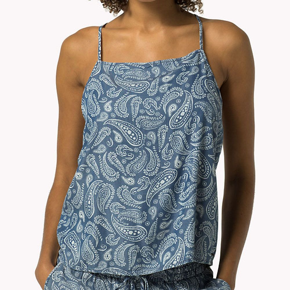 Tommy hilfiger jeans - thdw print top s/l 52b , l , chambray paisley / ponly print , style dw0dw02142