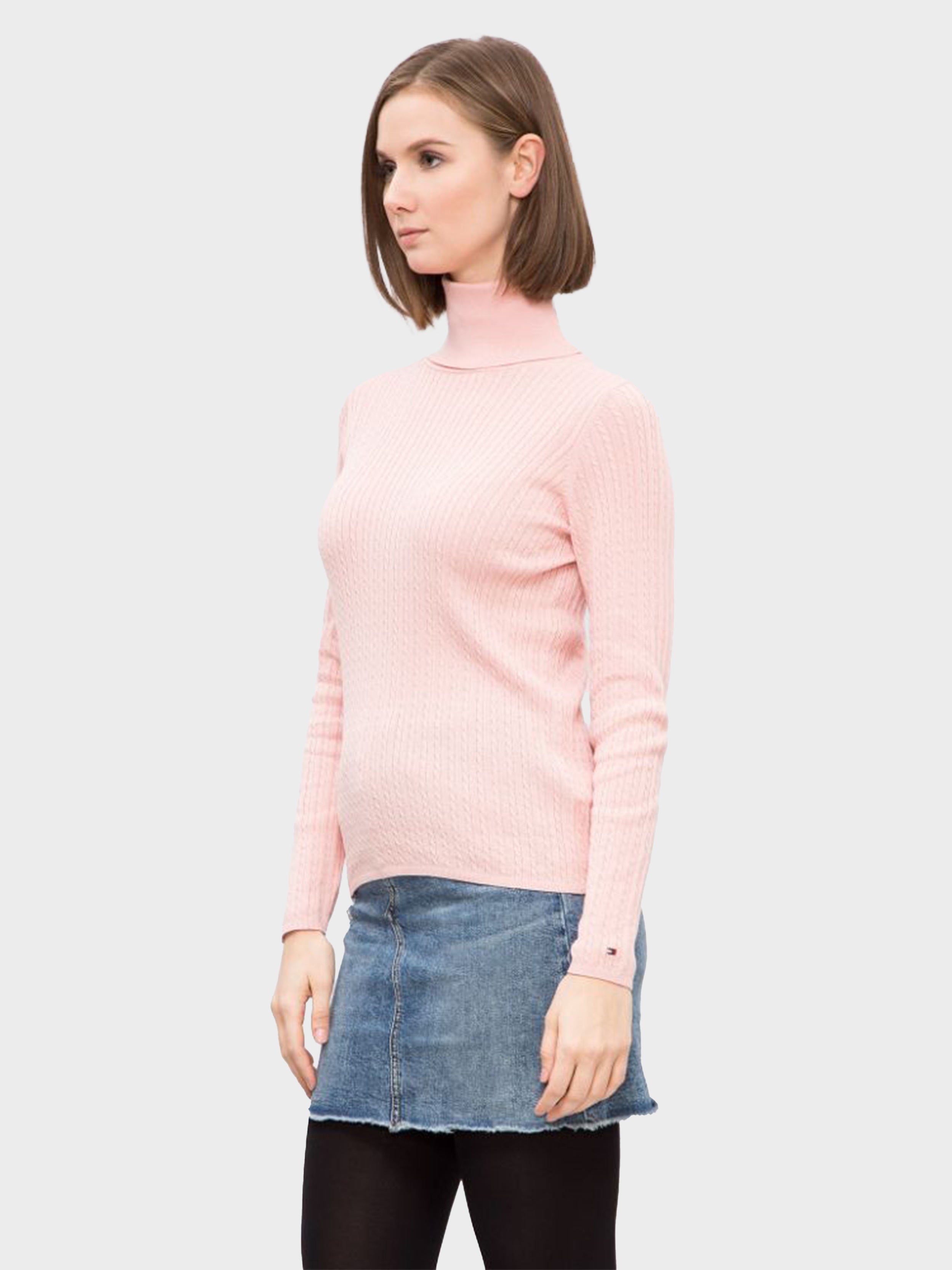 Tommy Hilfiger - ERCA MINI CABLE ROLL-NK SWTR , M , SILVER PINK , Style WW0WW19697